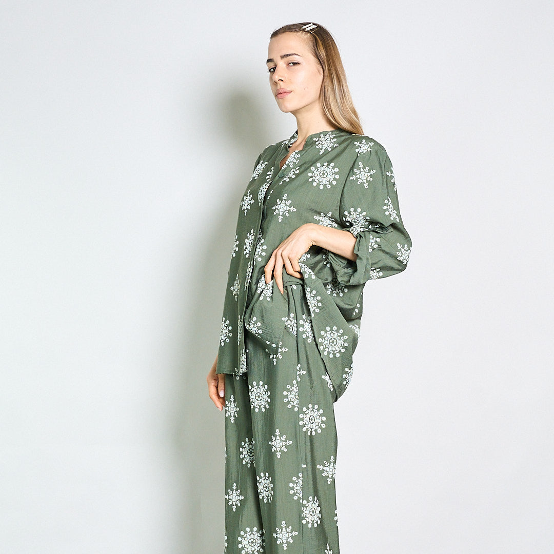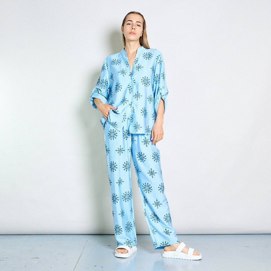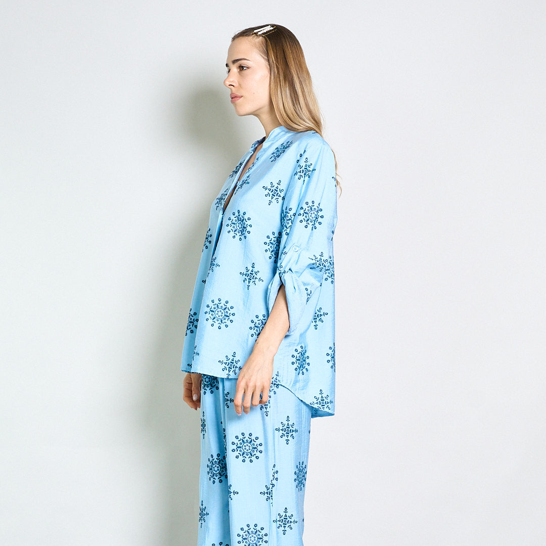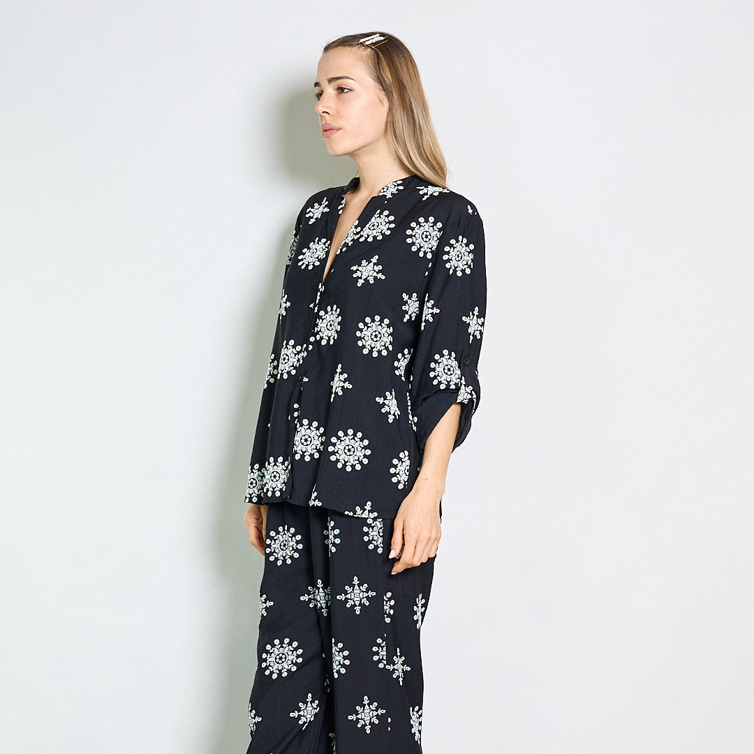Camicetta ricamata rilassata con collare mandarino all'ingrosso