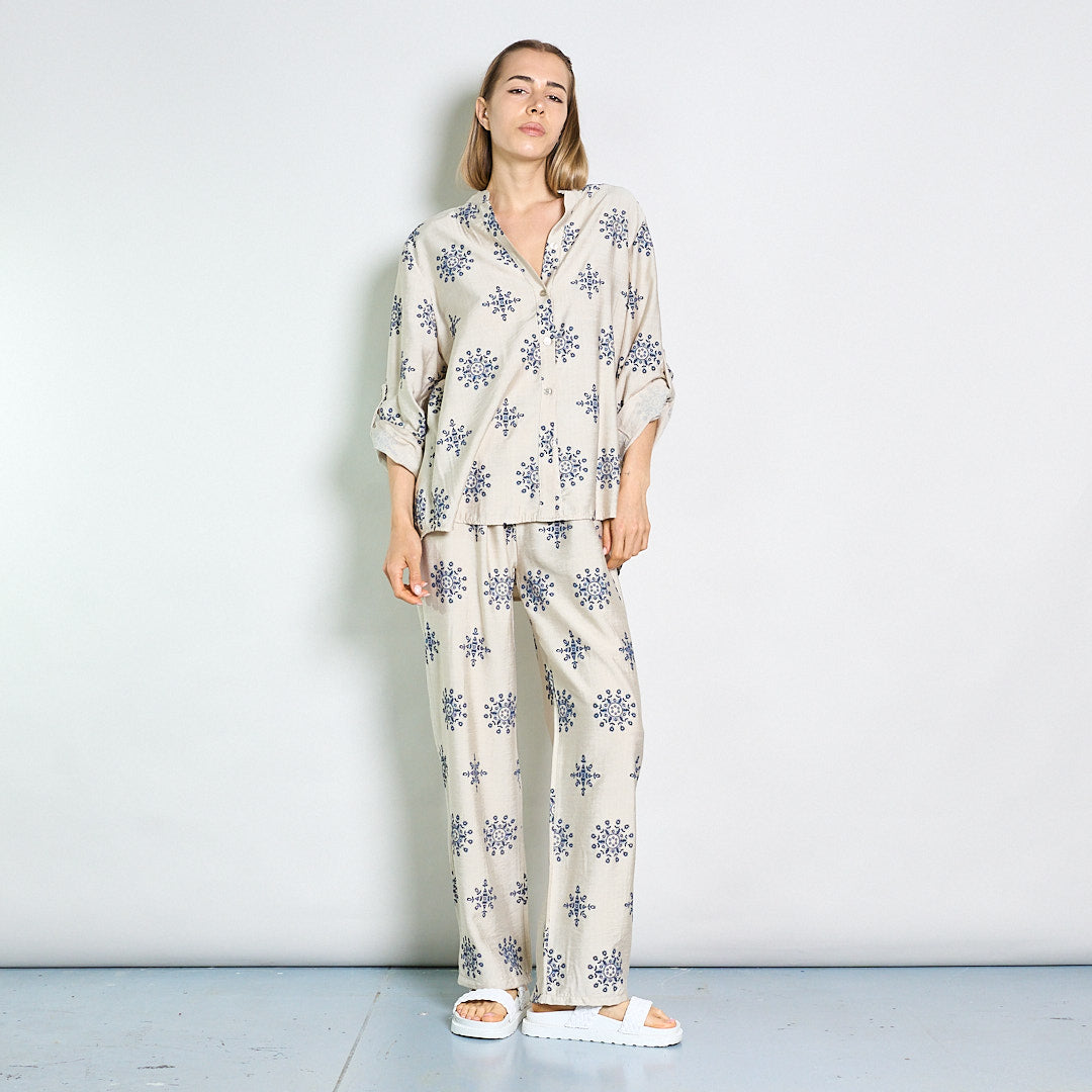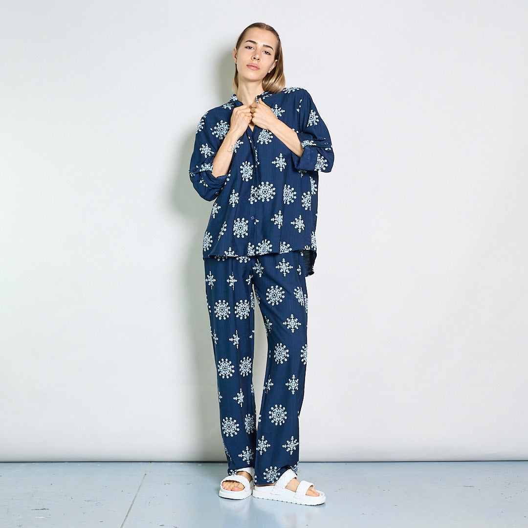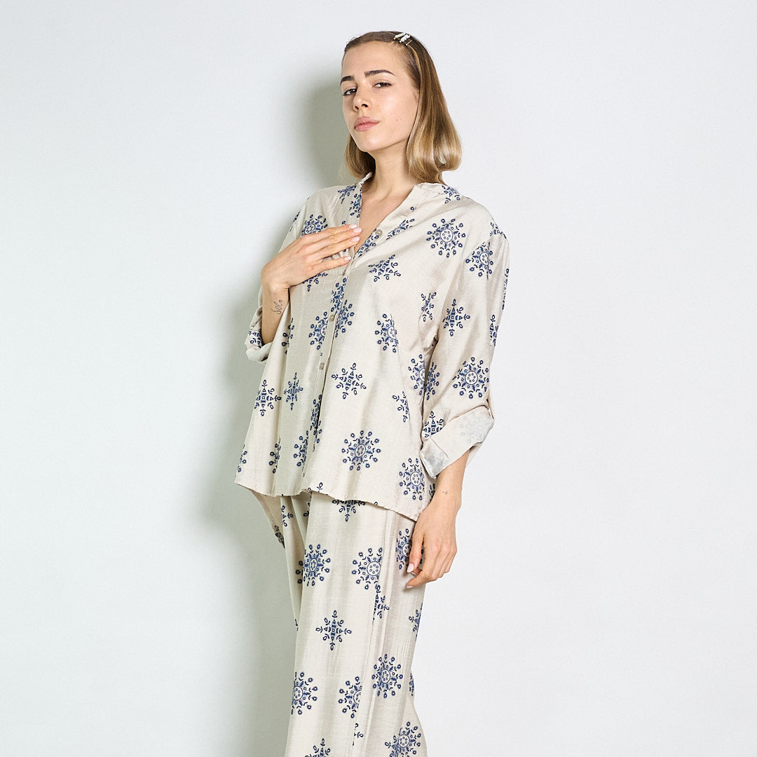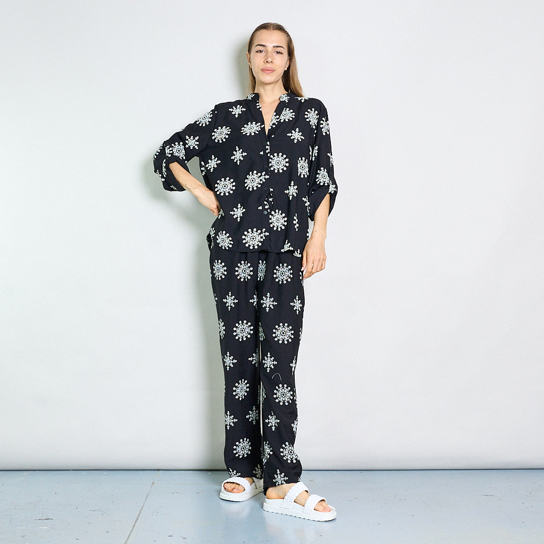 Camicetta ricamata rilassata con collare mandarino all'ingrosso