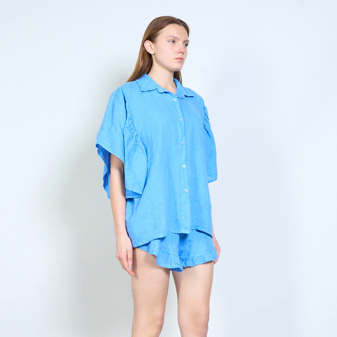 Camicia a maniche corte in morbido lino con maniche arricciate all'ingrosso