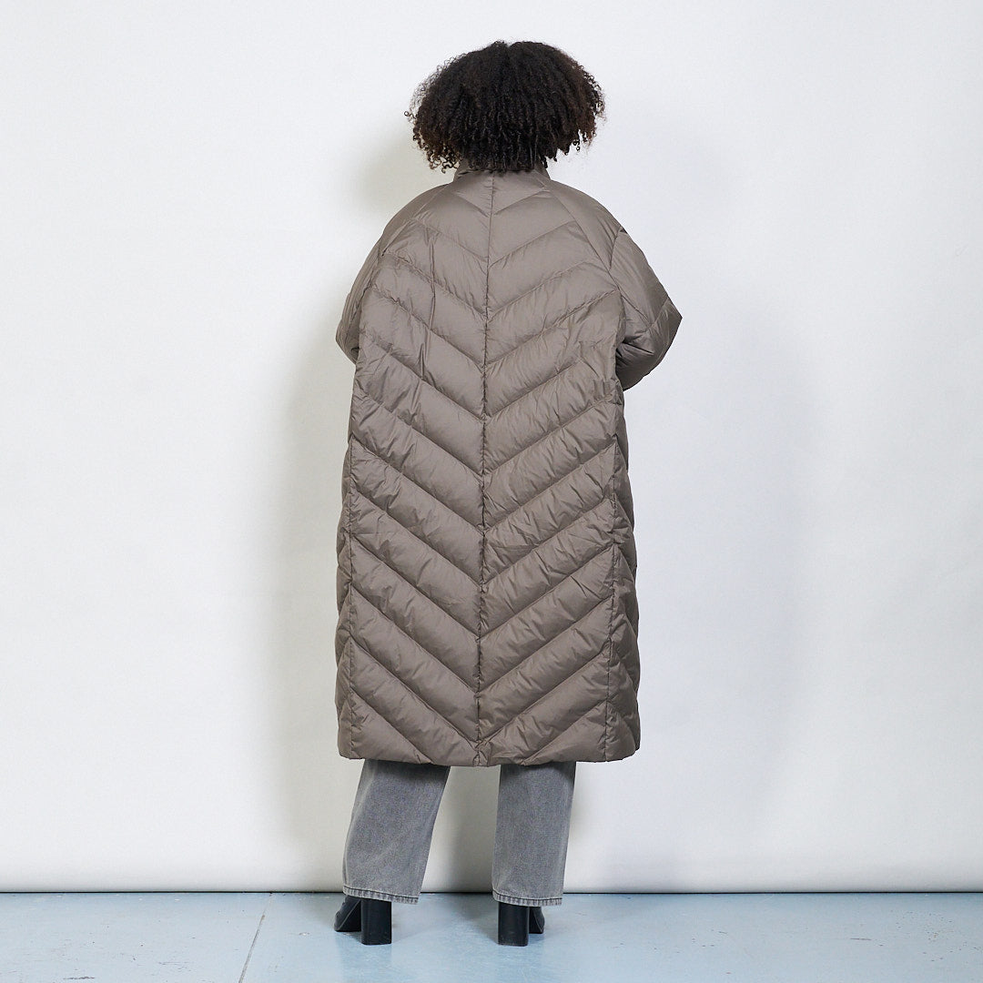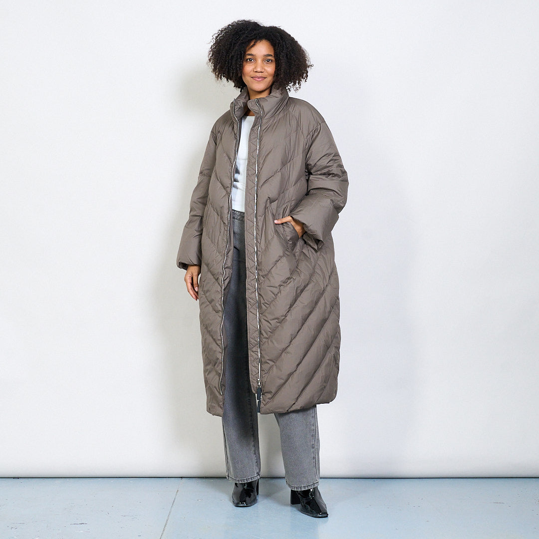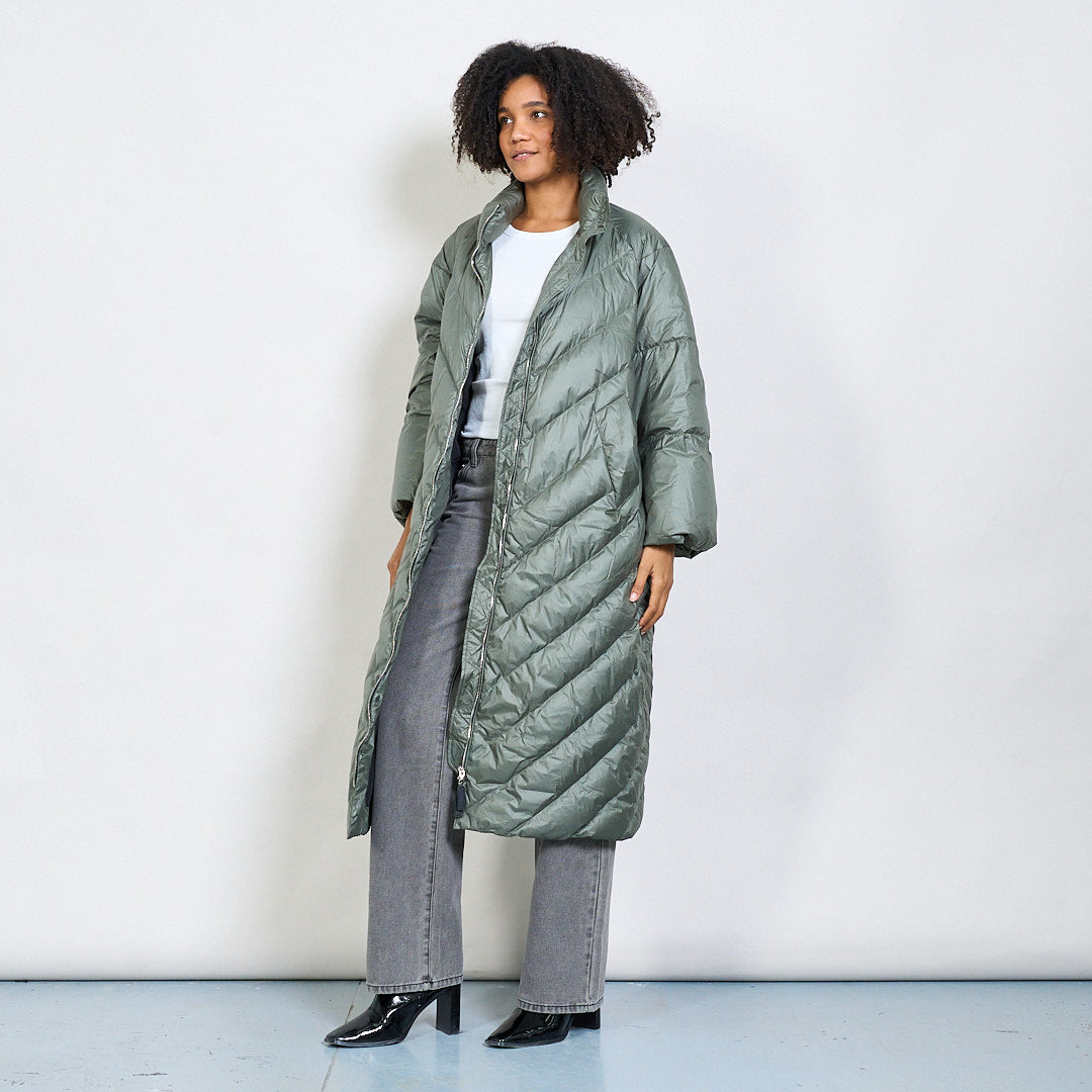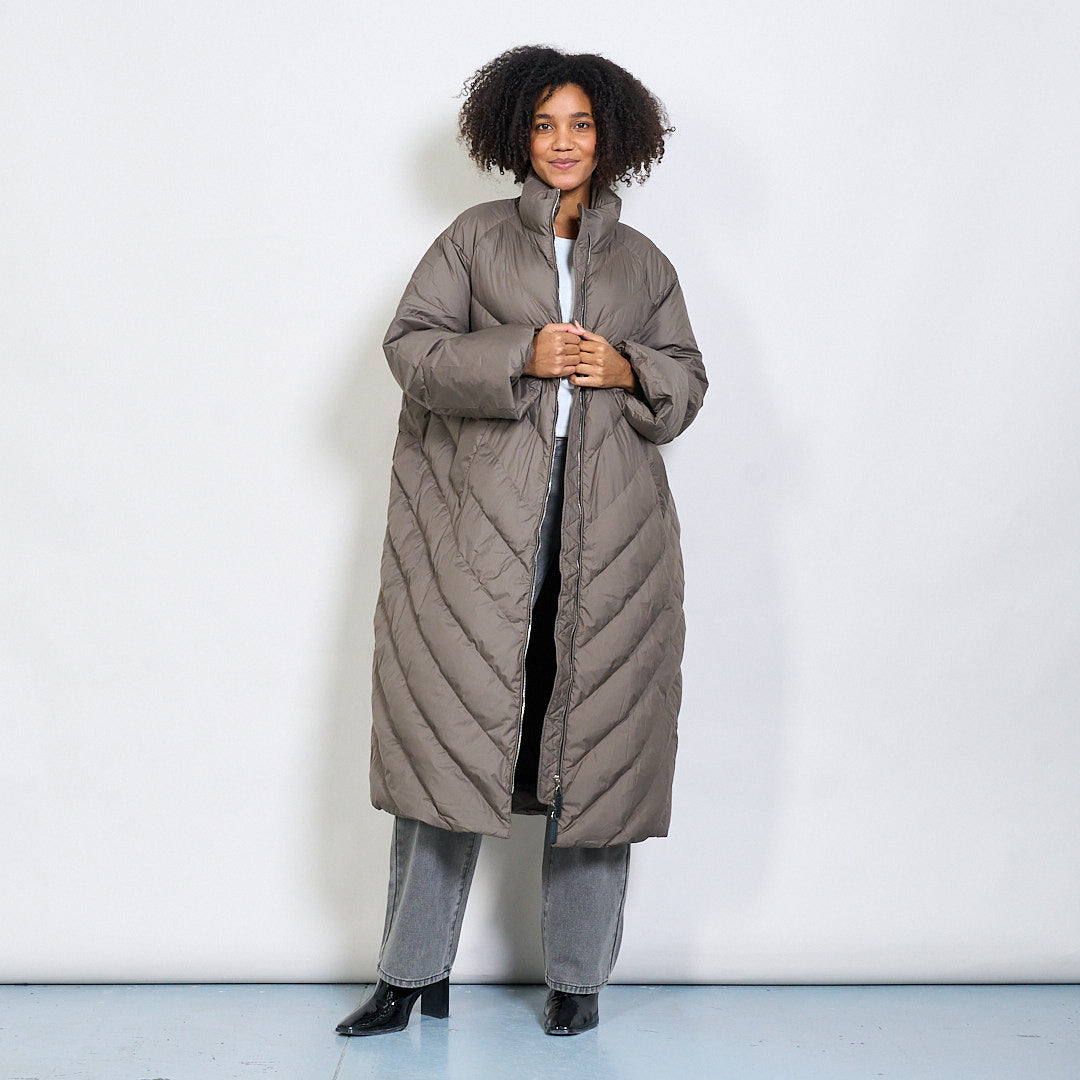 Cappotto imbottito lungo trapuntato Chevron con chiusura con cerniera al collo alto all'ingrosso