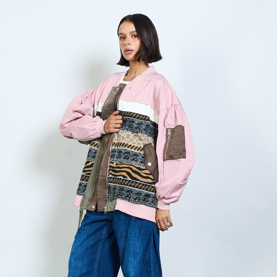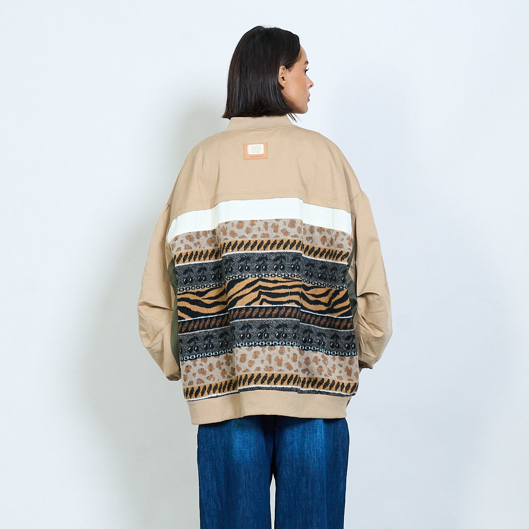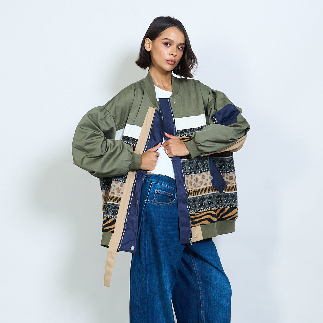 Giacca bomber patchwork con pannelli di stampa animale all'ingrosso