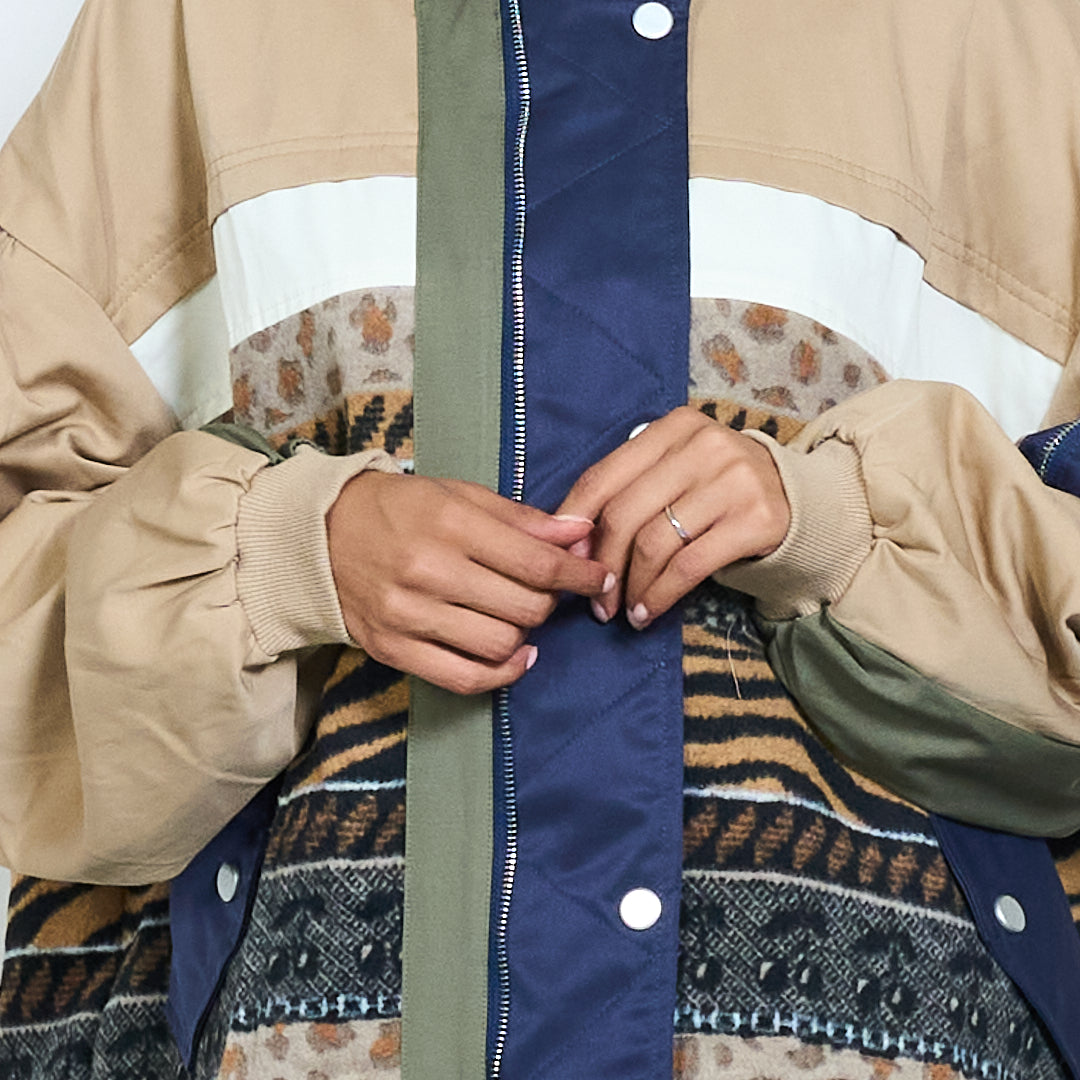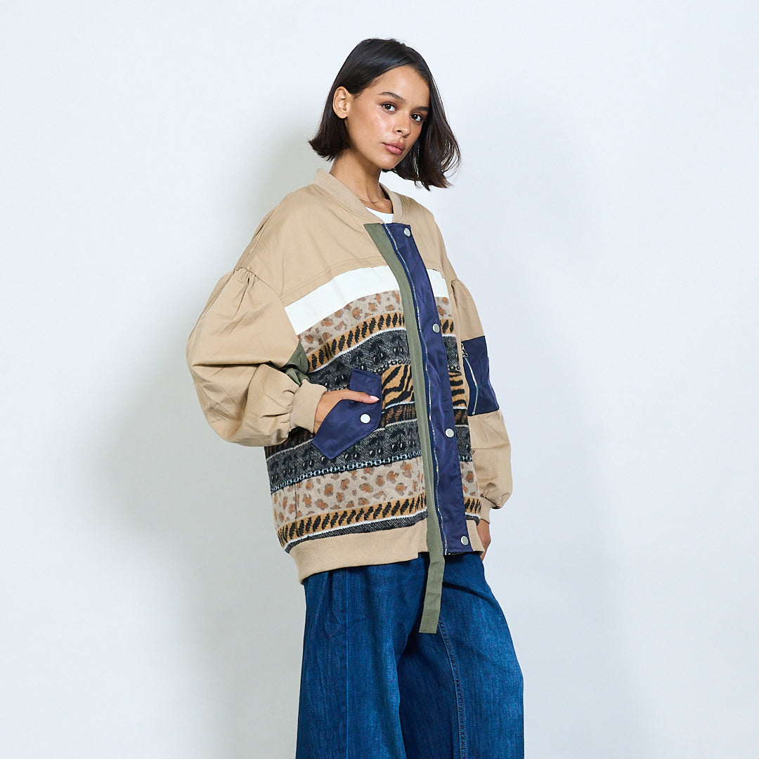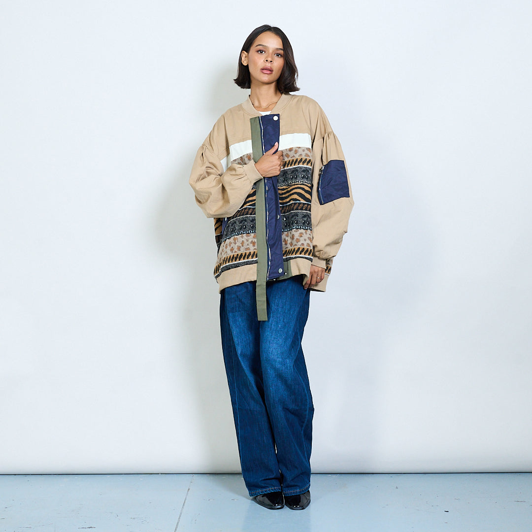 Giacca bomber patchwork con pannelli di stampa animale all'ingrosso