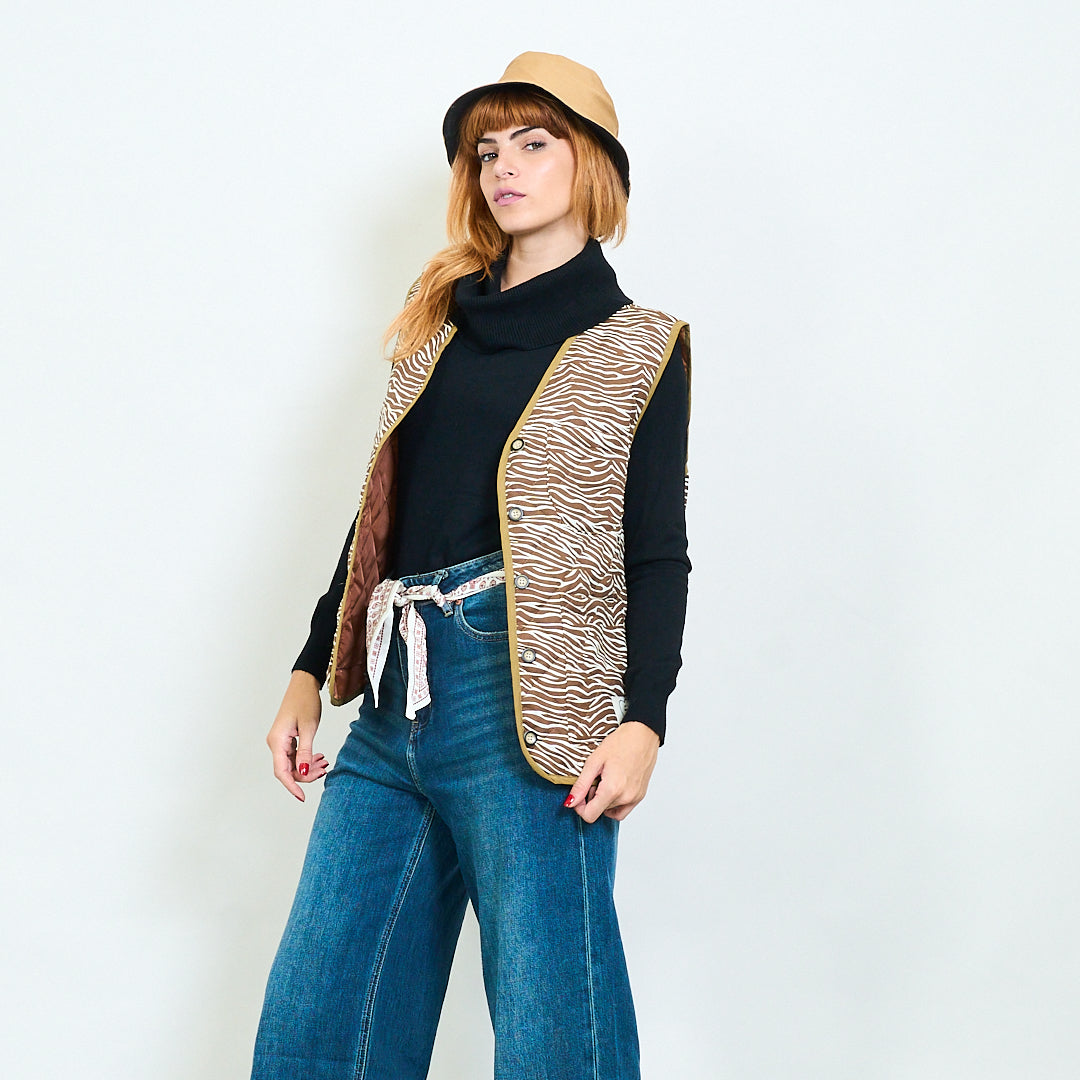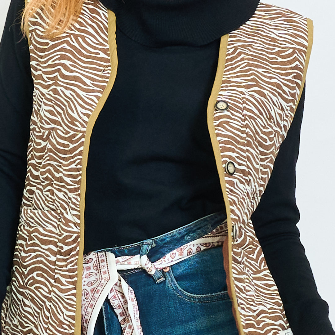 Giubbotto senza maniche con stampa zebra trapuntata all'ingrosso