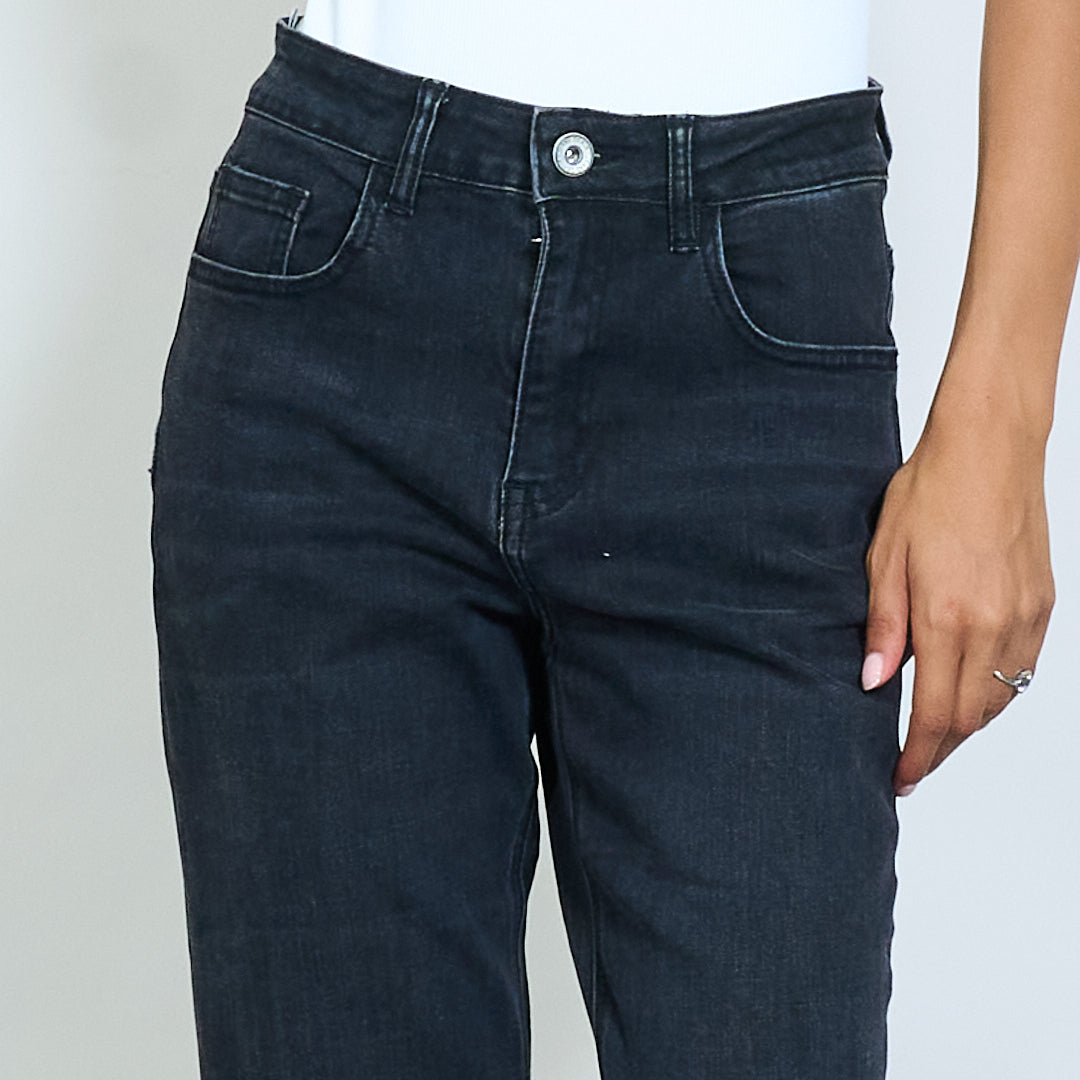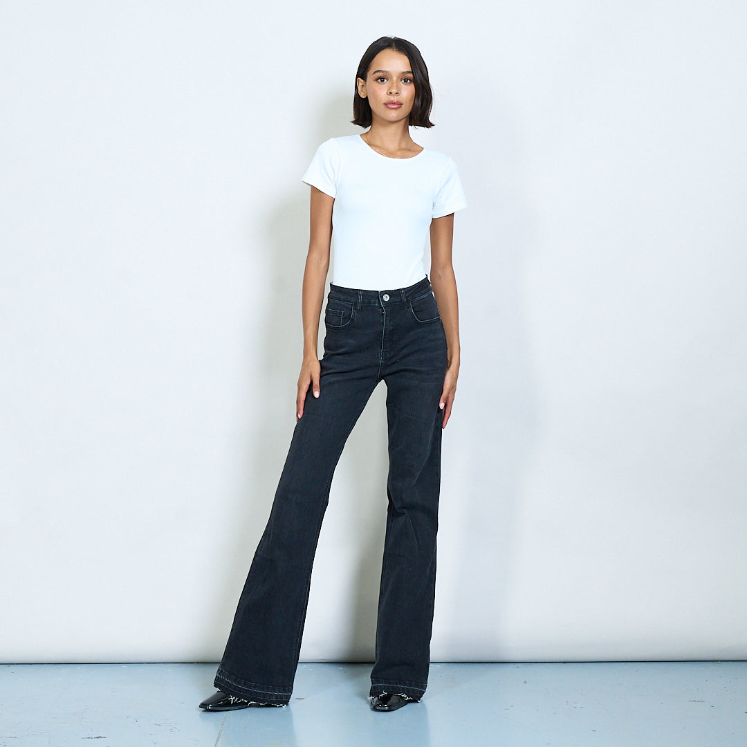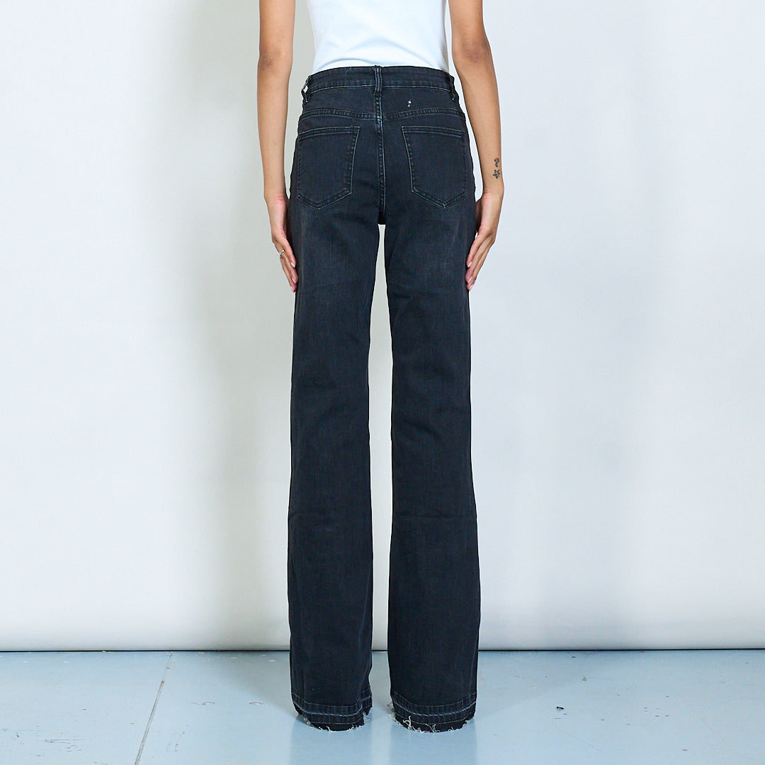 Jeans in denim nero lavati la gamba svasata all'ingrosso