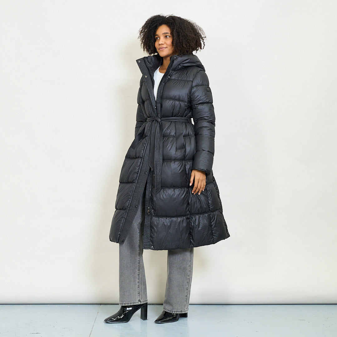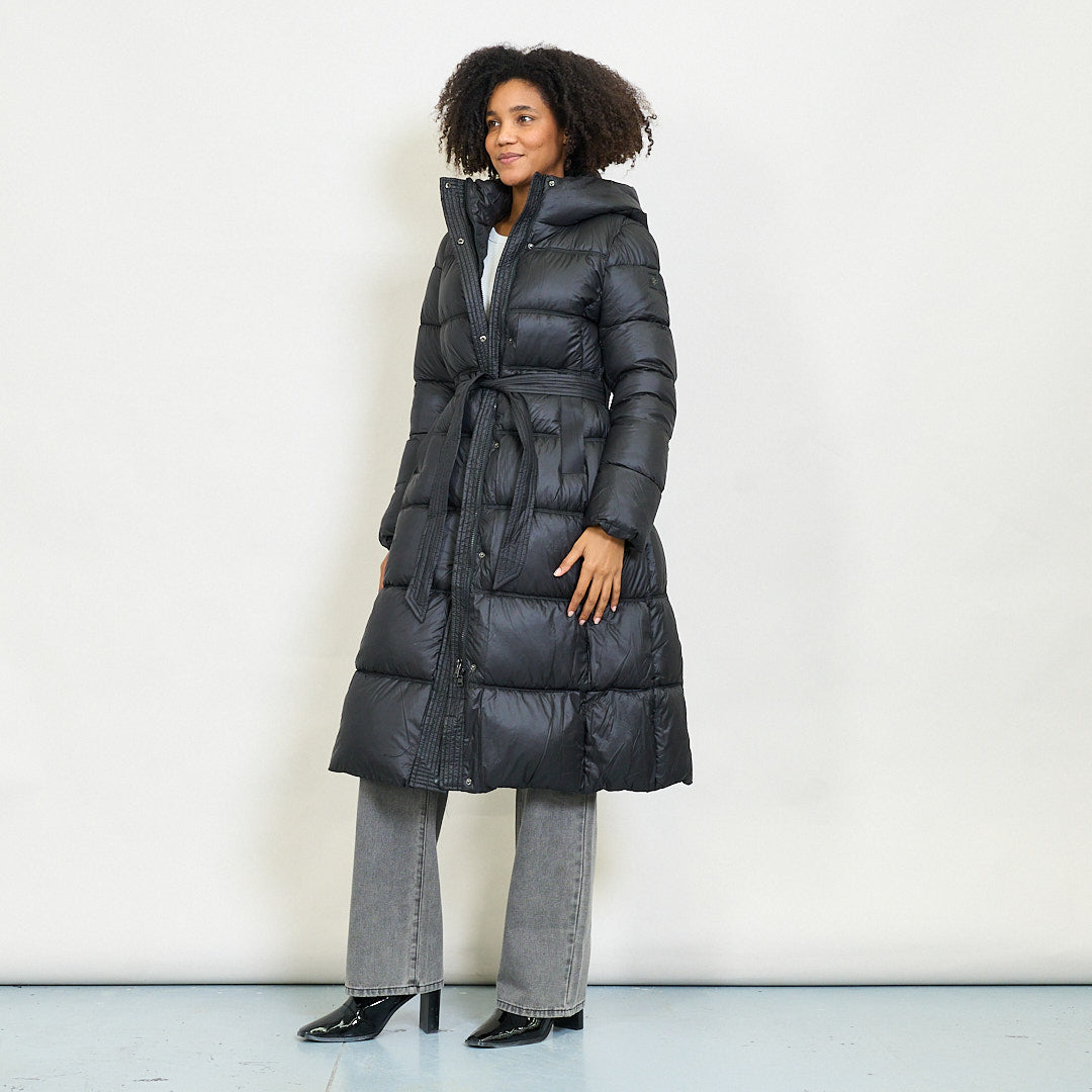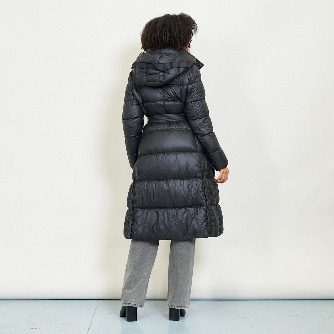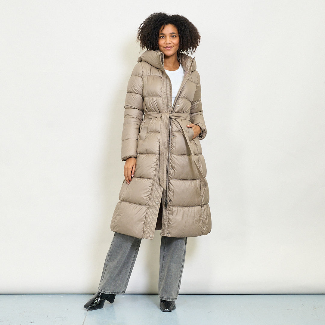 Cappotto imbottito trapuntato con cintura lunga con cappuccio all'ingrosso