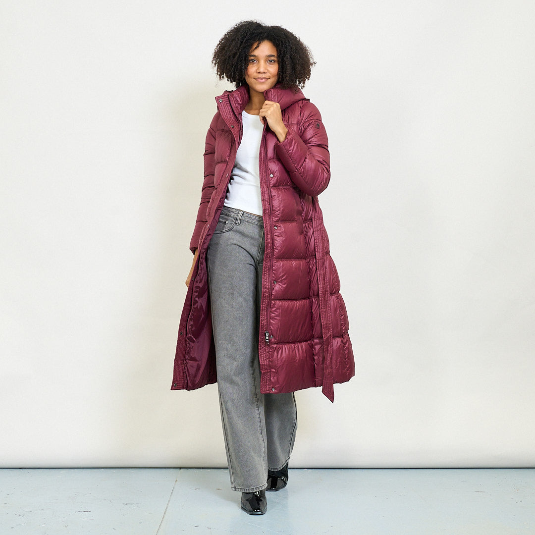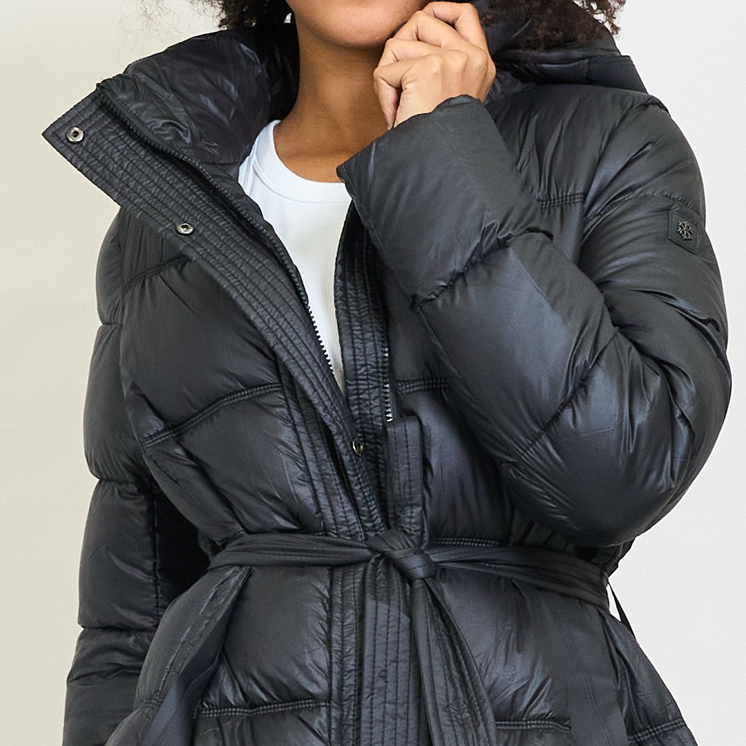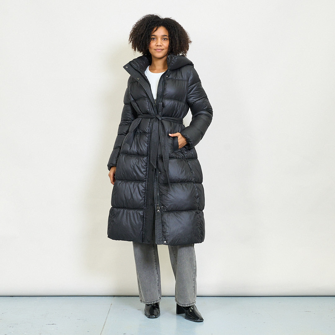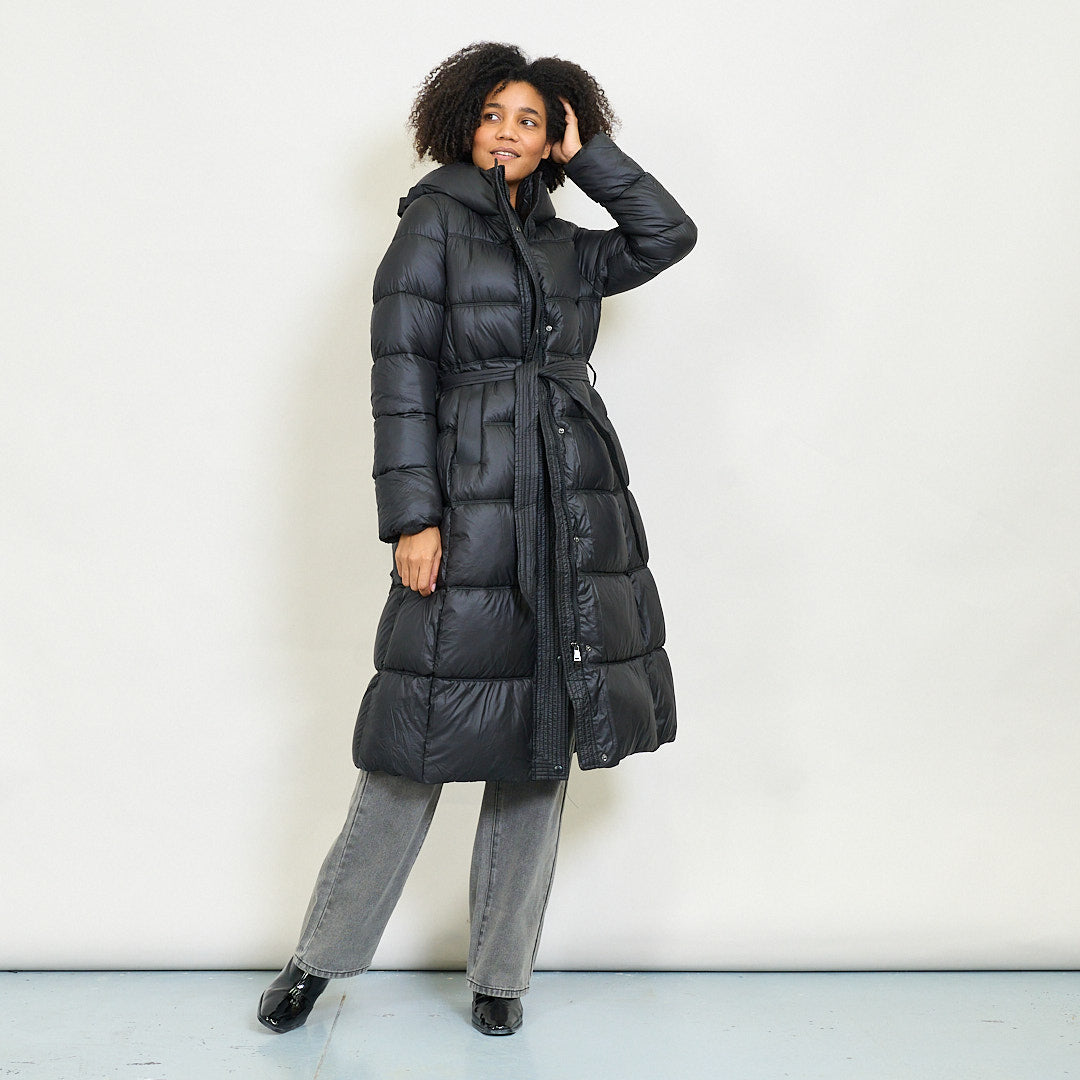 Cappotto imbottito trapuntato con cintura lunga con cappuccio all'ingrosso