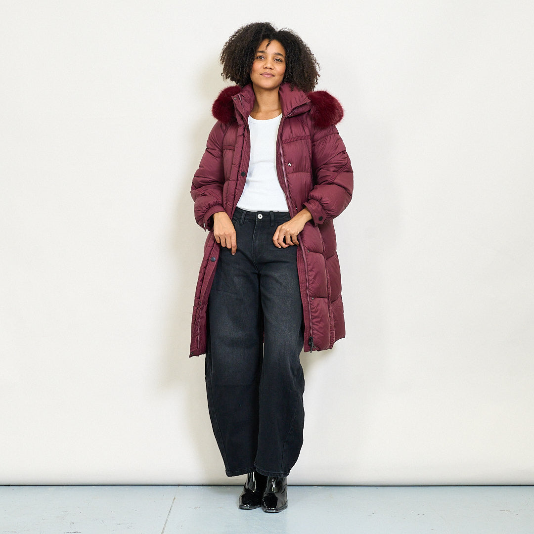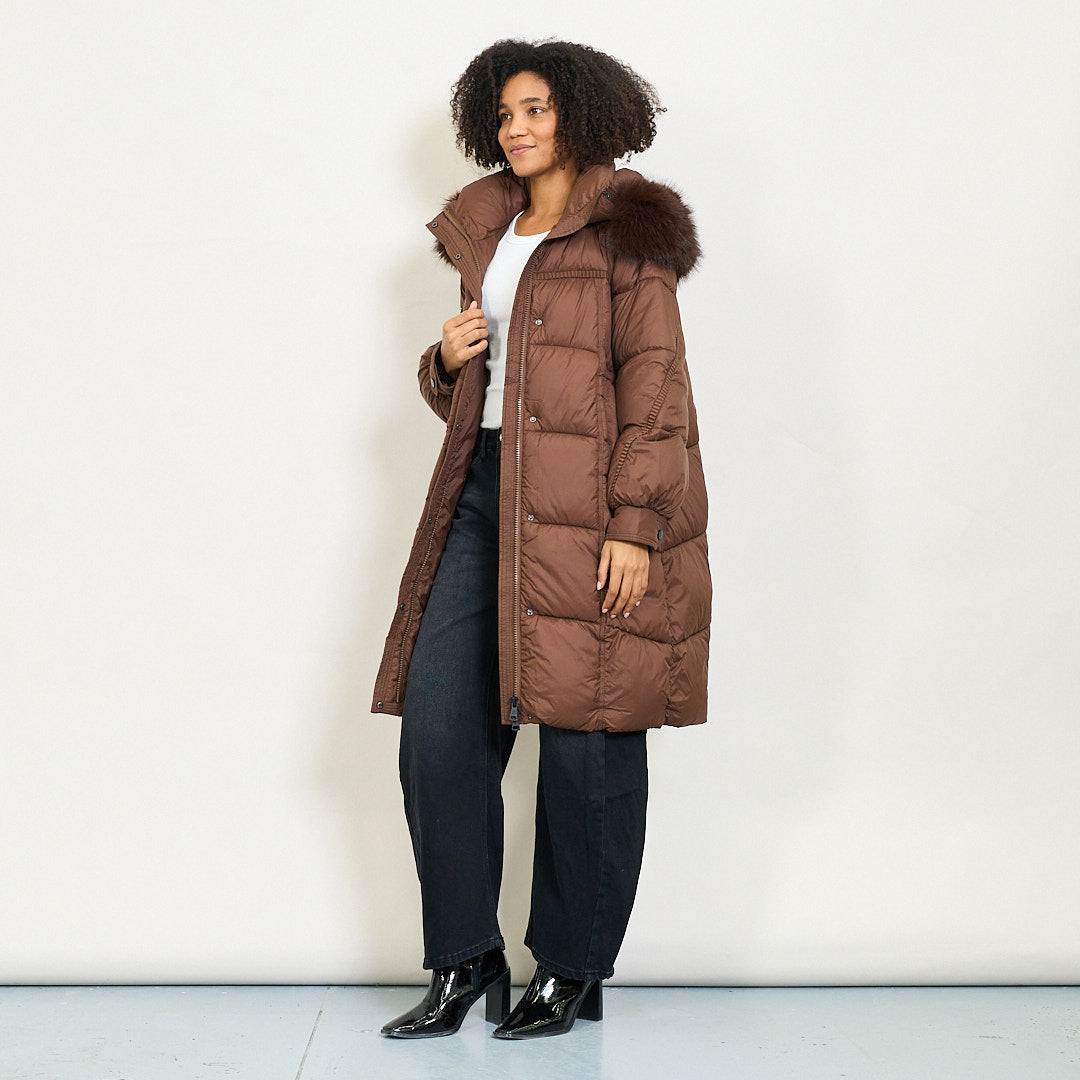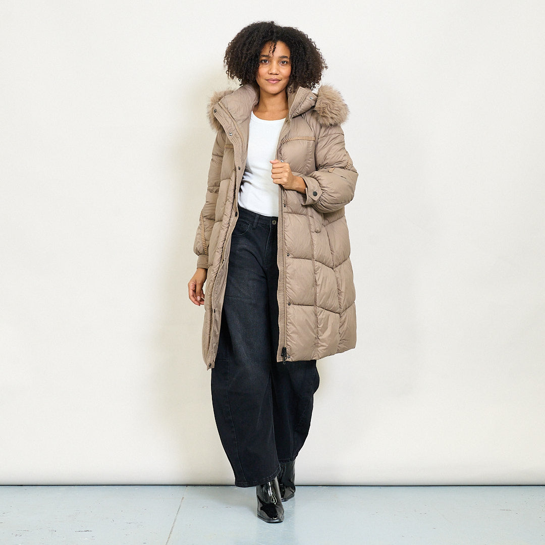 Cappotto imbottito lungo con cappuccio in finta pelliccia e chiusura a bottone all'ingrosso