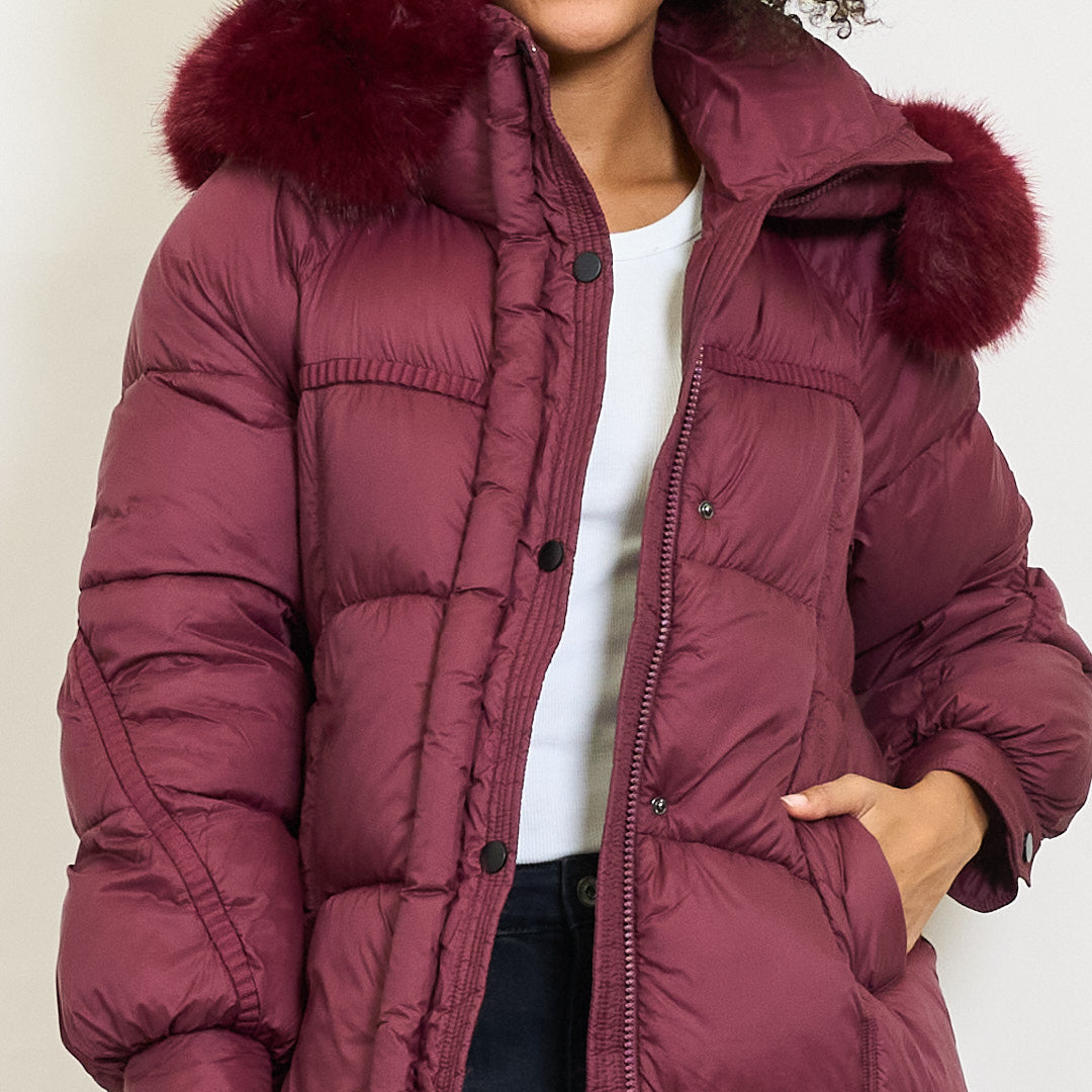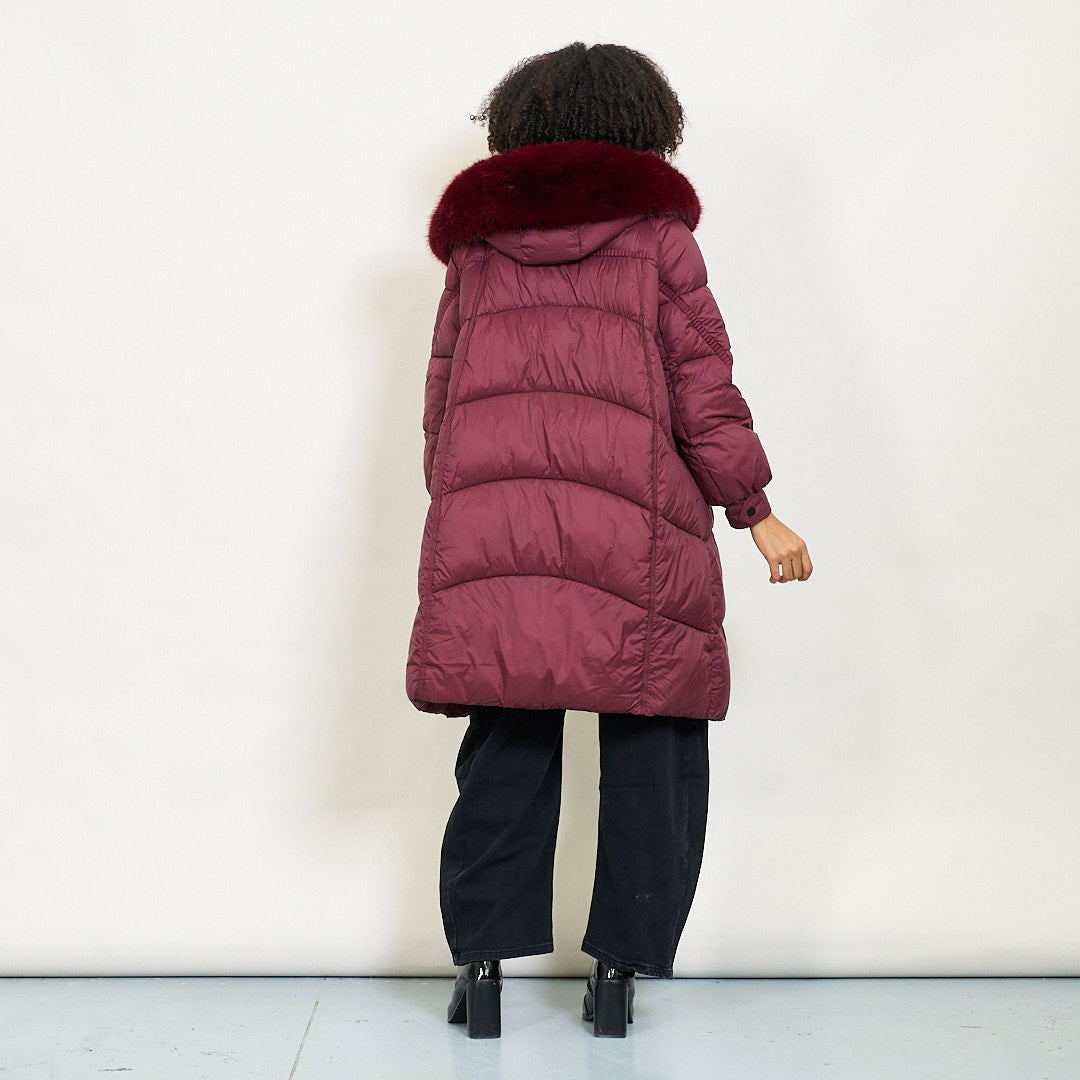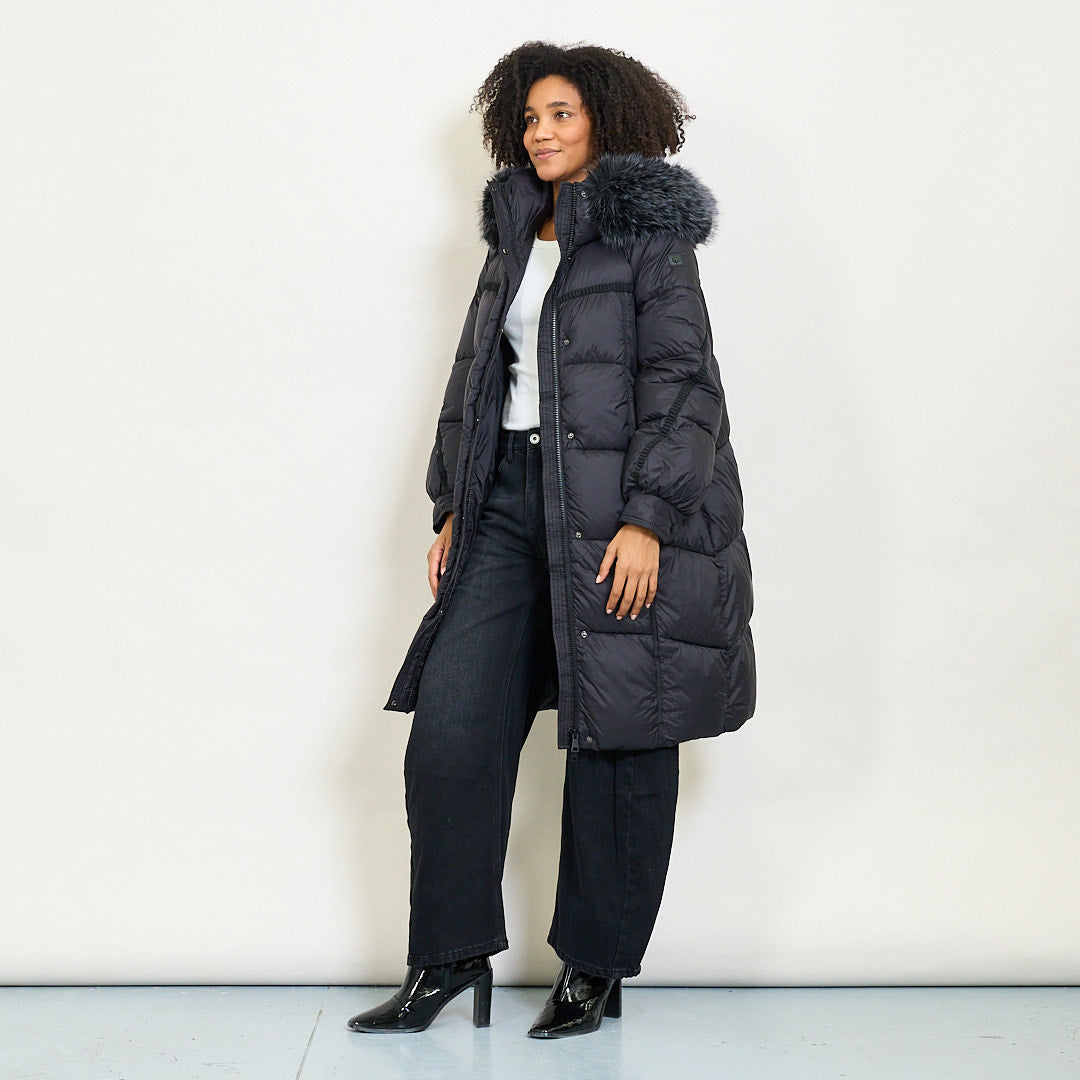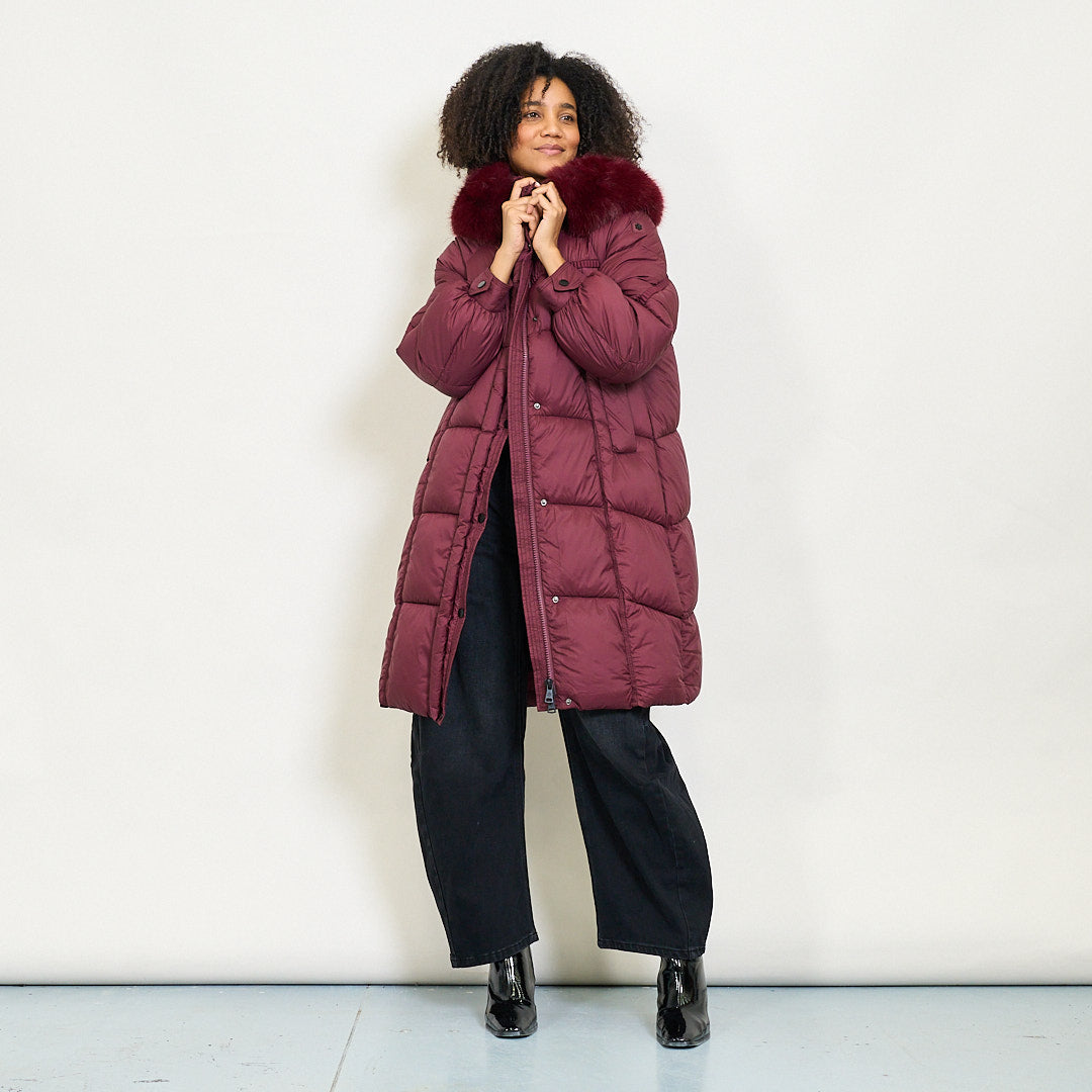 Cappotto imbottito lungo con cappuccio in finta pelliccia e chiusura a bottone all'ingrosso