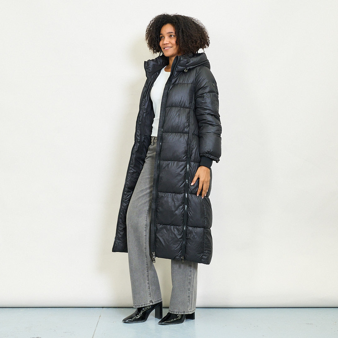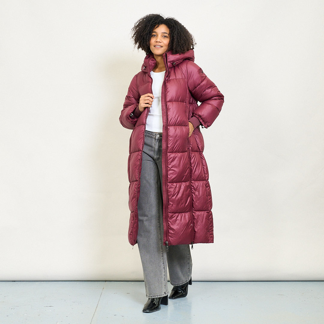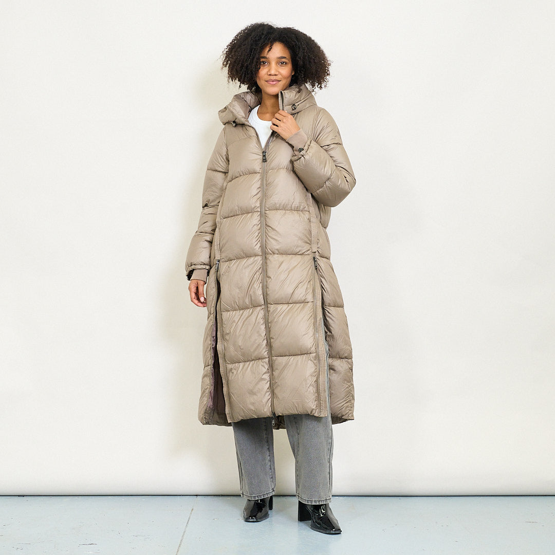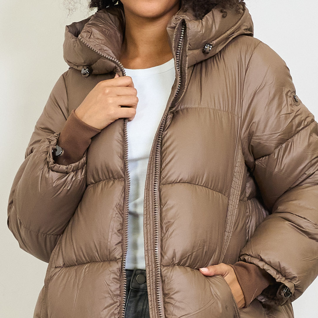 Giacca imbottita lunga con corse regolabili e felpa con cappuccio all'ingrosso