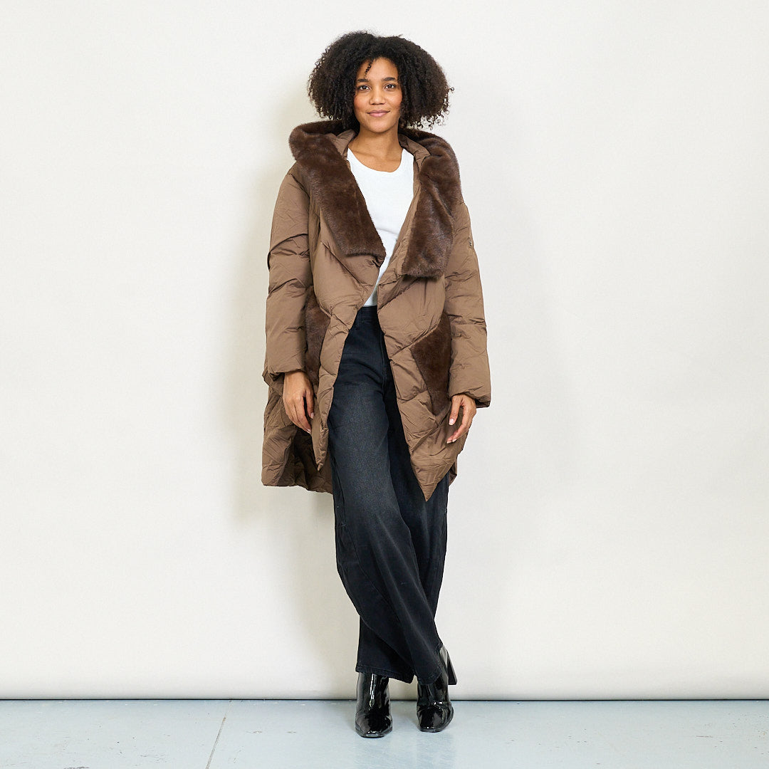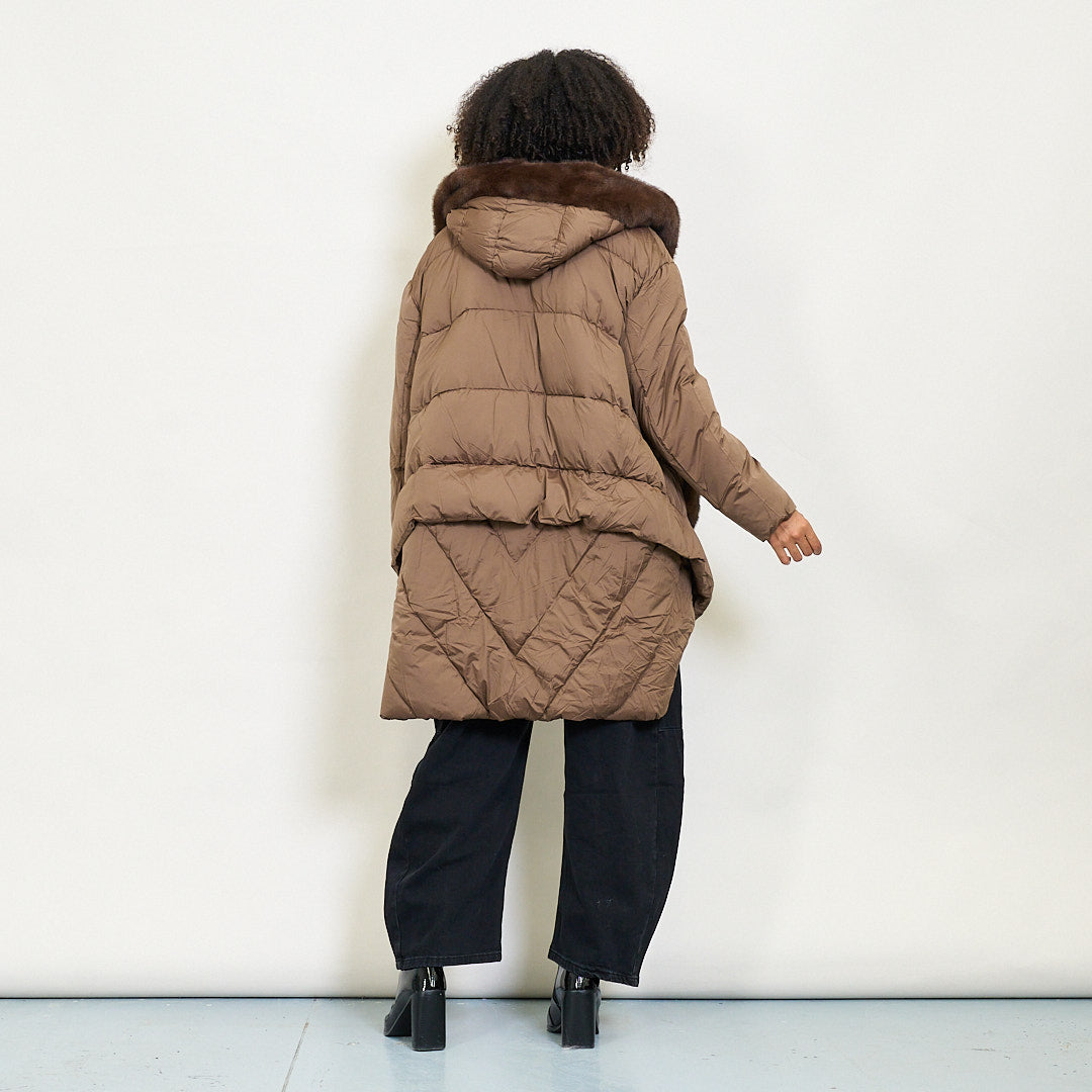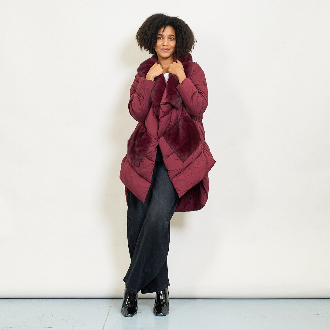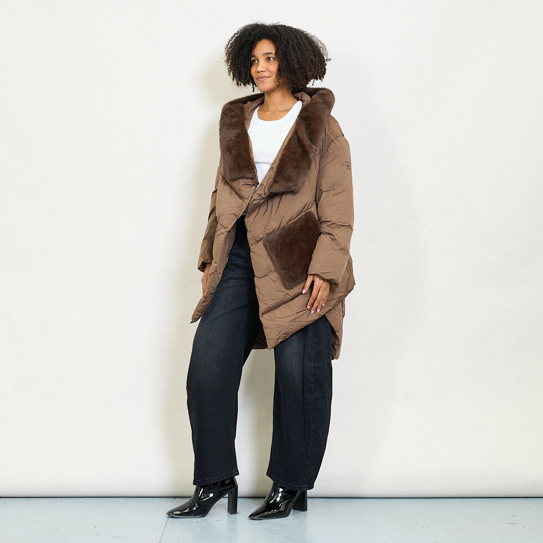 Giacca imbottita di grandi dimensioni con rivestimento in pelliccia e pannelli tascabili all'ingrosso