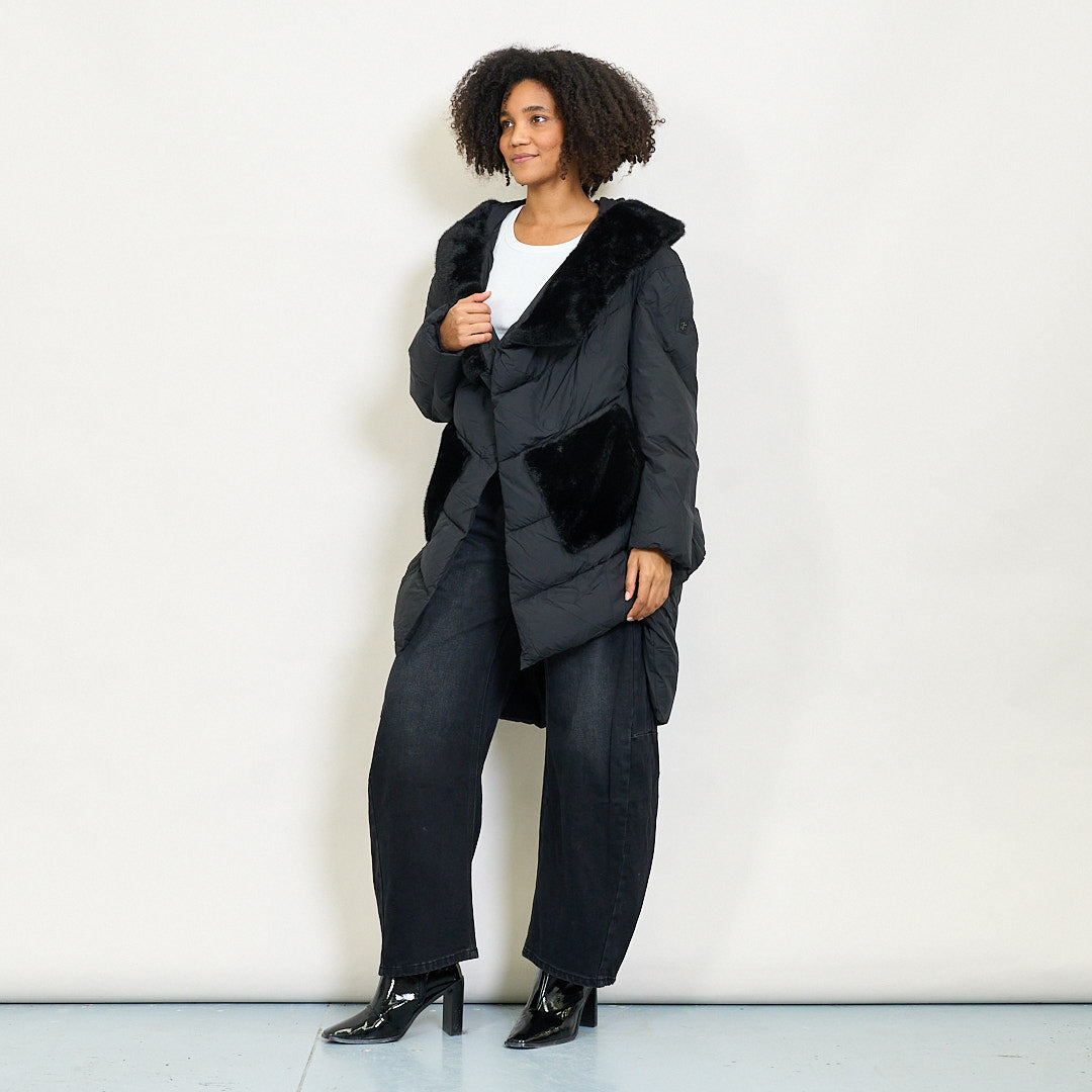 - Rivestimento in pelliccia in finto lungo il colletto e apertura