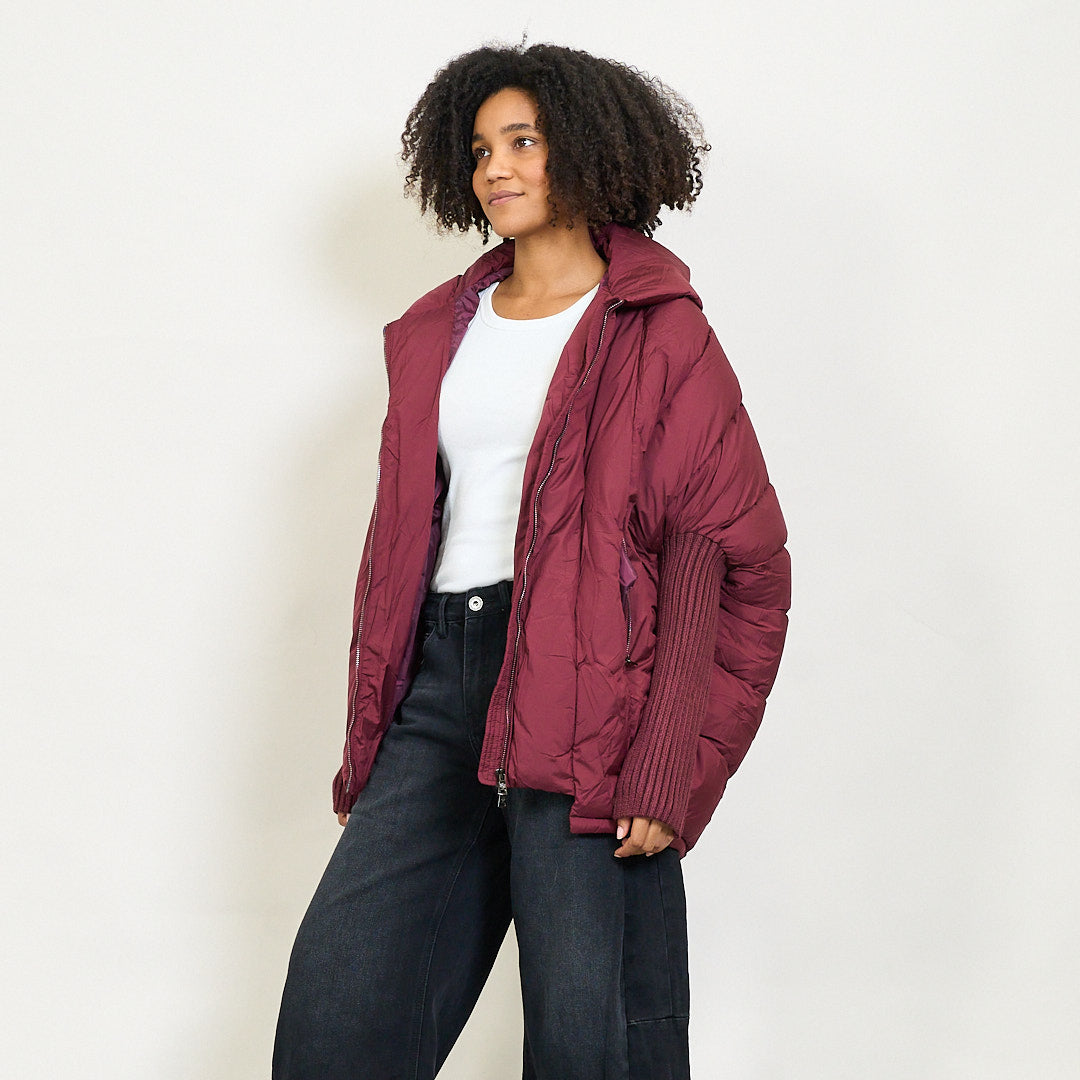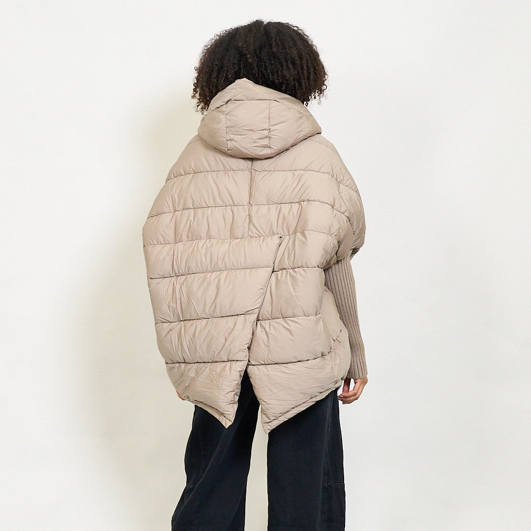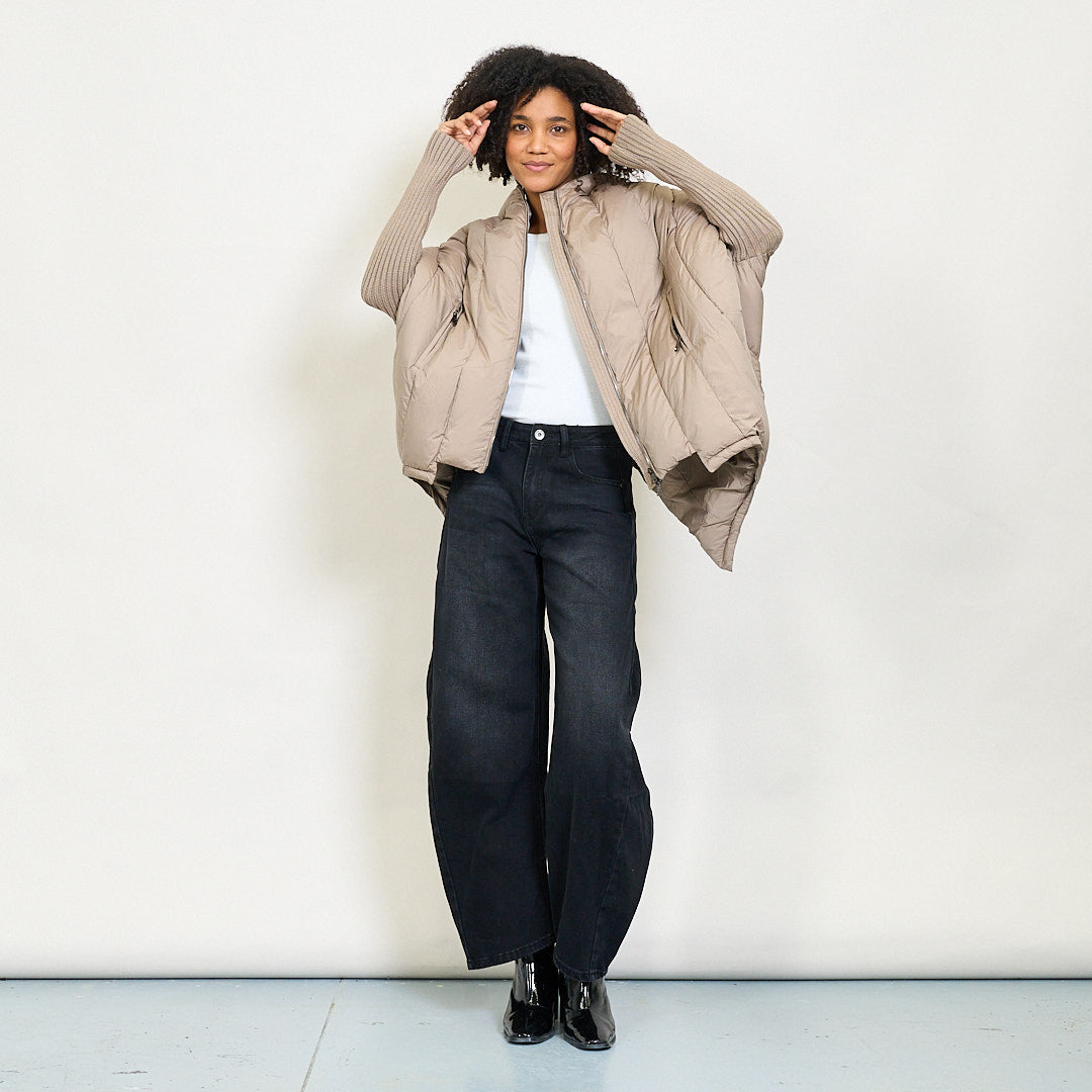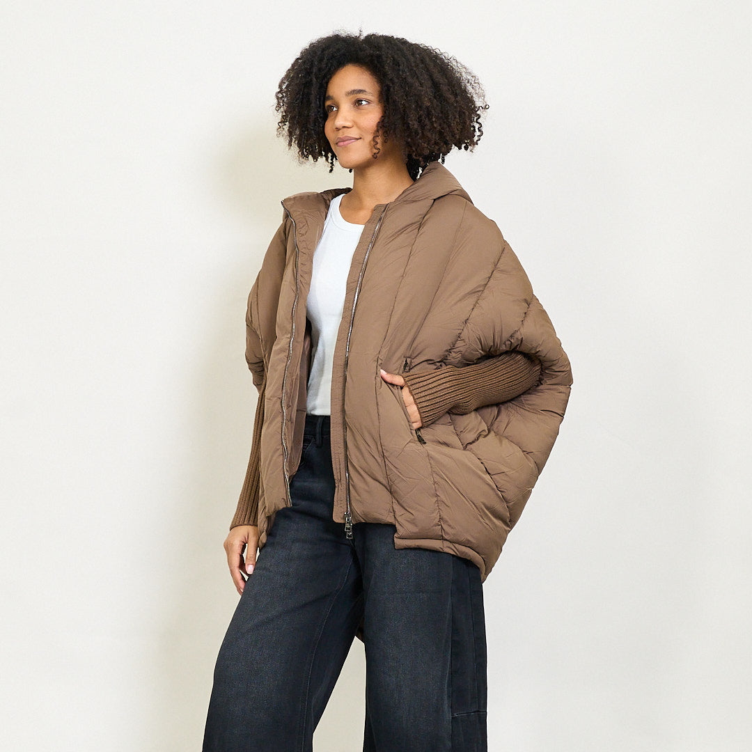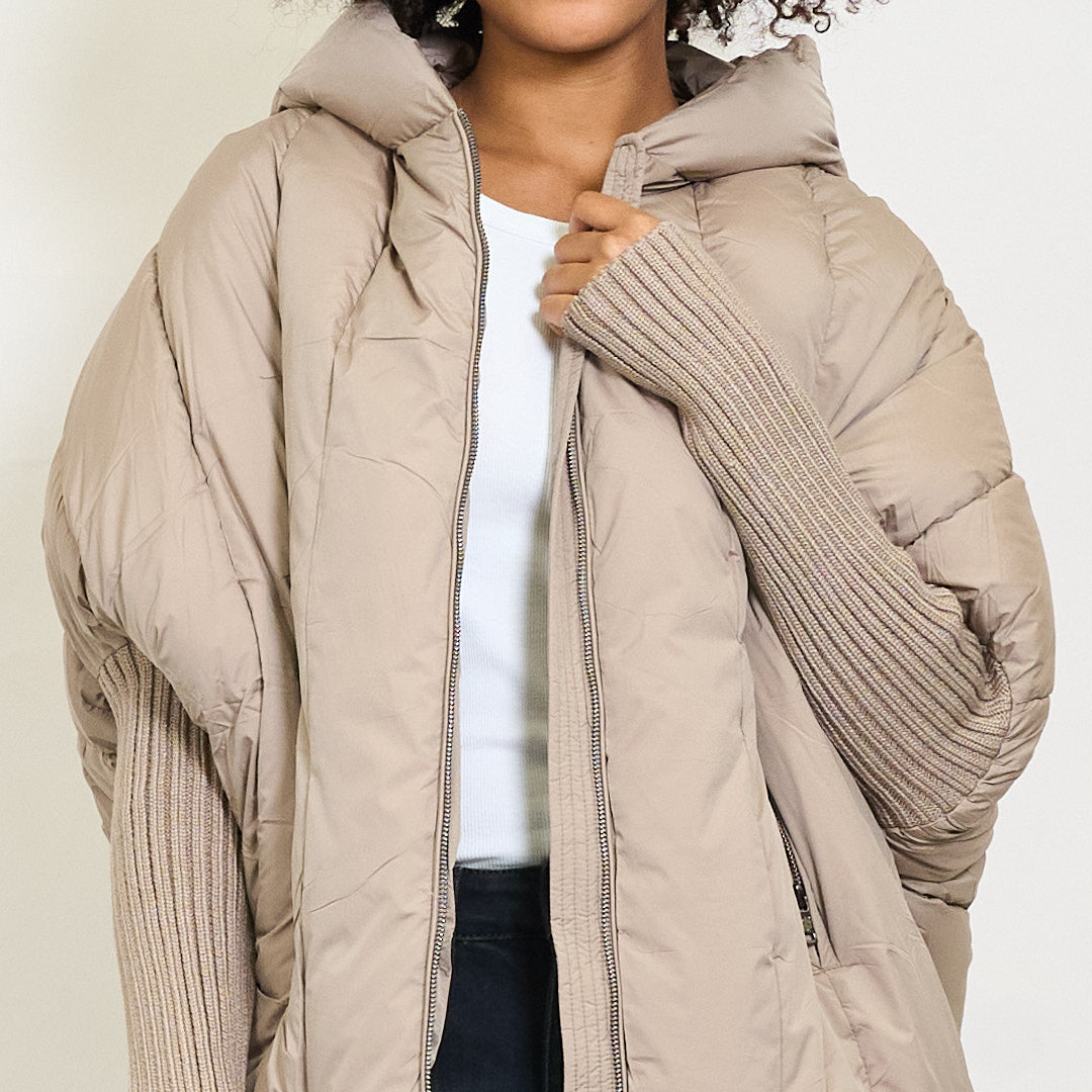 Giacca invernale imbottita con cappuccio di grandi dimensioni e maniche a maglia a coste all'ingrosso