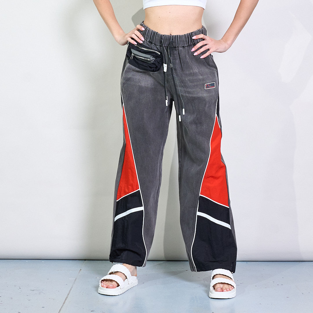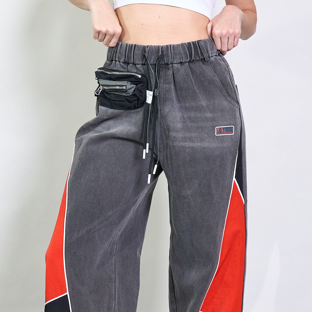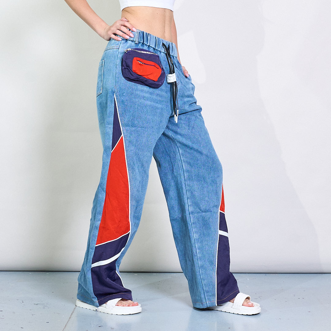 Pantaloni da jogger in denim a gamba a gamba a gambo