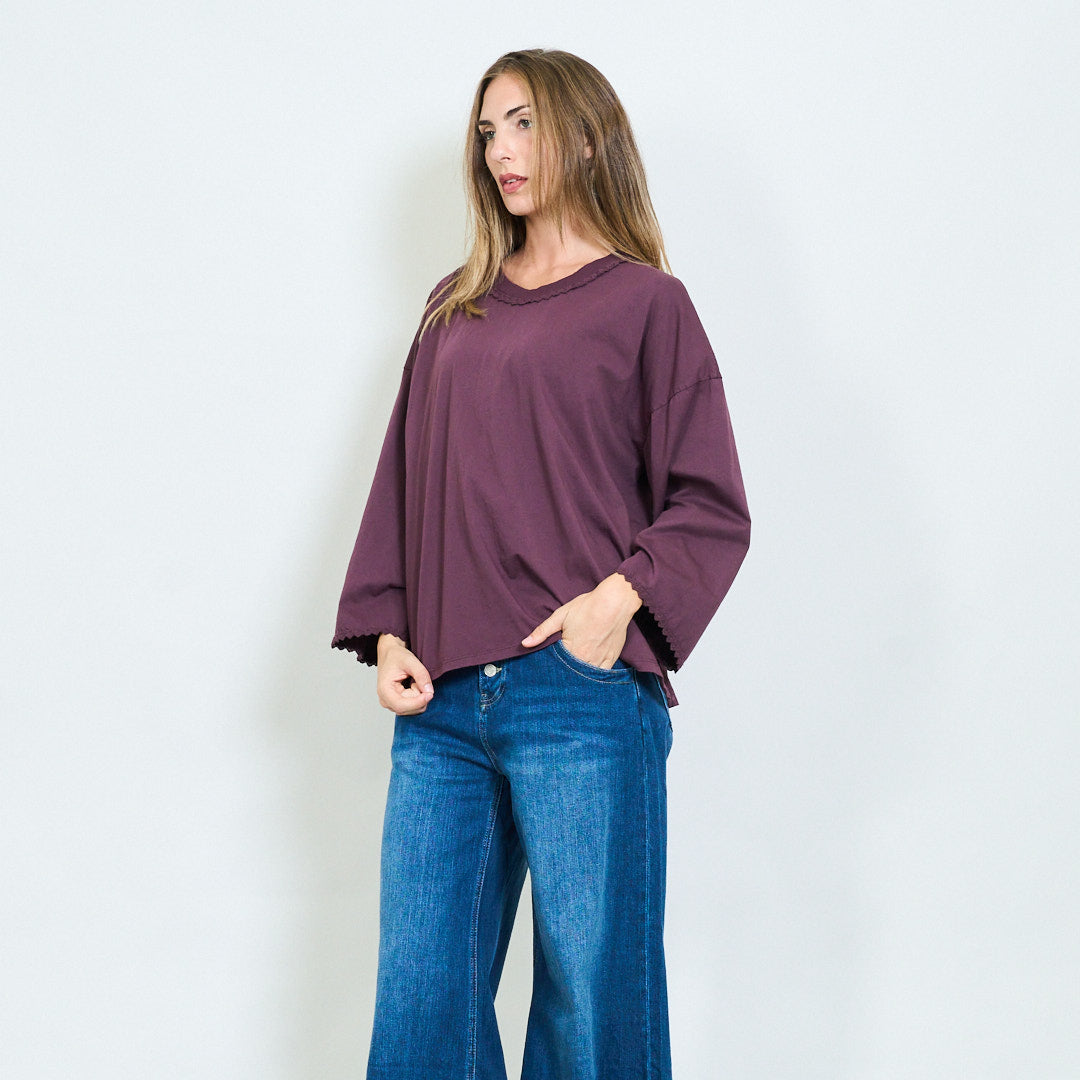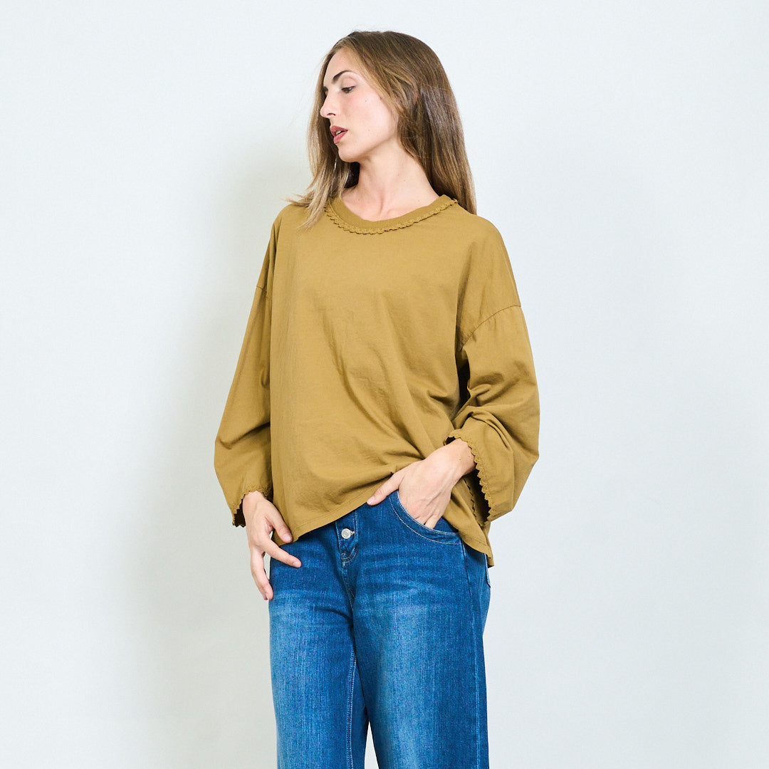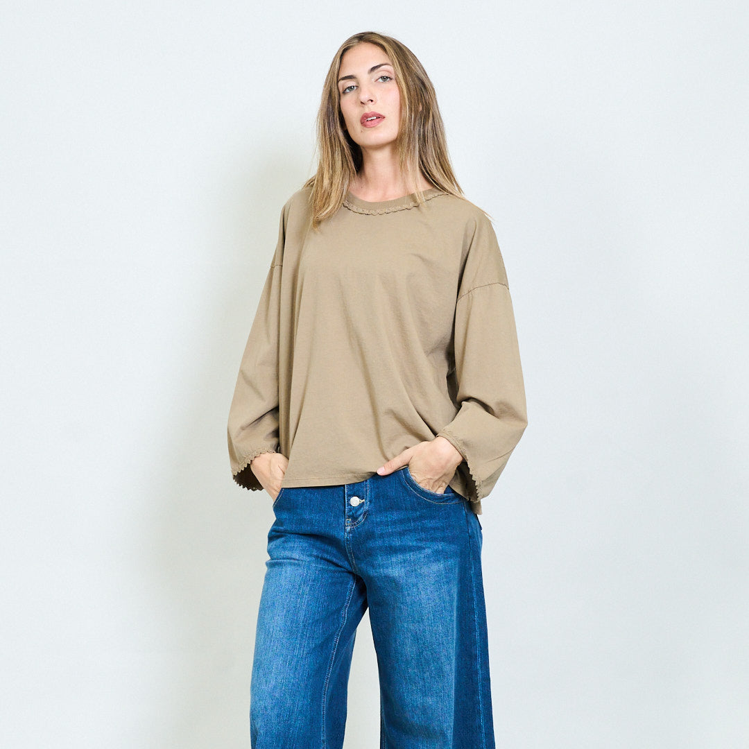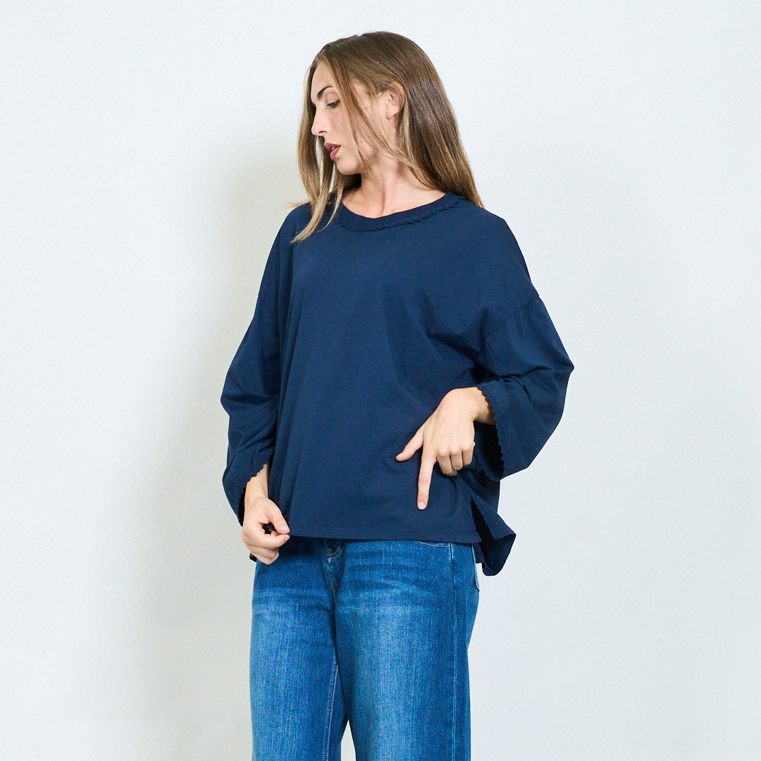 Top a maniche lunghe morbide con scollo a rivestimento in pizzo all'ingrosso
