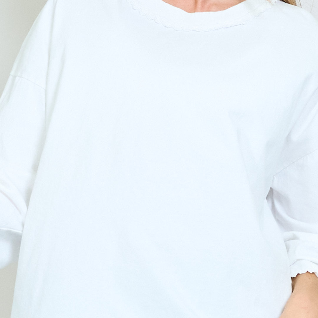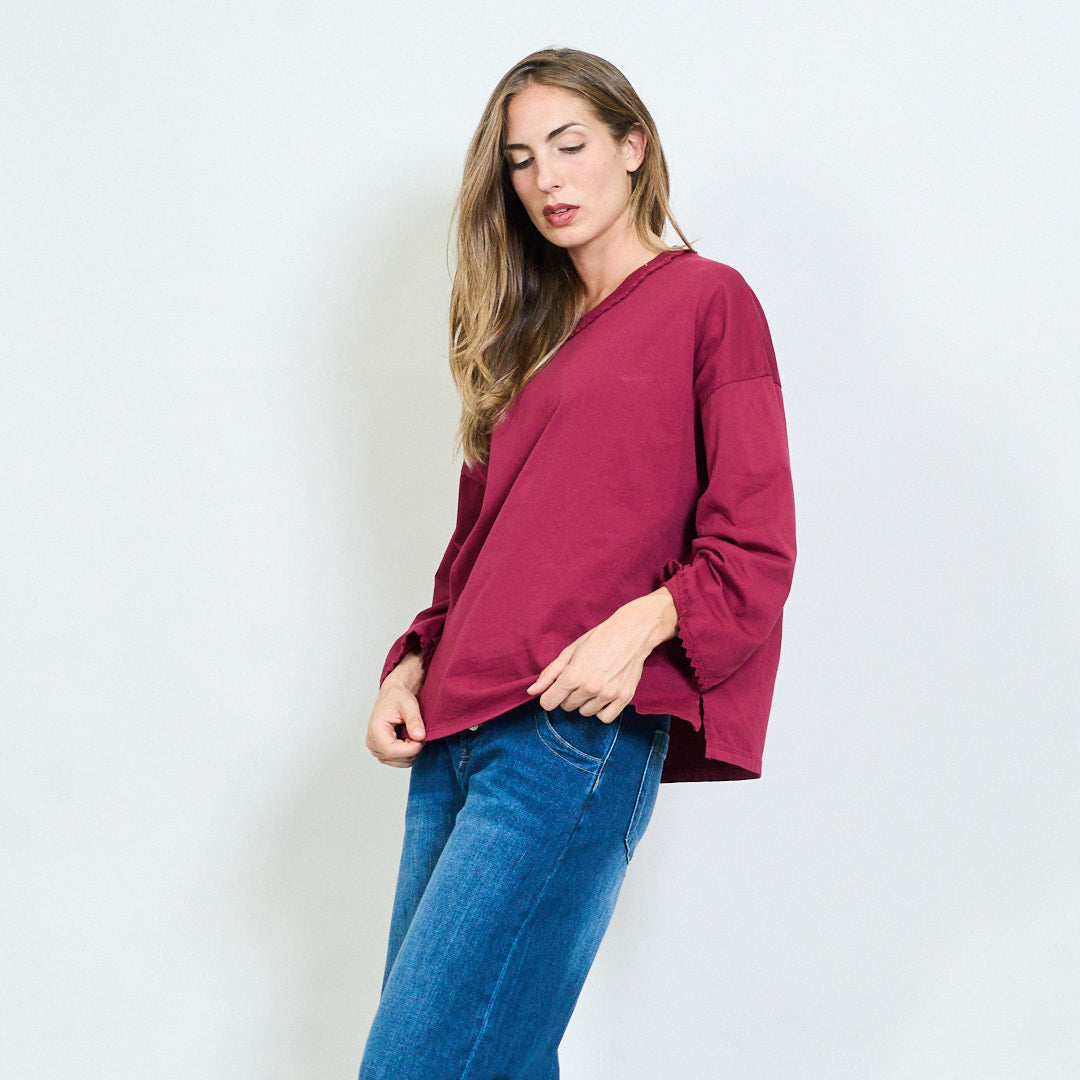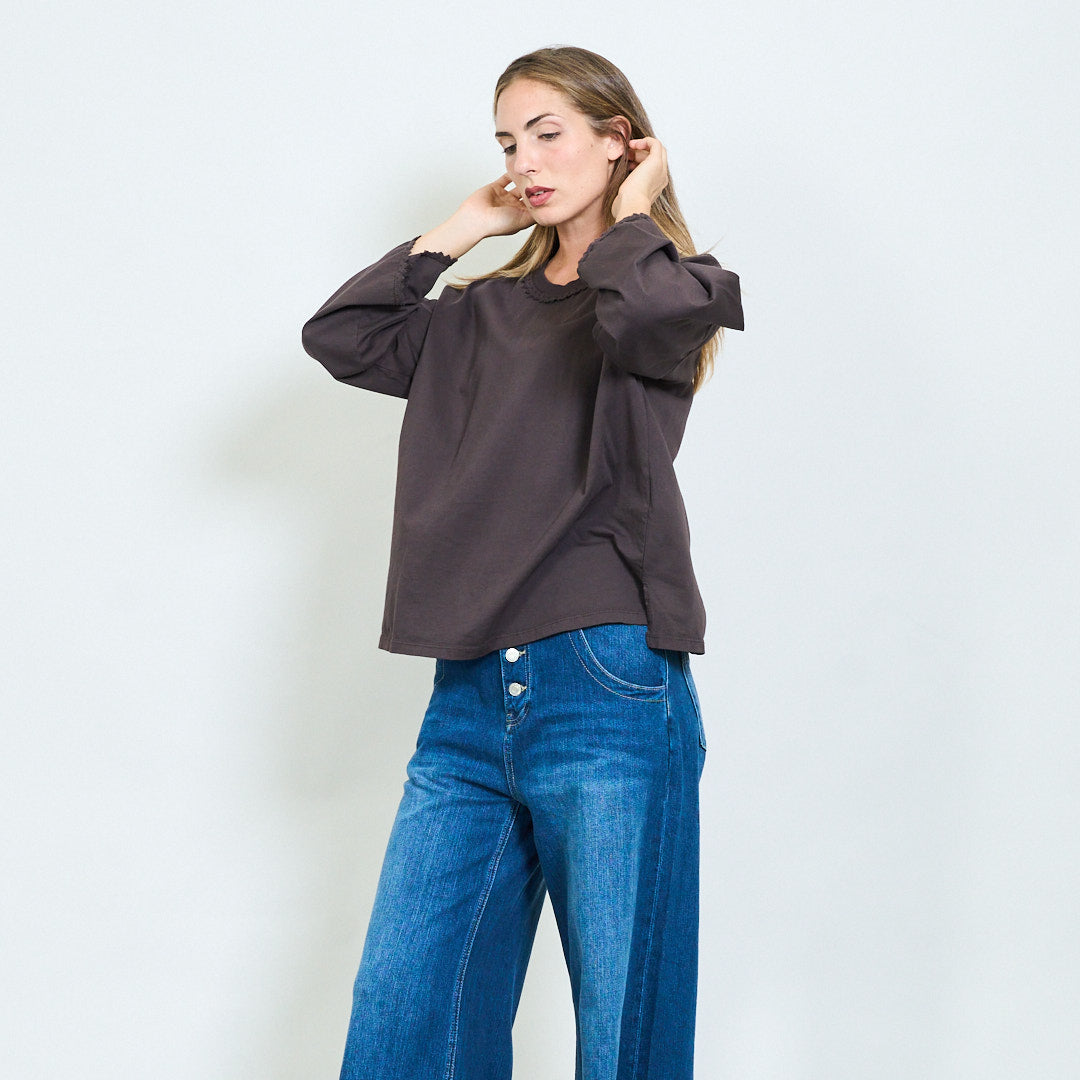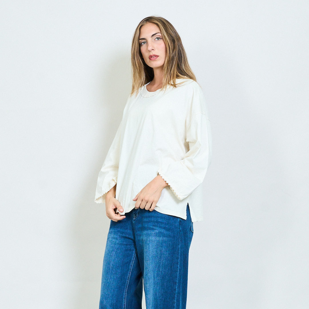 Top a maniche lunghe morbide con scollo a rivestimento in pizzo all'ingrosso