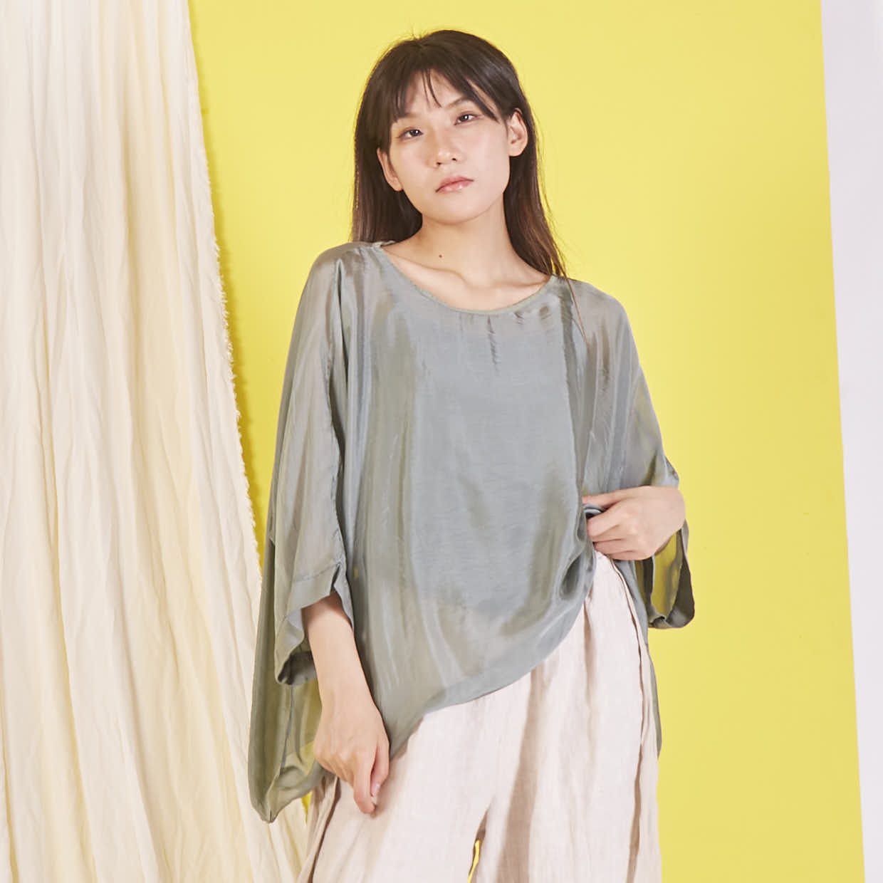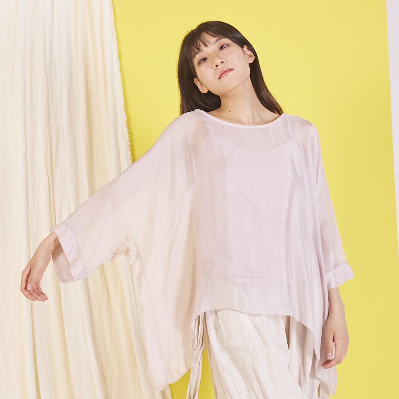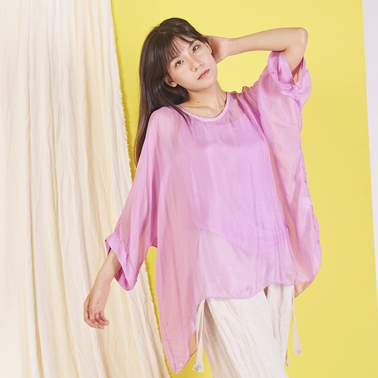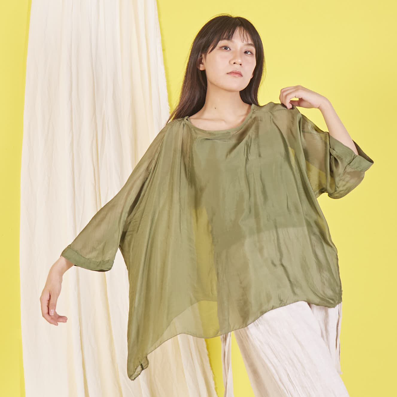 Blusa in chiffon di seta all'ingrosso di seta oversize con collo dell'equipaggio