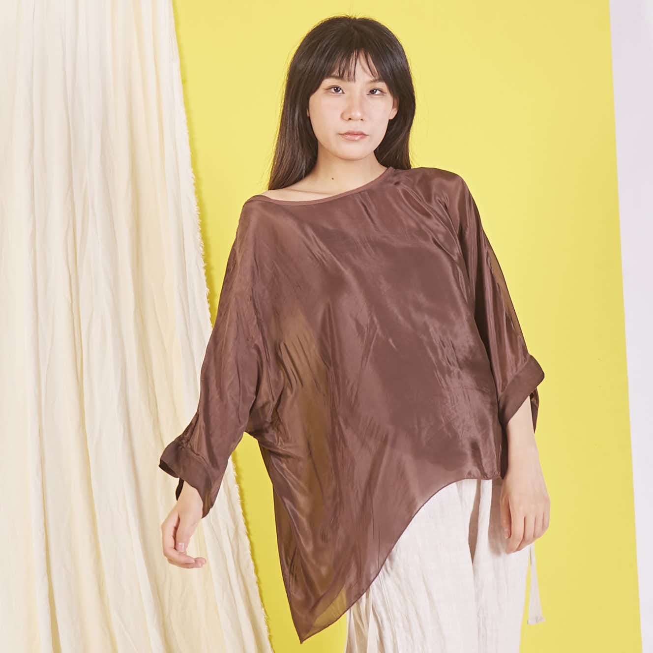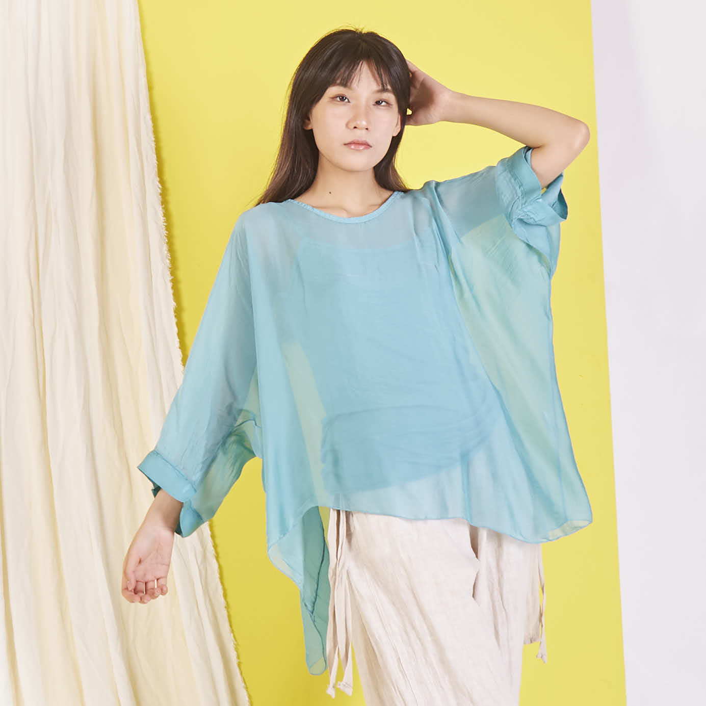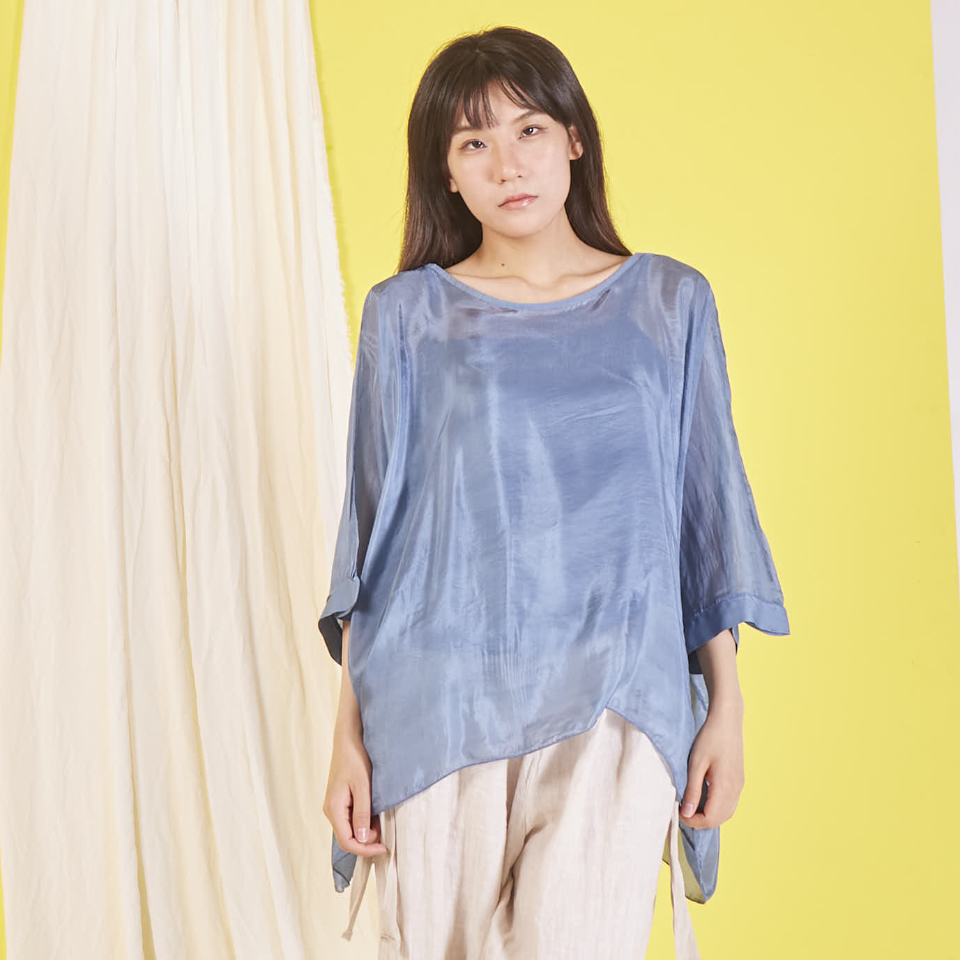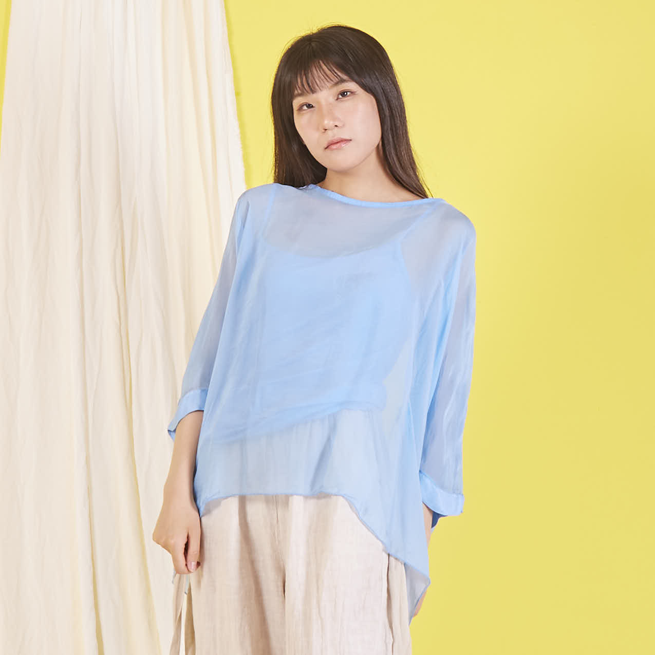 Blusa in chiffon di seta all'ingrosso di seta oversize con collo dell'equipaggio