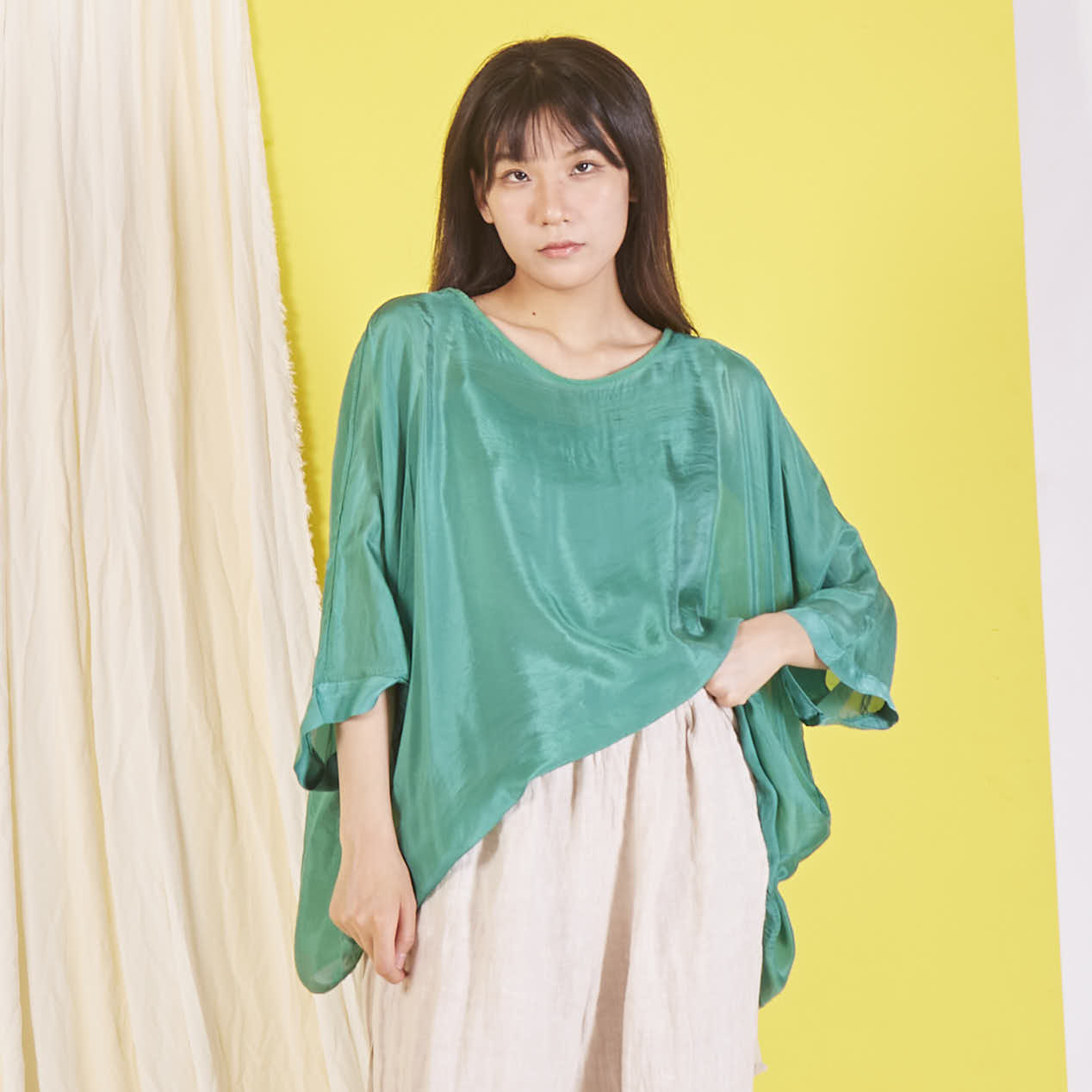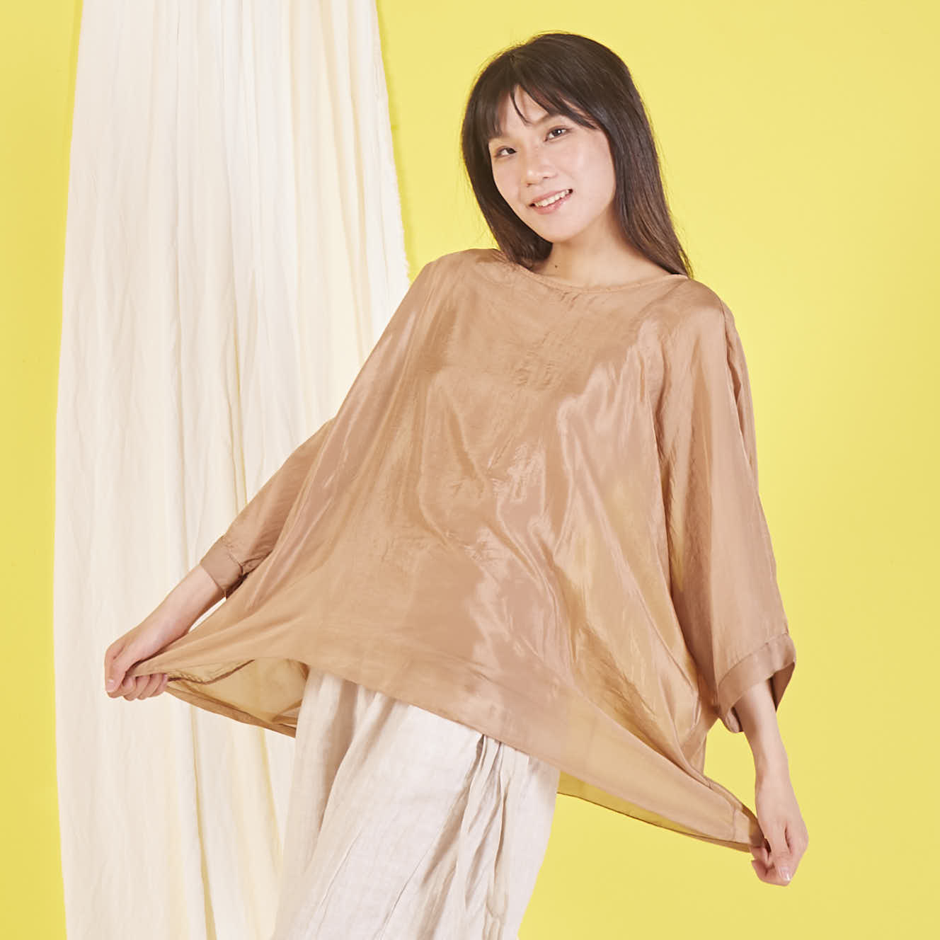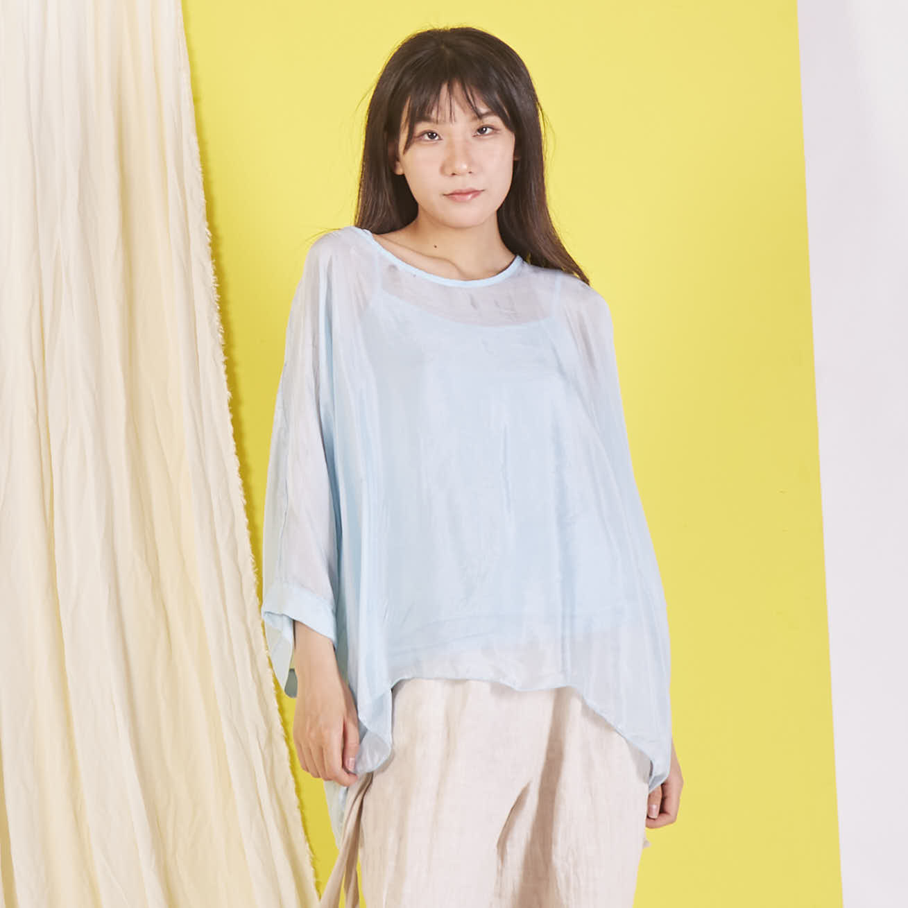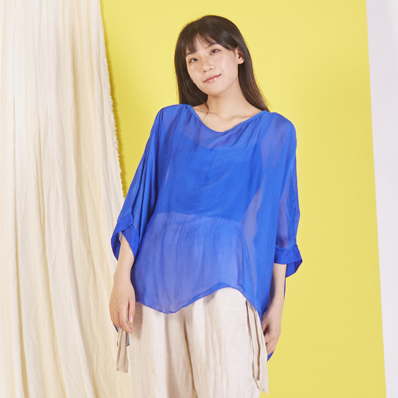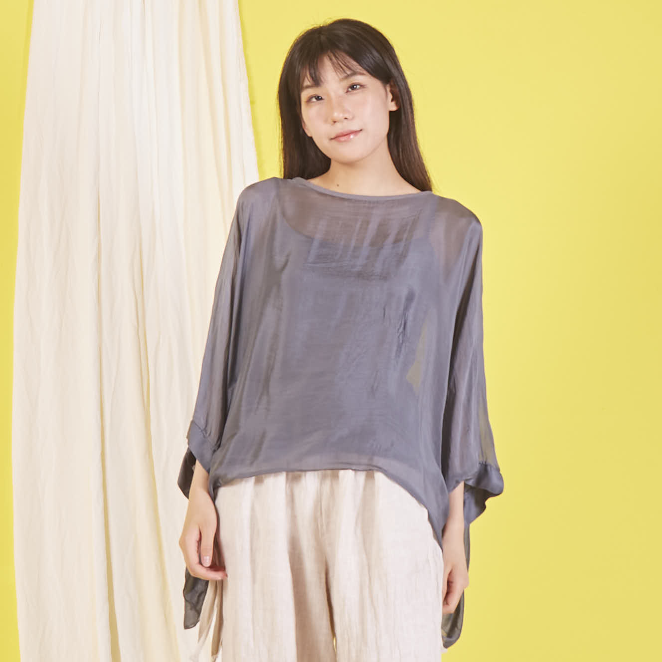 Blusa in chiffon di seta all'ingrosso di seta oversize con collo dell'equipaggio
