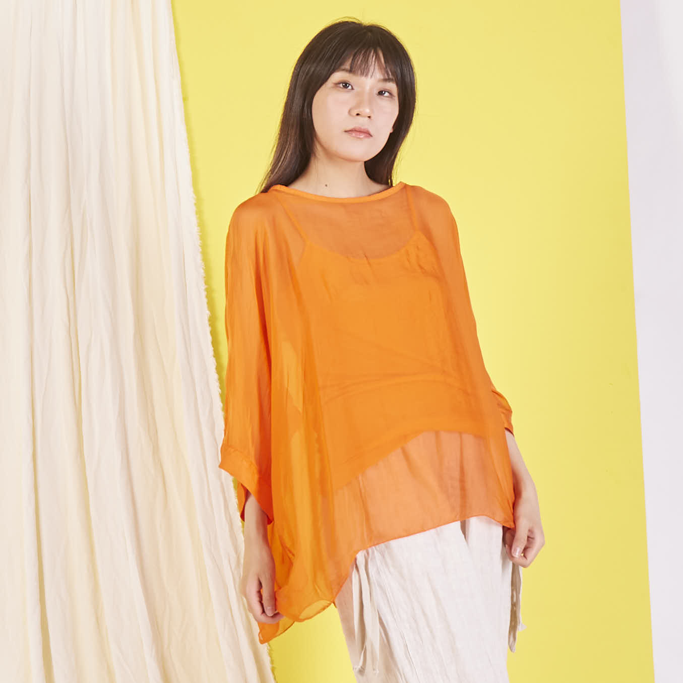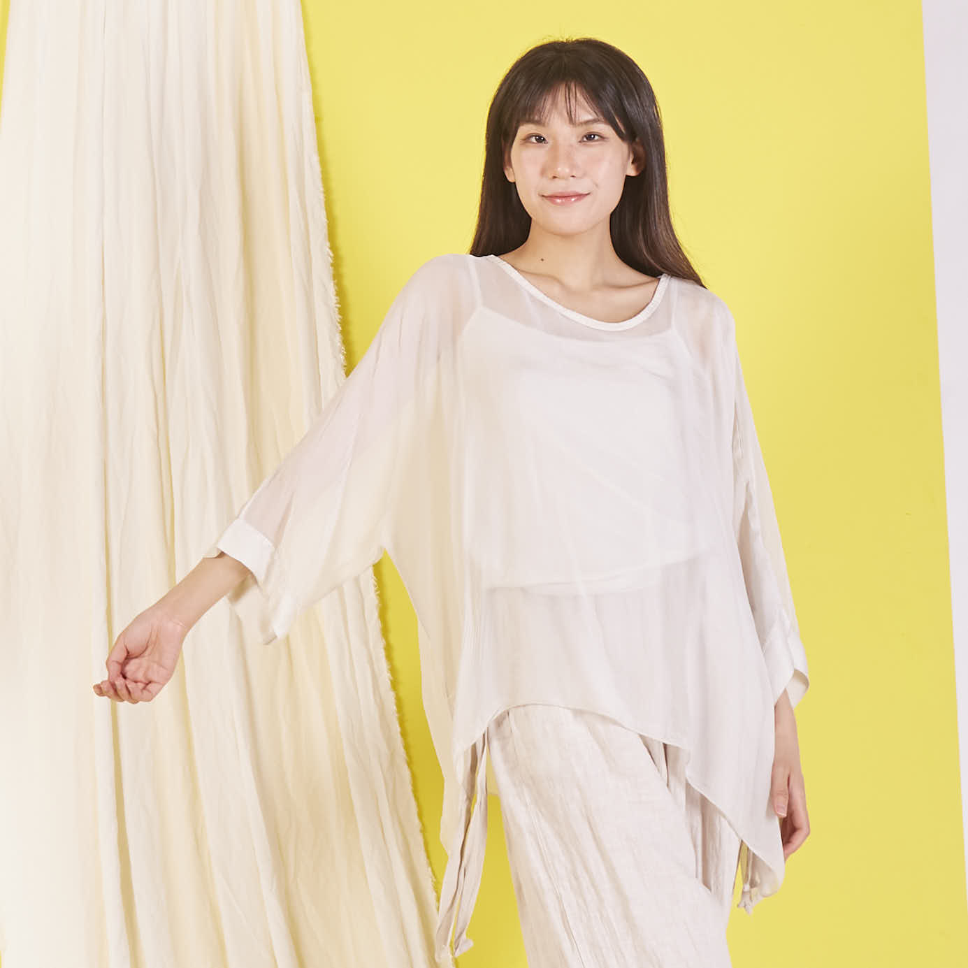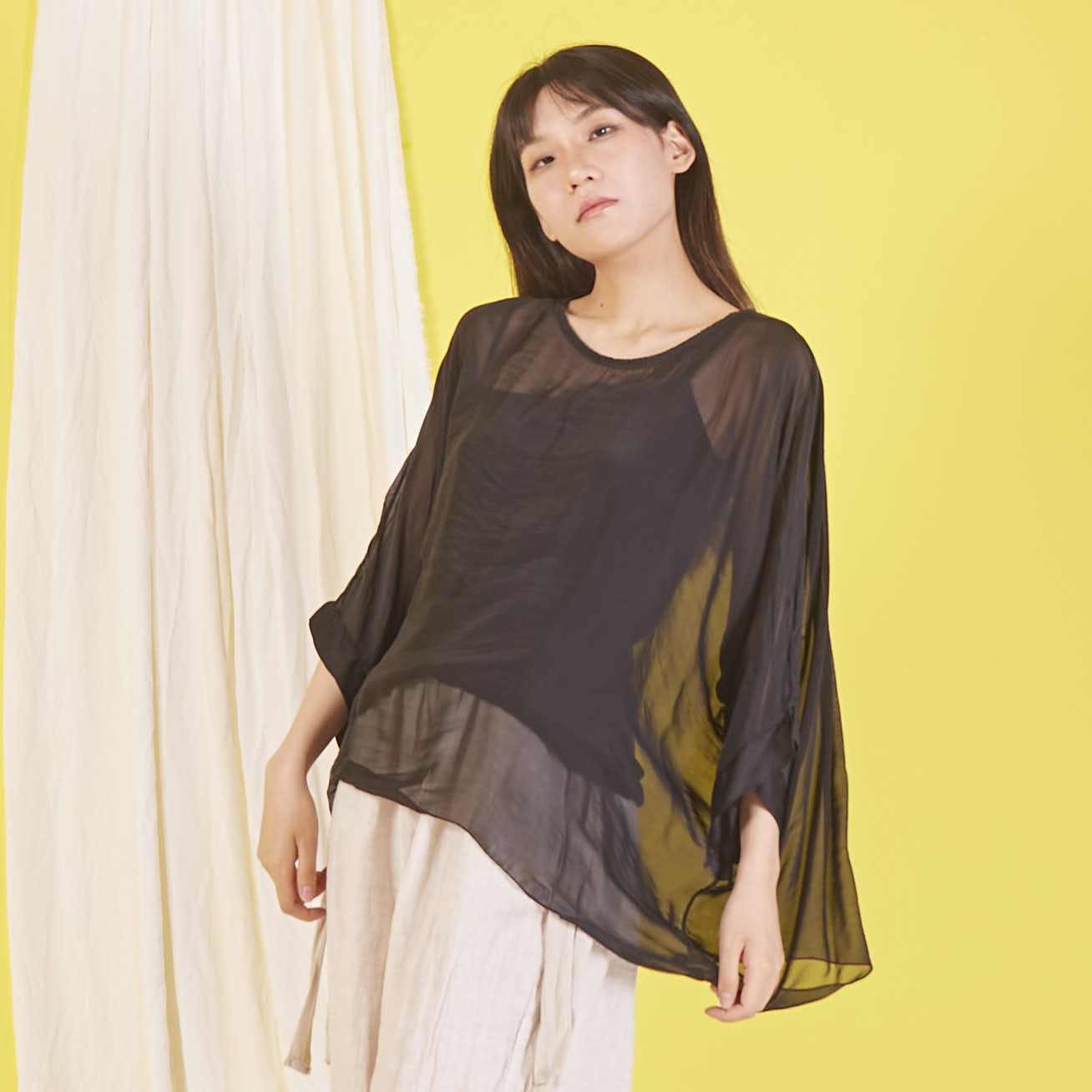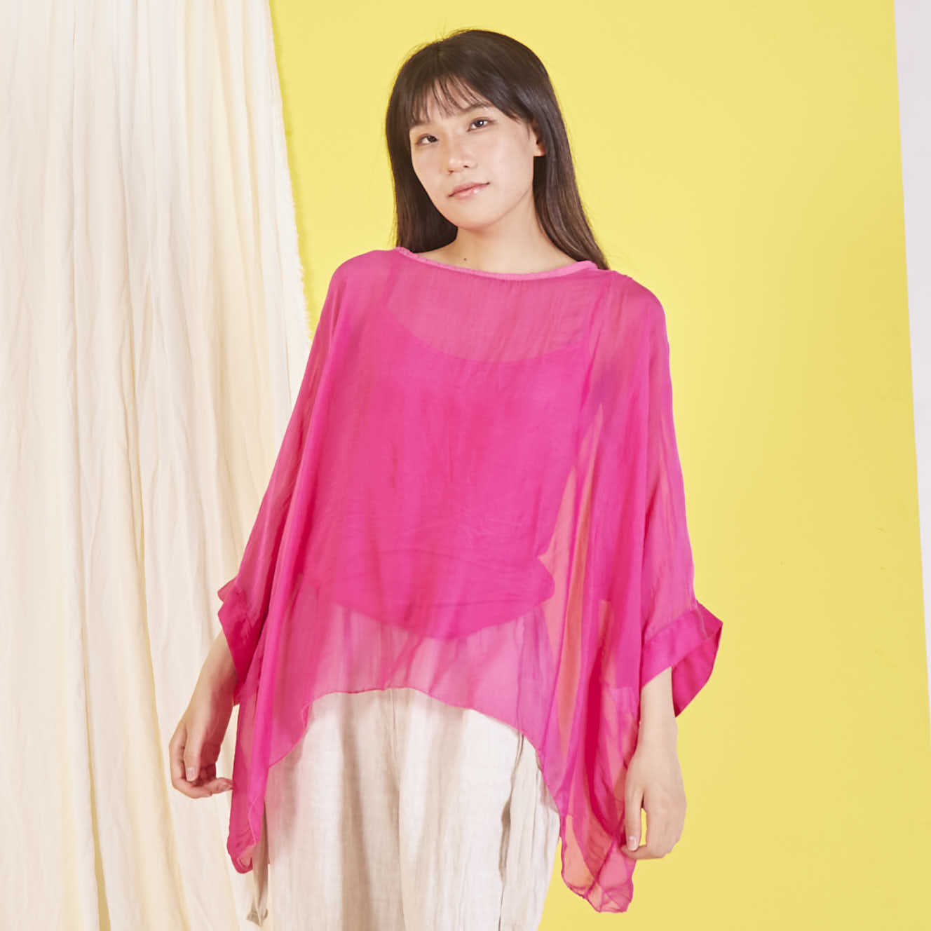 Blusa in chiffon di seta all'ingrosso di seta oversize con collo dell'equipaggio