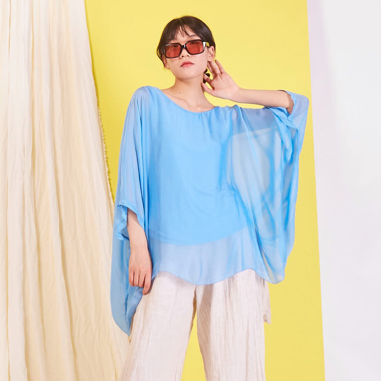 Blusa in chiffon di seta di grandi dimensioni all'ingrosso con foderato