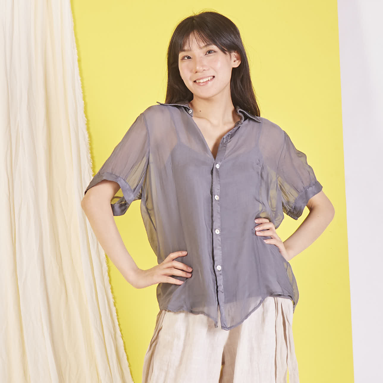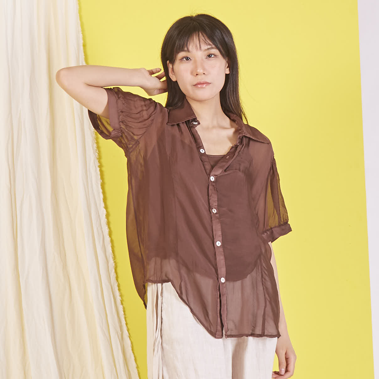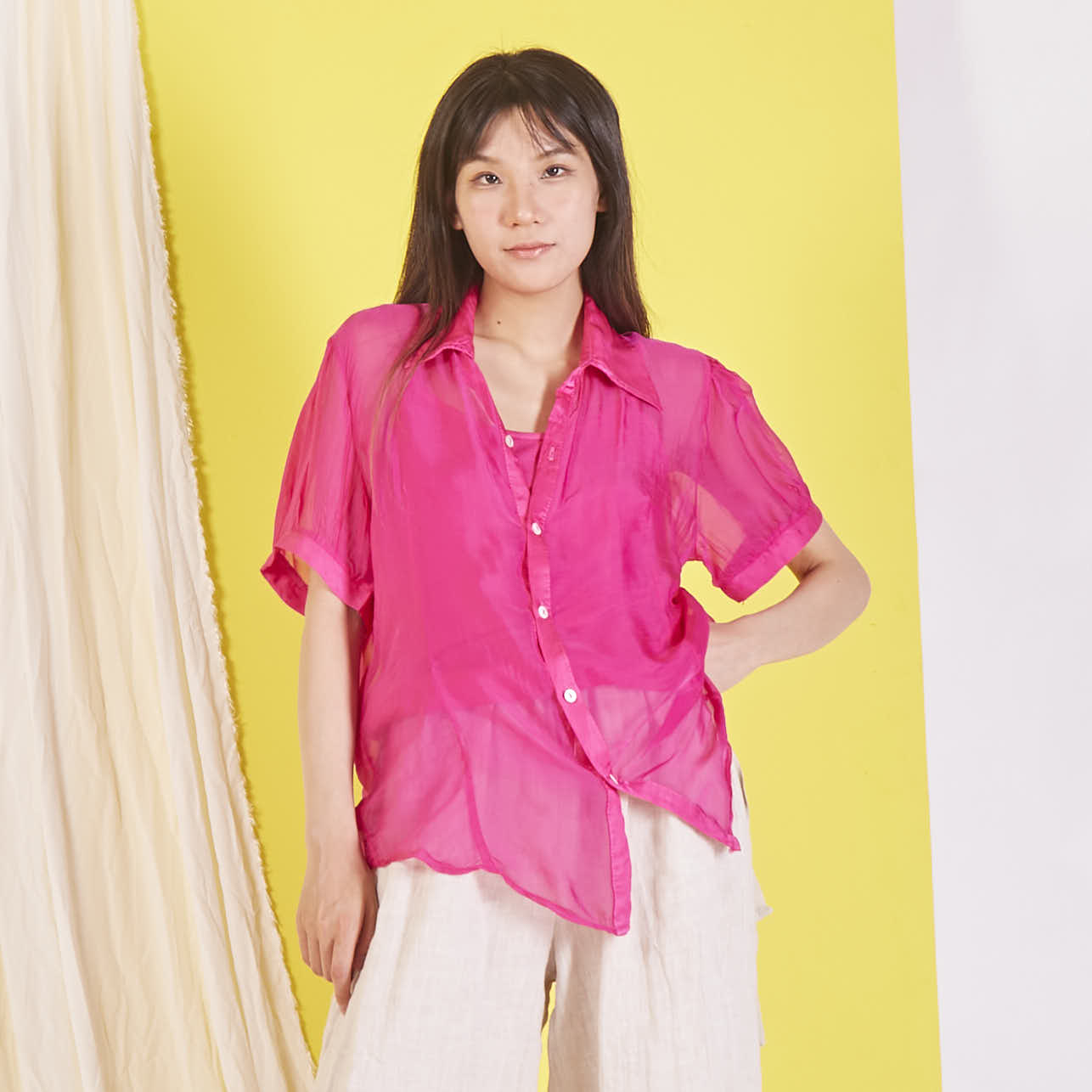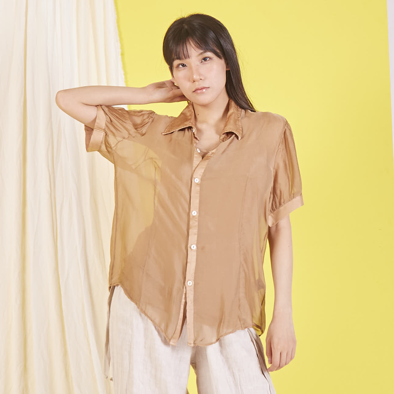 Camicetta in chiffon di seta all'ingrosso con maniche corte