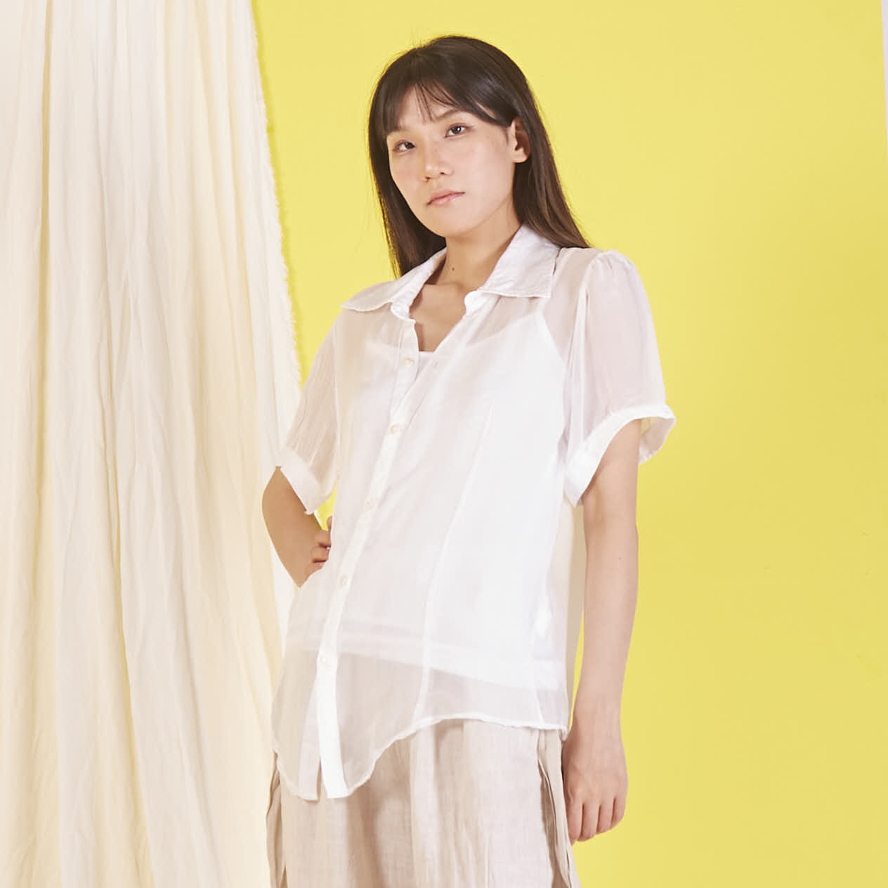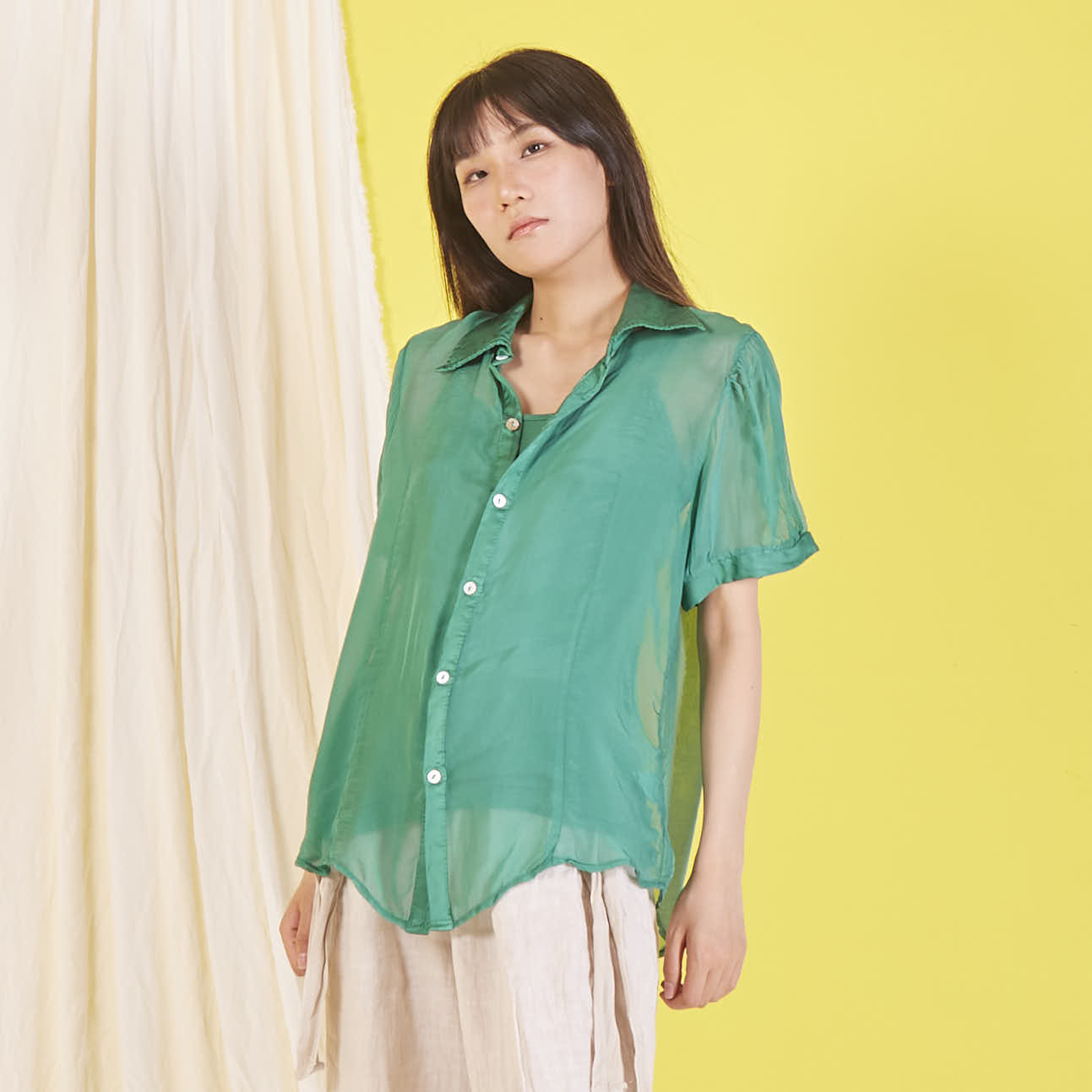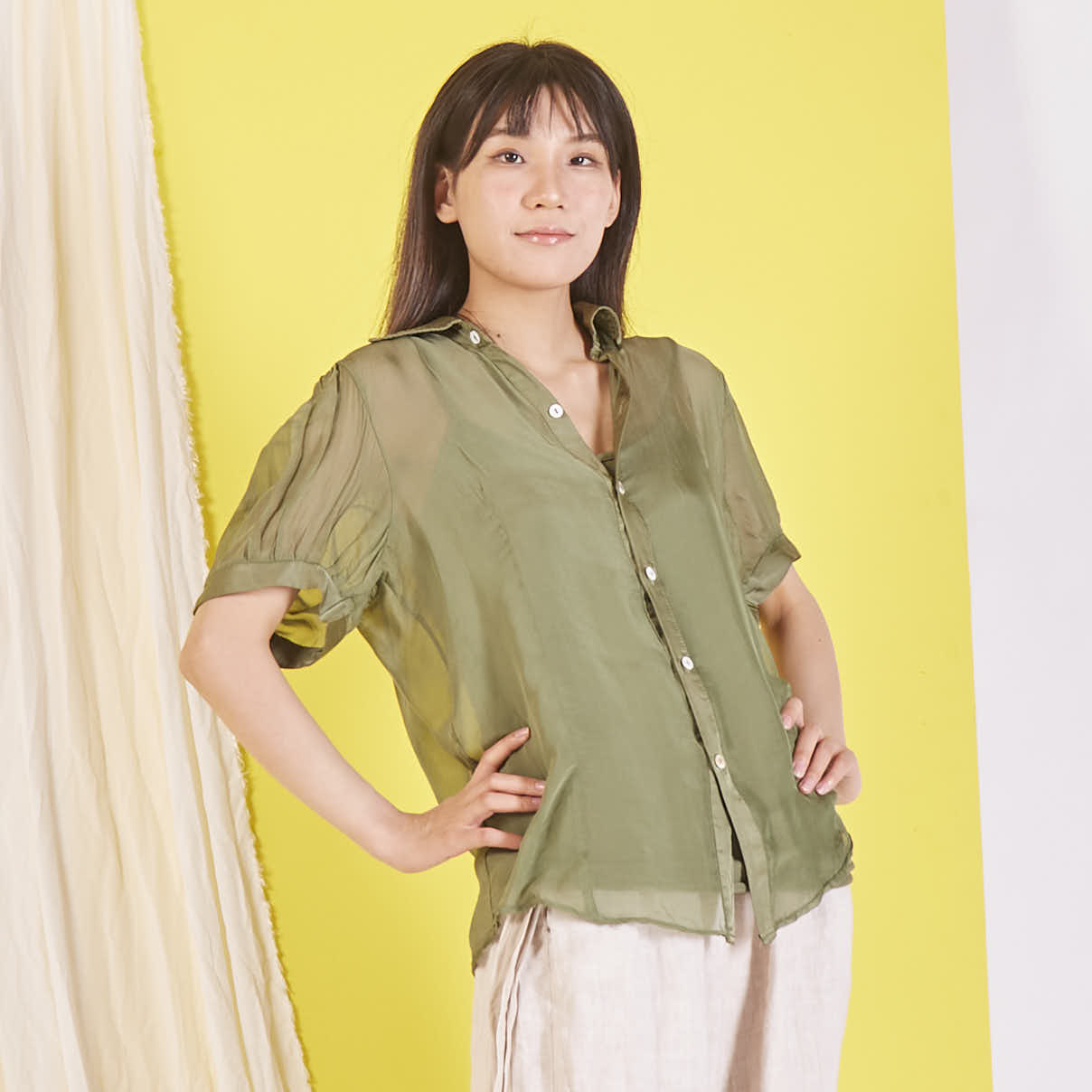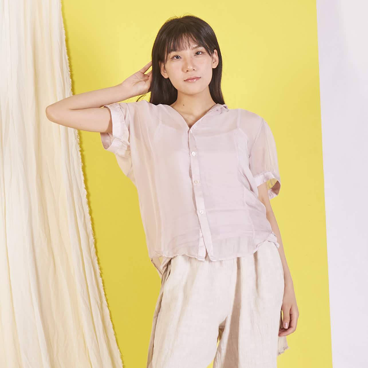 Camicetta in chiffon di seta all'ingrosso con maniche corte