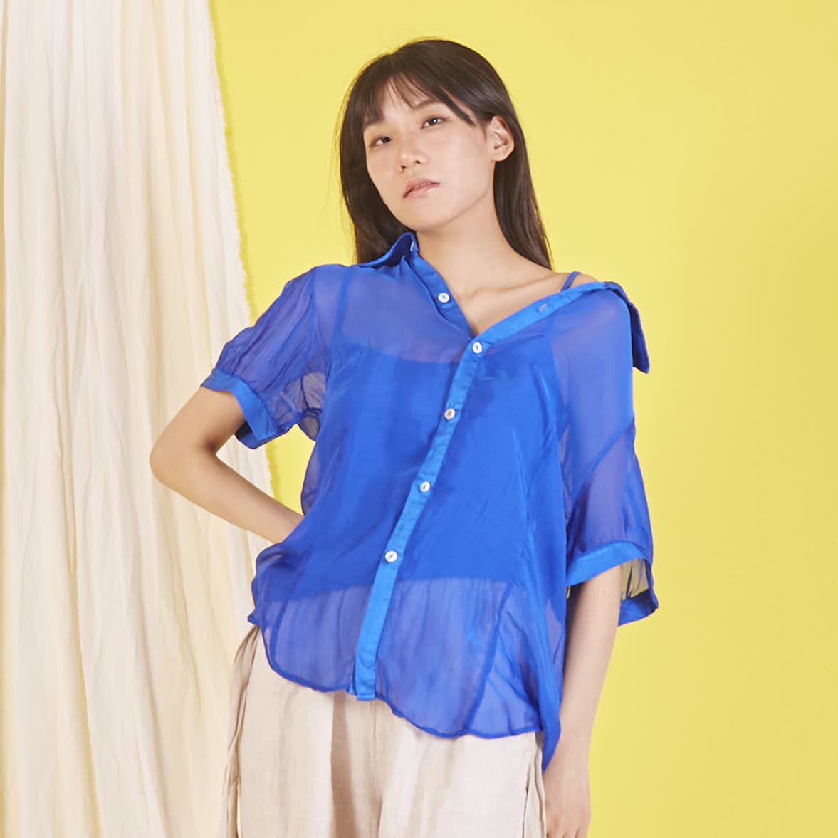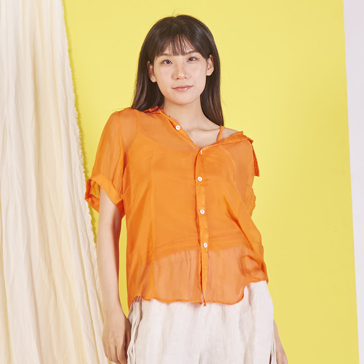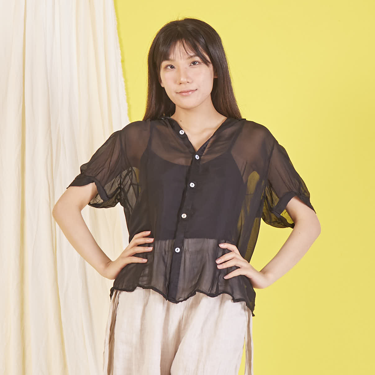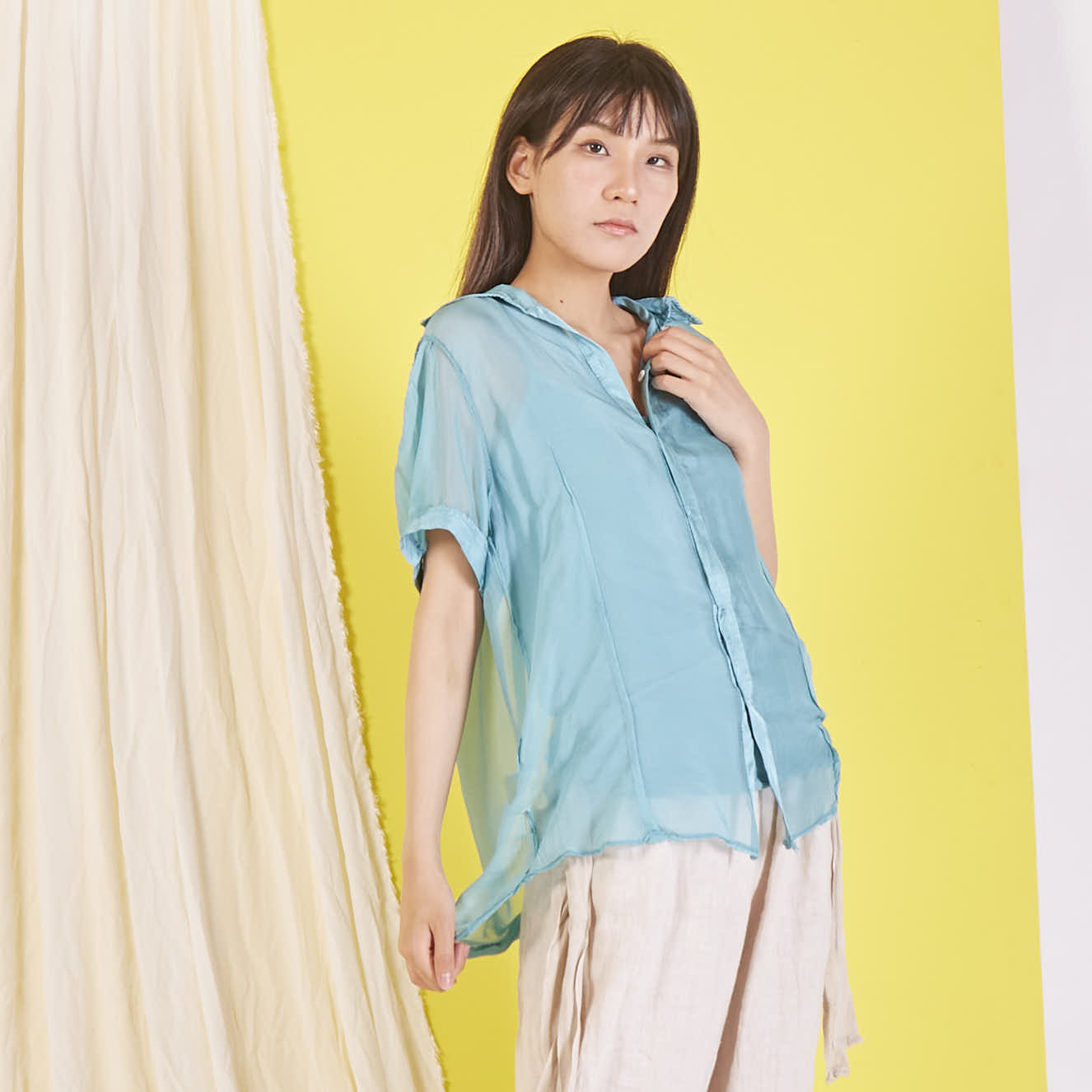 Camicetta in chiffon di seta all'ingrosso con maniche corte