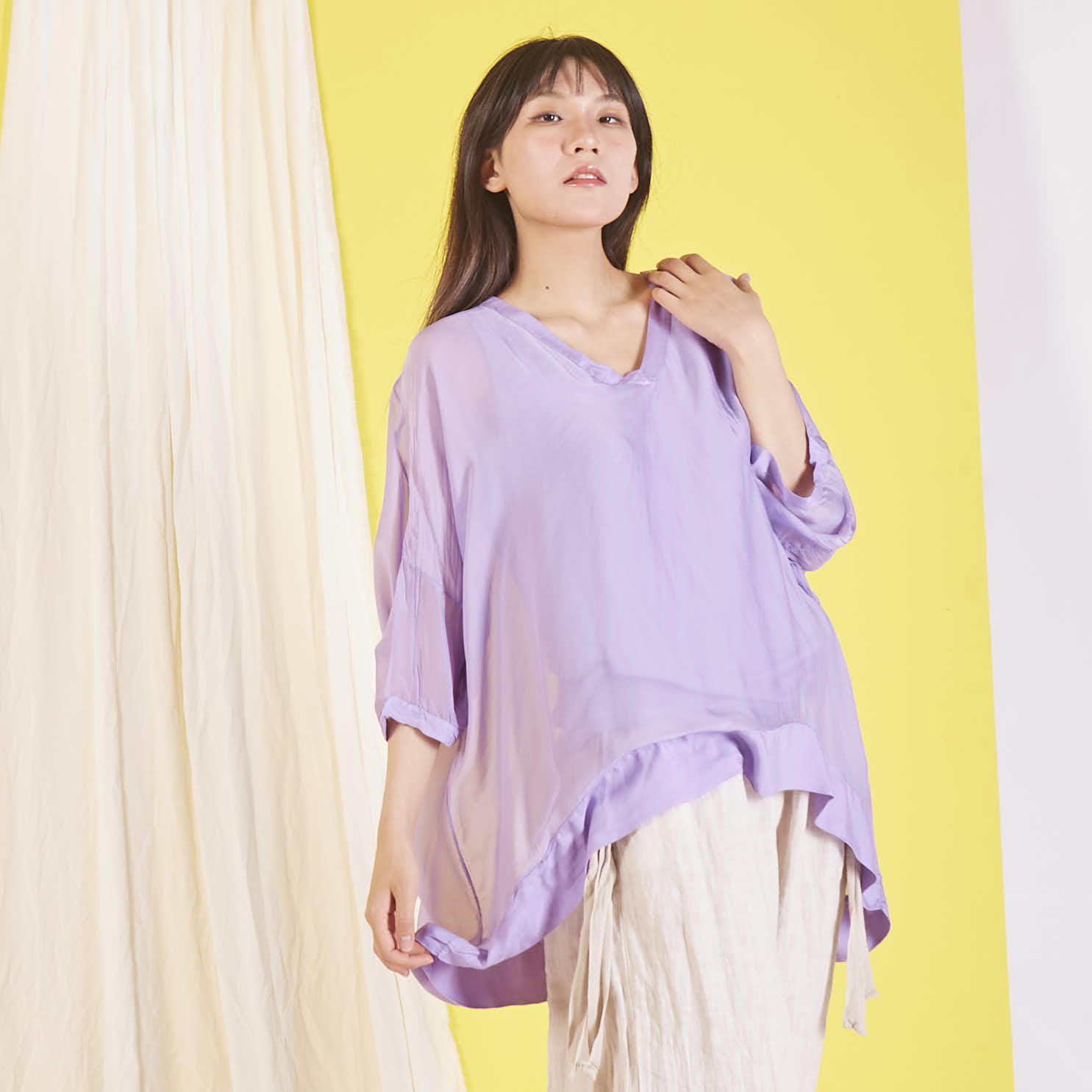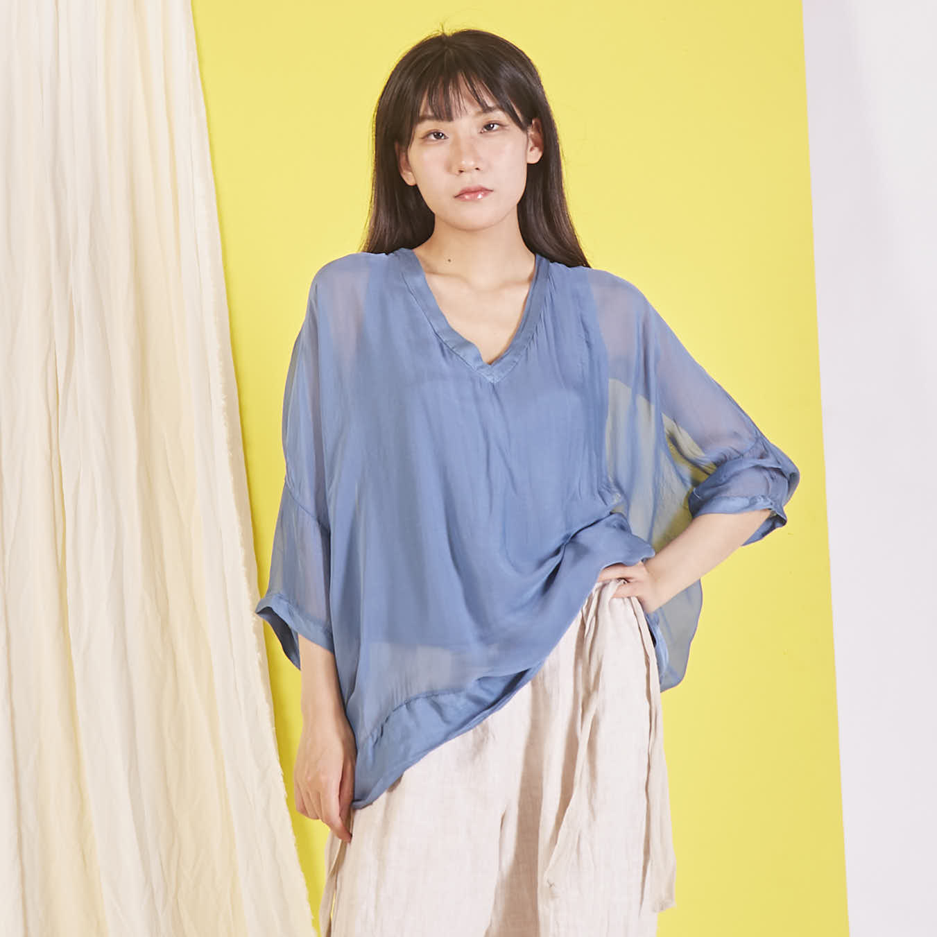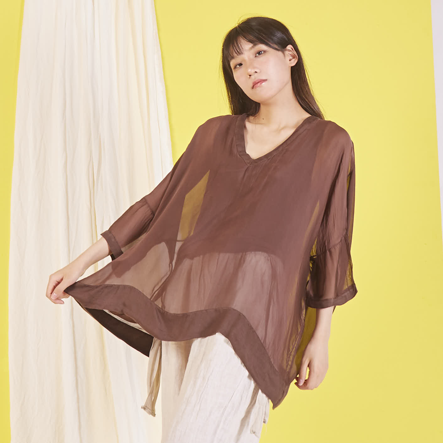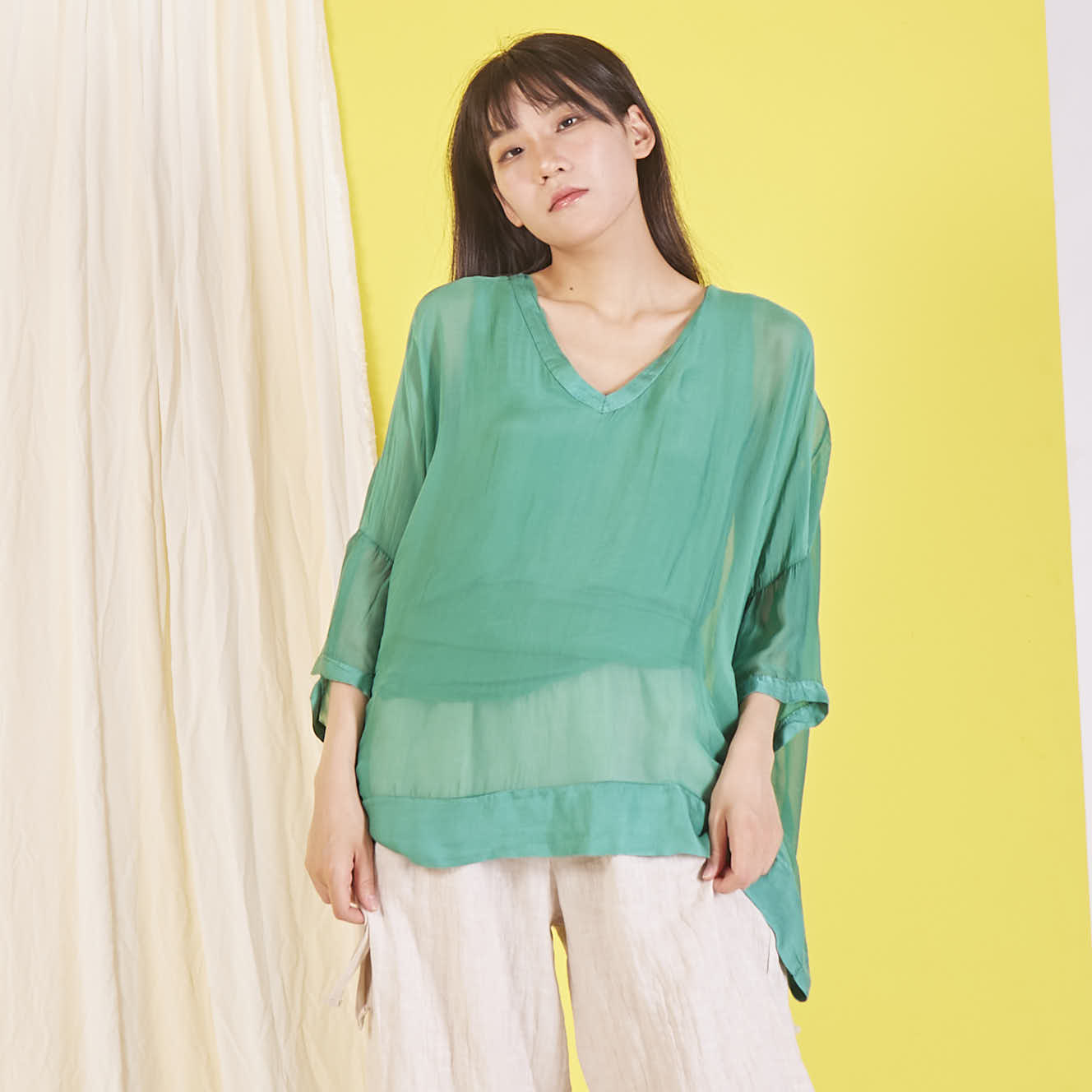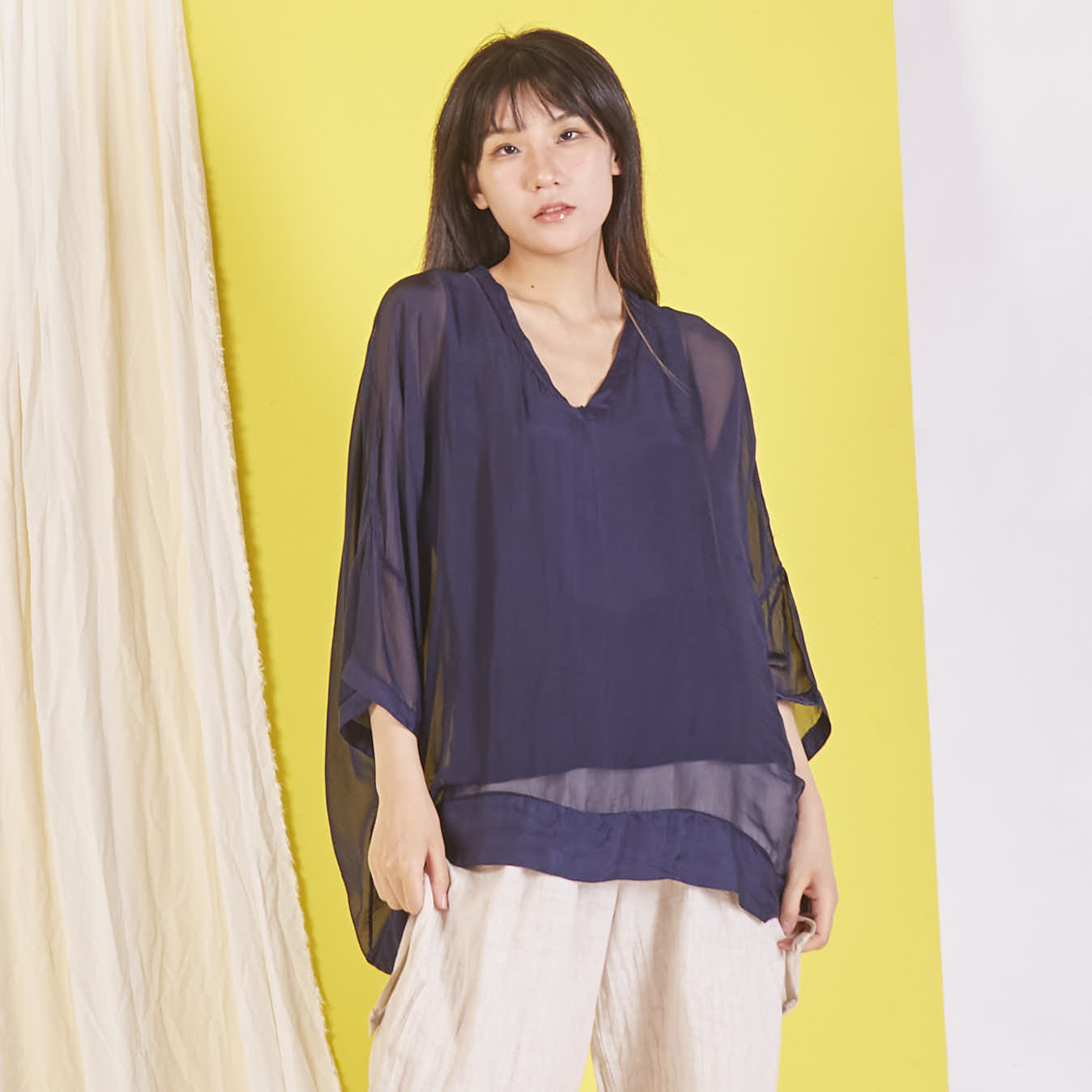 Camicetta in chiffon di seta larga all'ingrosso con scollo a V