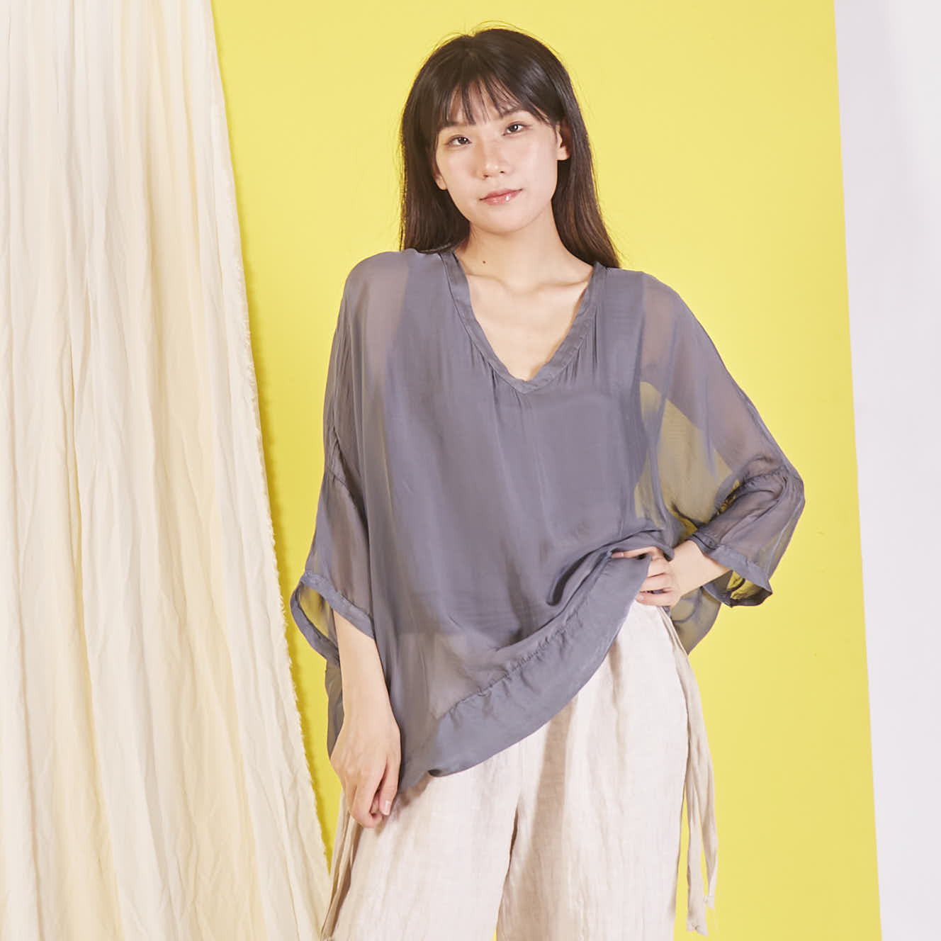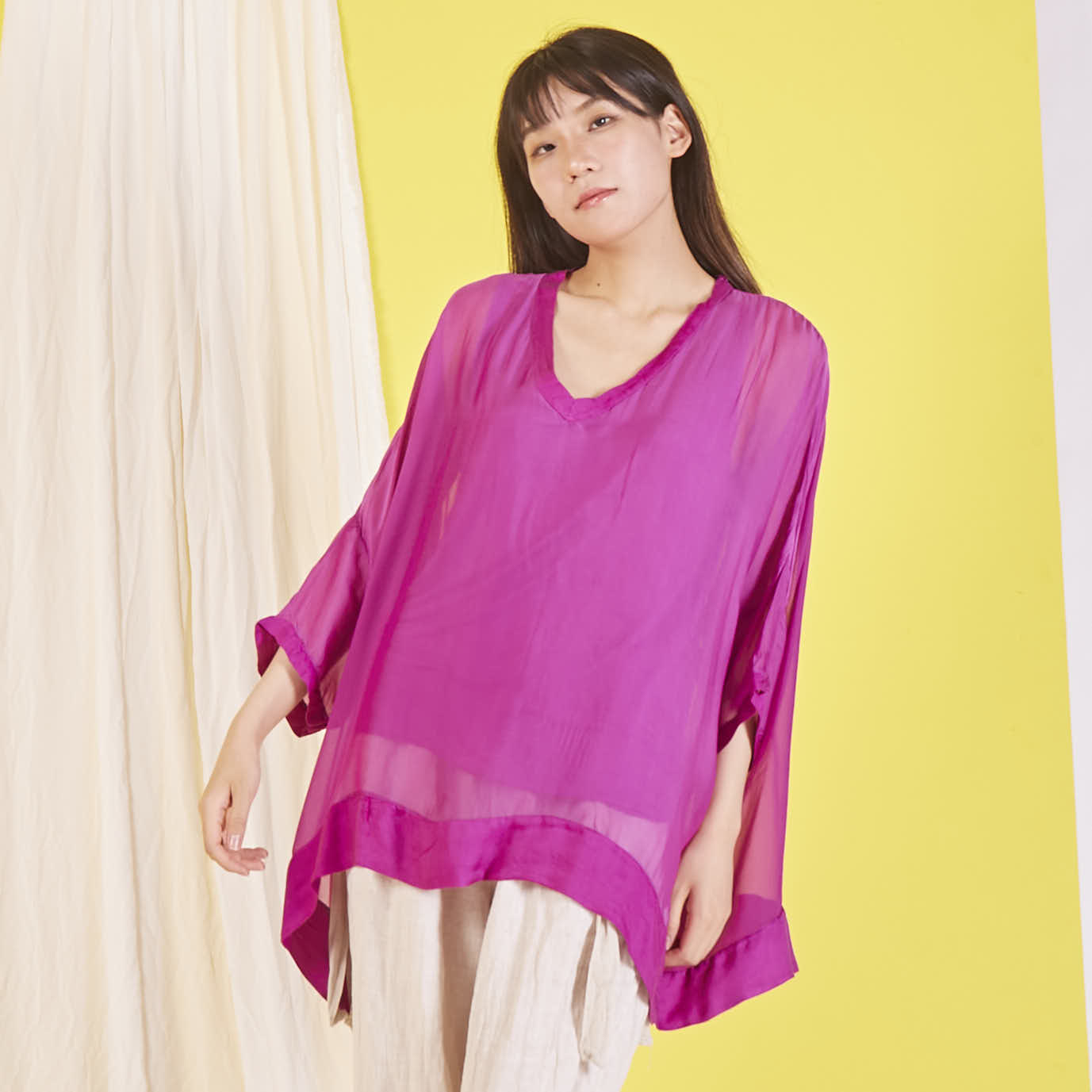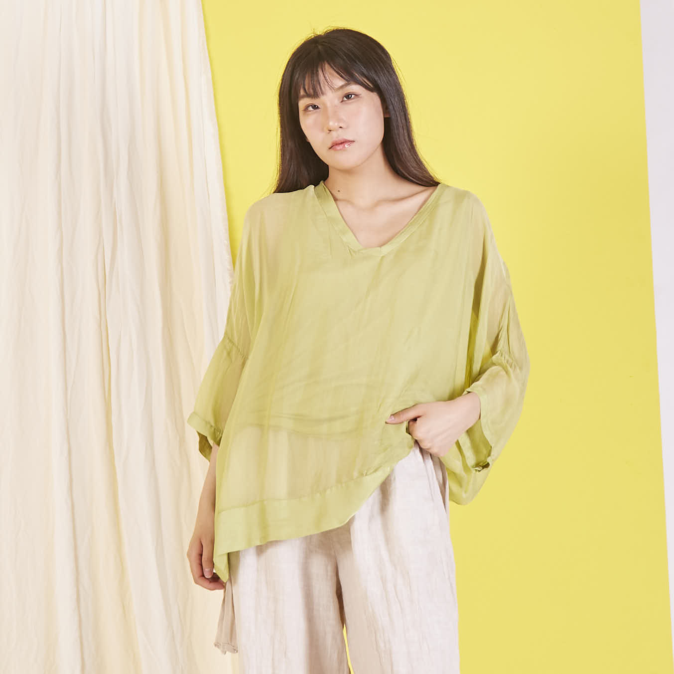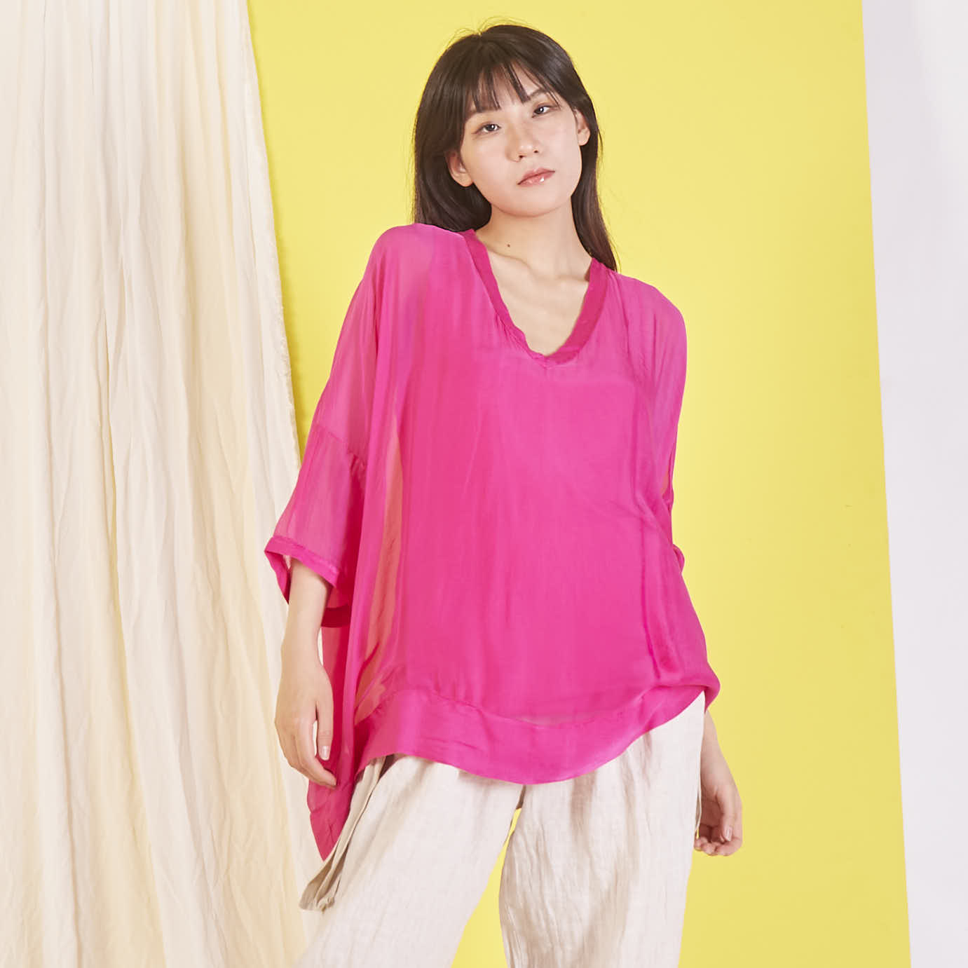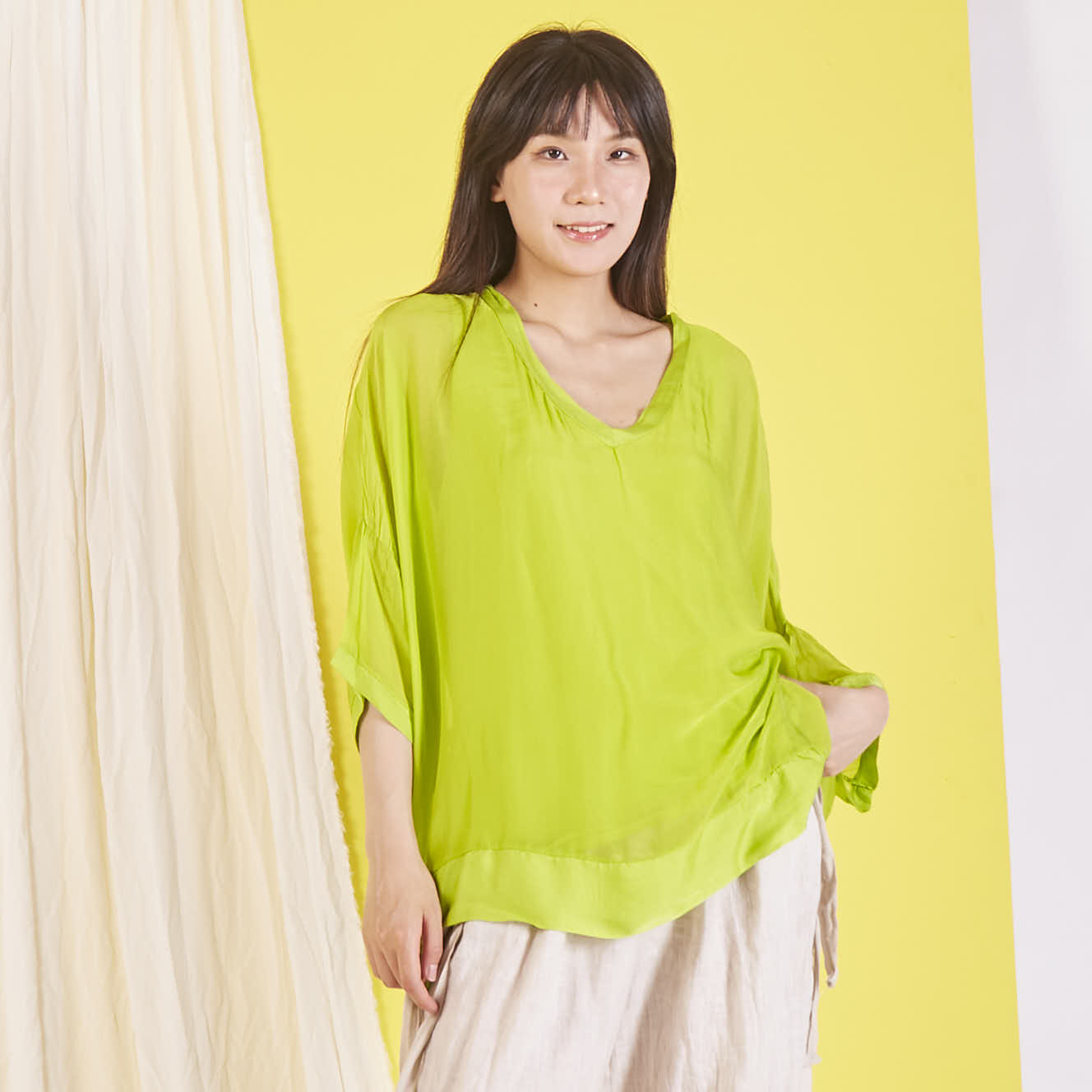 Camicetta in chiffon di seta larga all'ingrosso con scollo a V