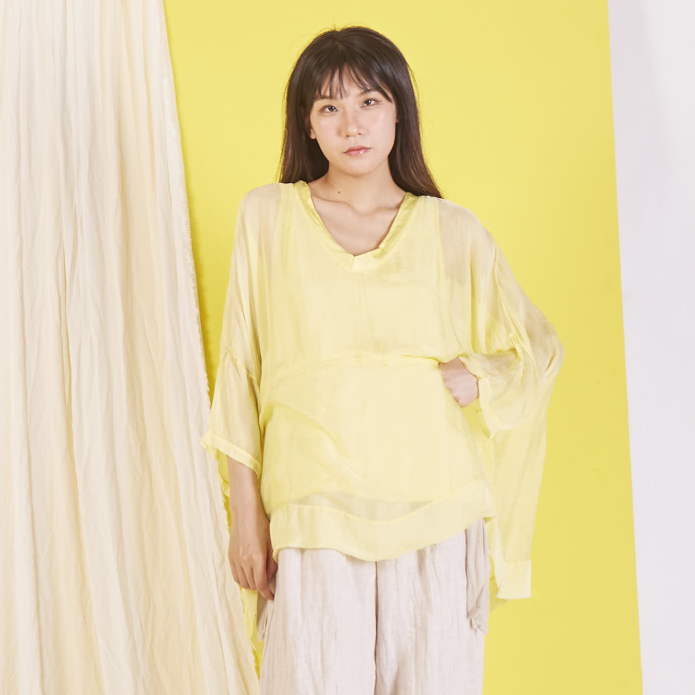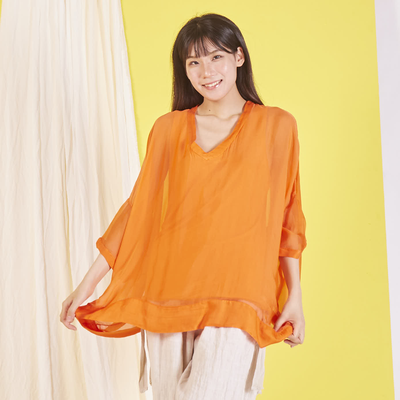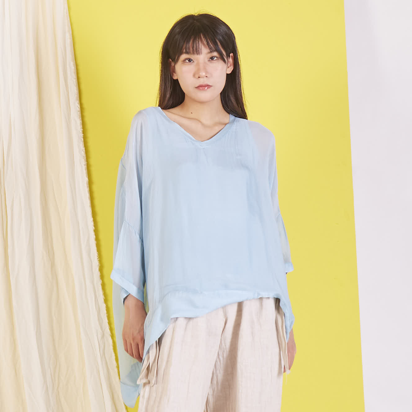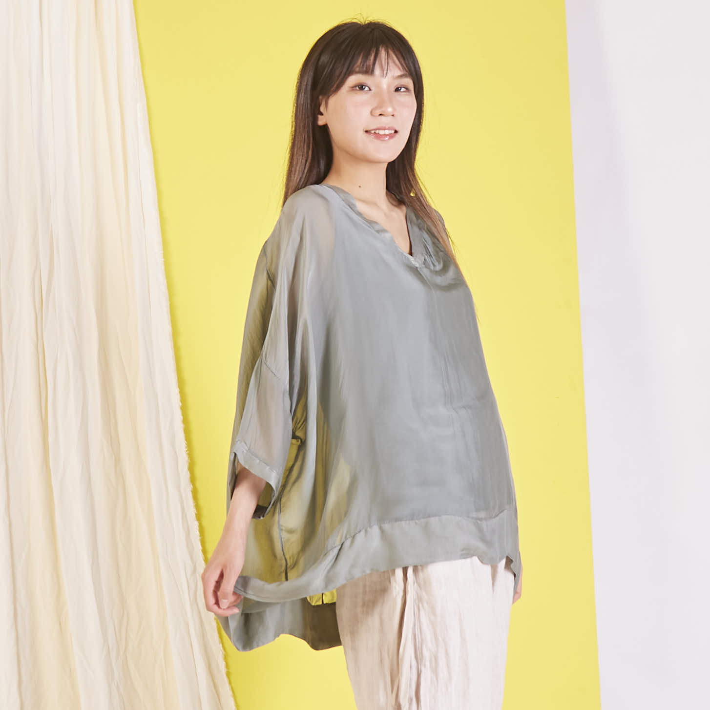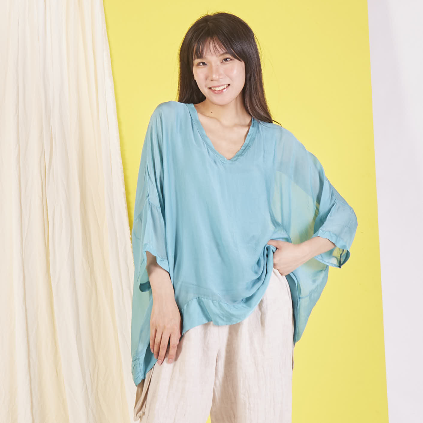 Camicetta in chiffon di seta larga all'ingrosso con scollo a V