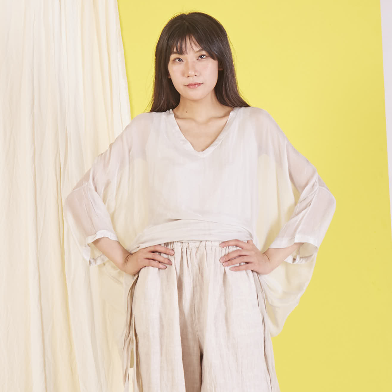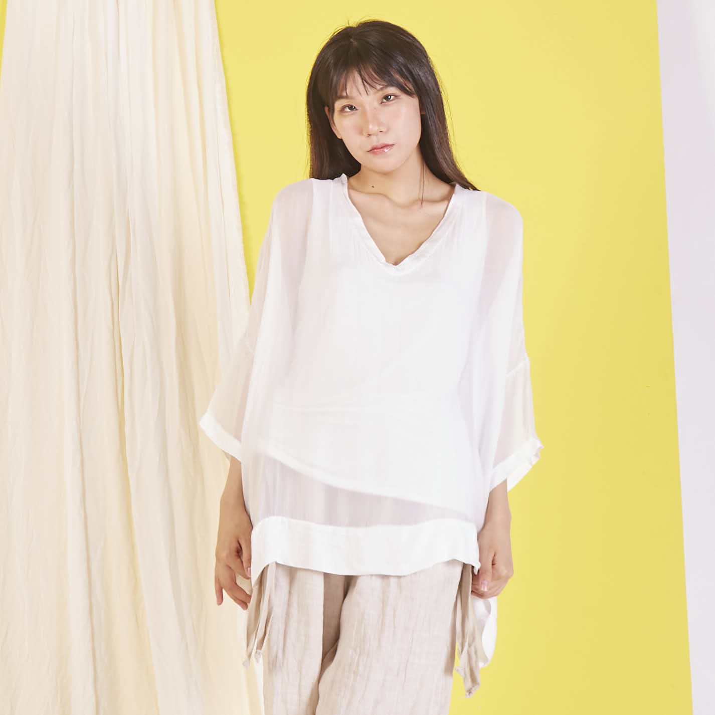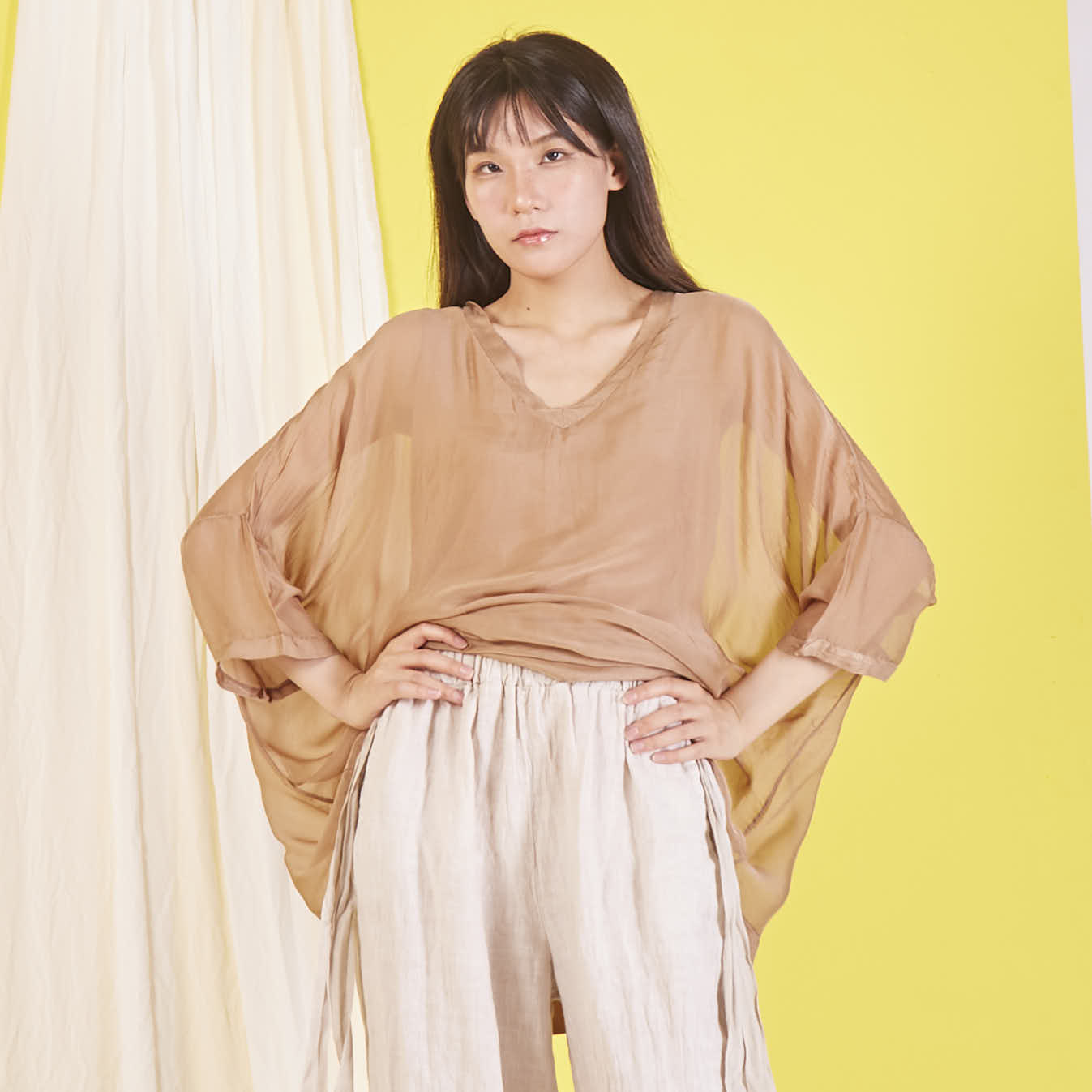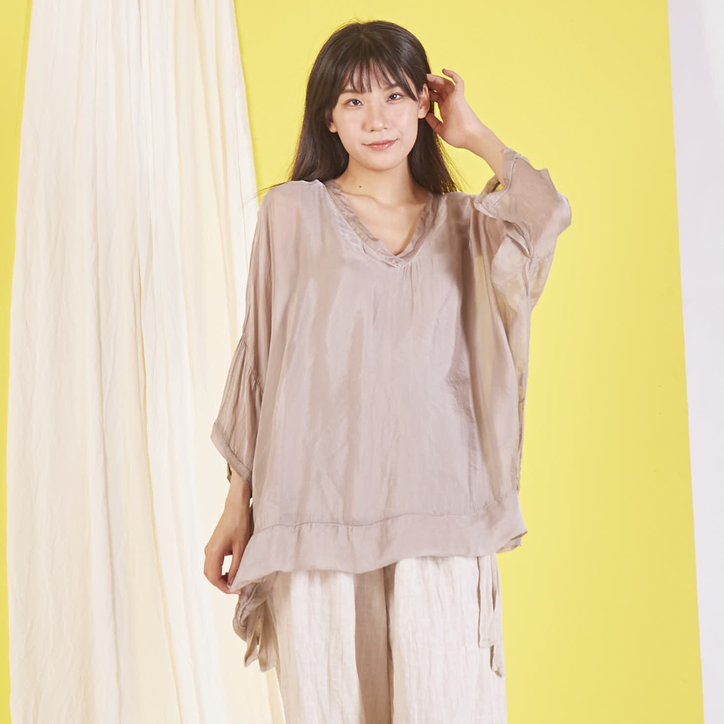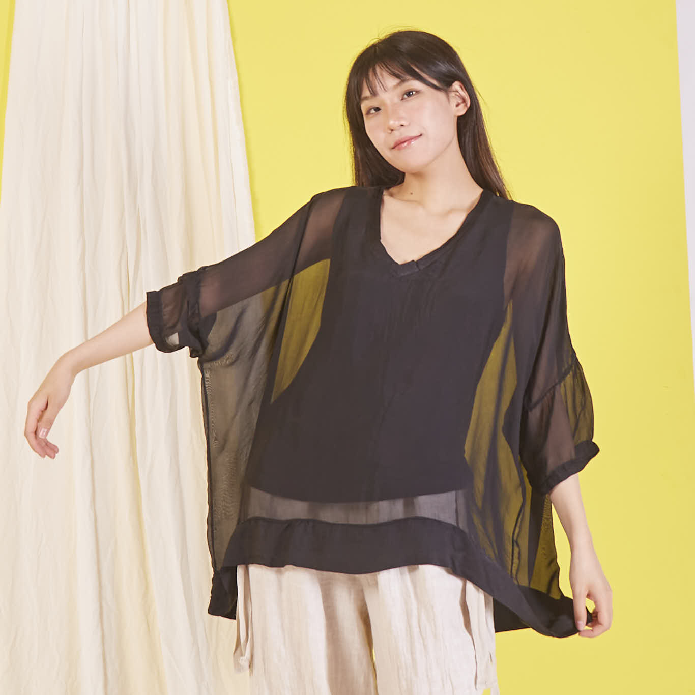 Camicetta in chiffon di seta larga all'ingrosso con scollo a V