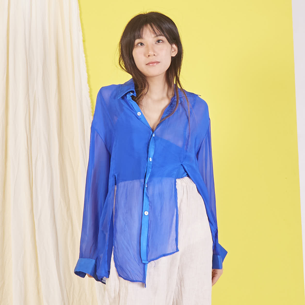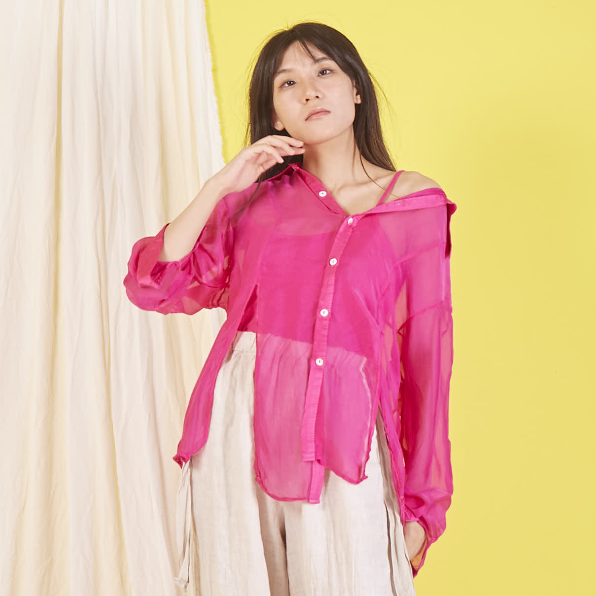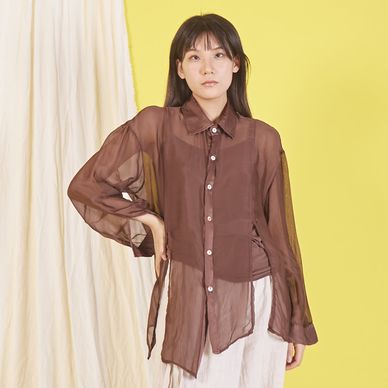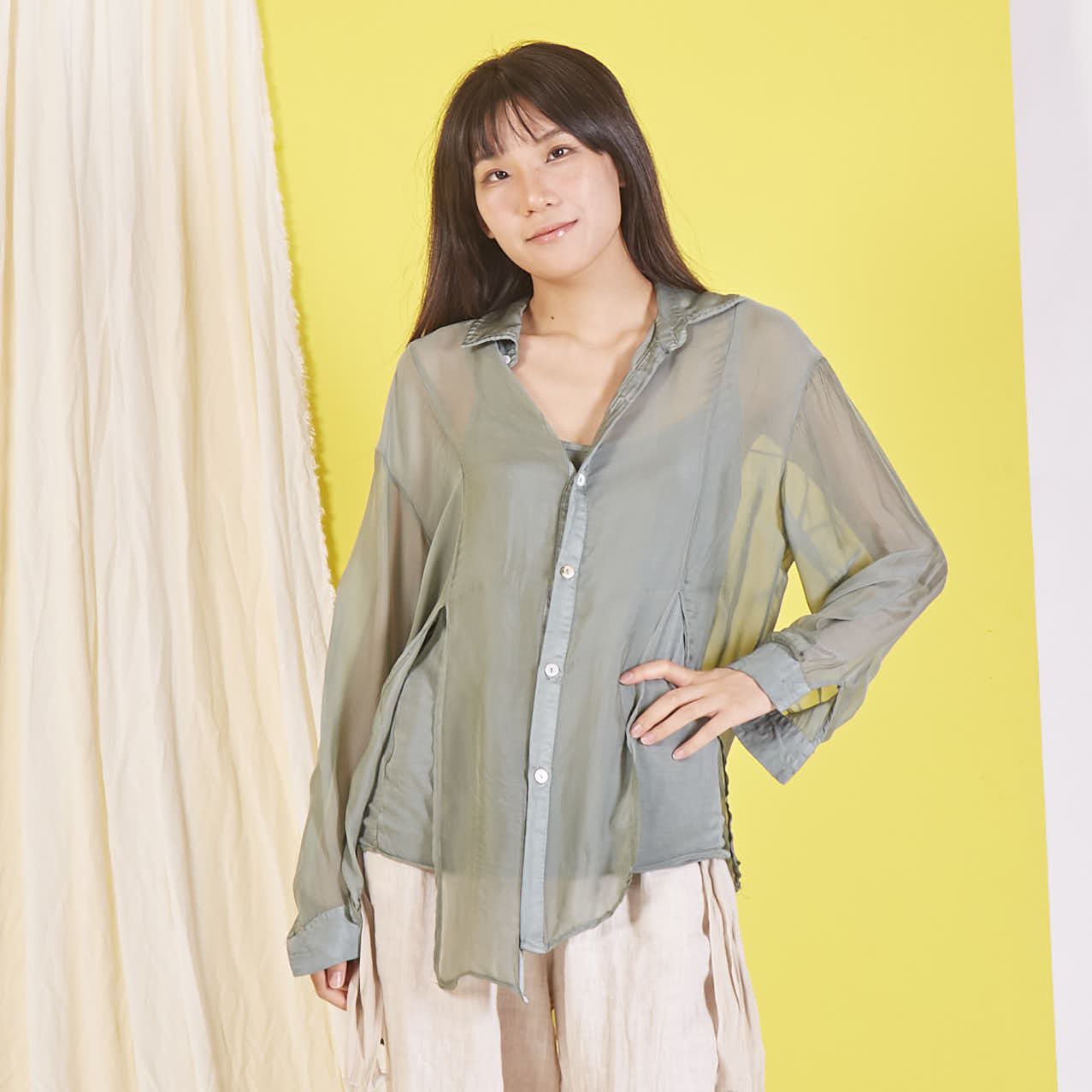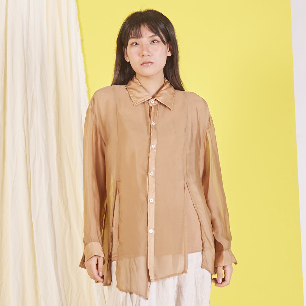 Camicia in chiffon di seta all'ingrosso con maniche lunghe