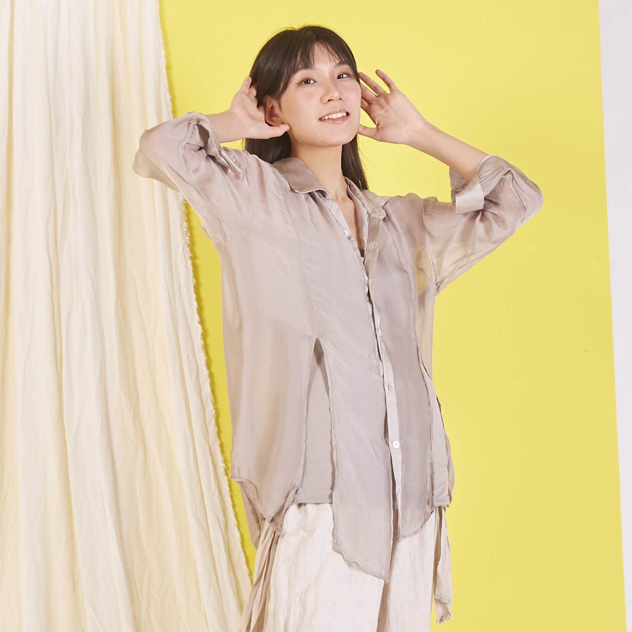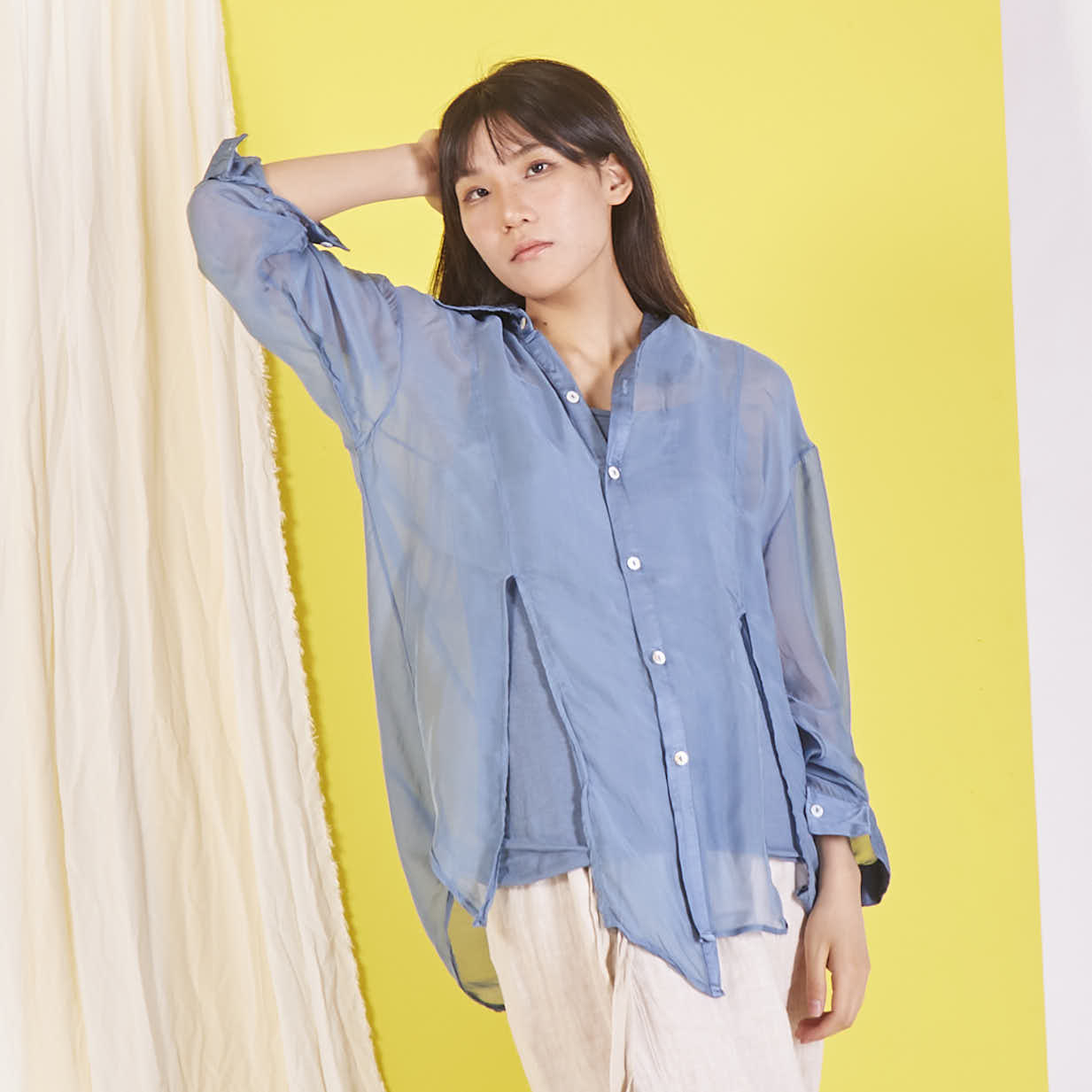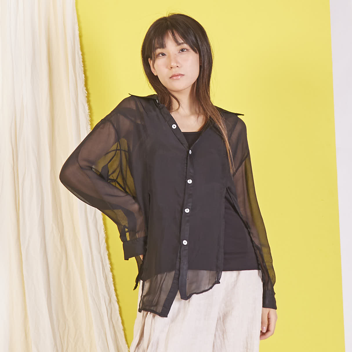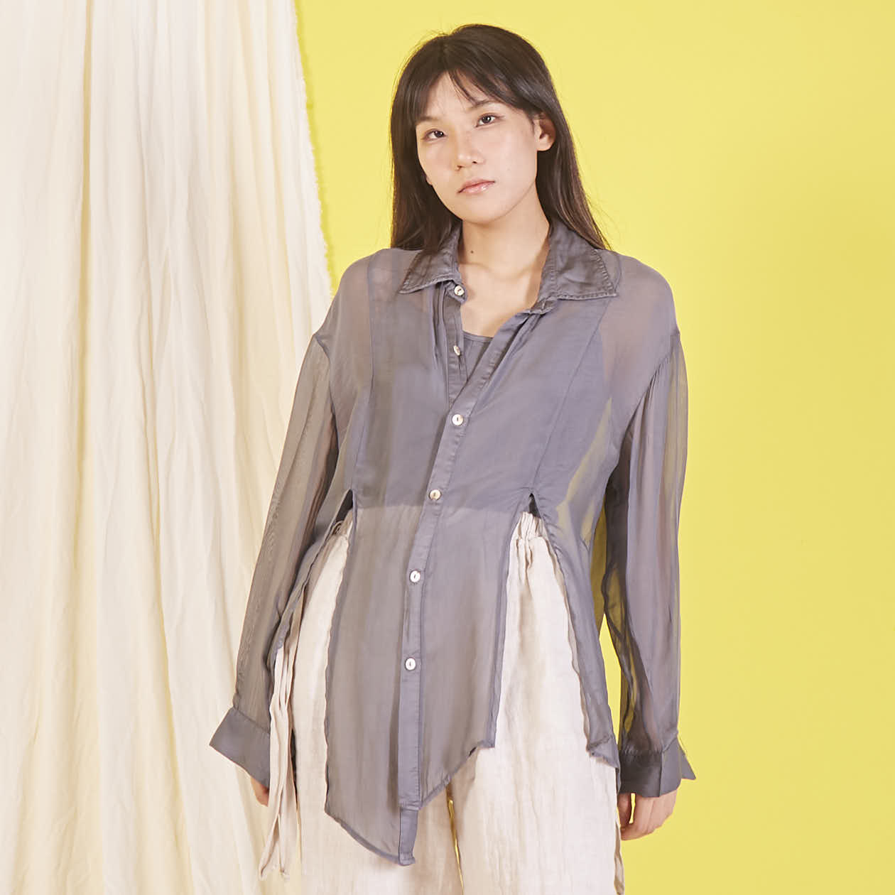Camicia in chiffon di seta all'ingrosso con maniche lunghe