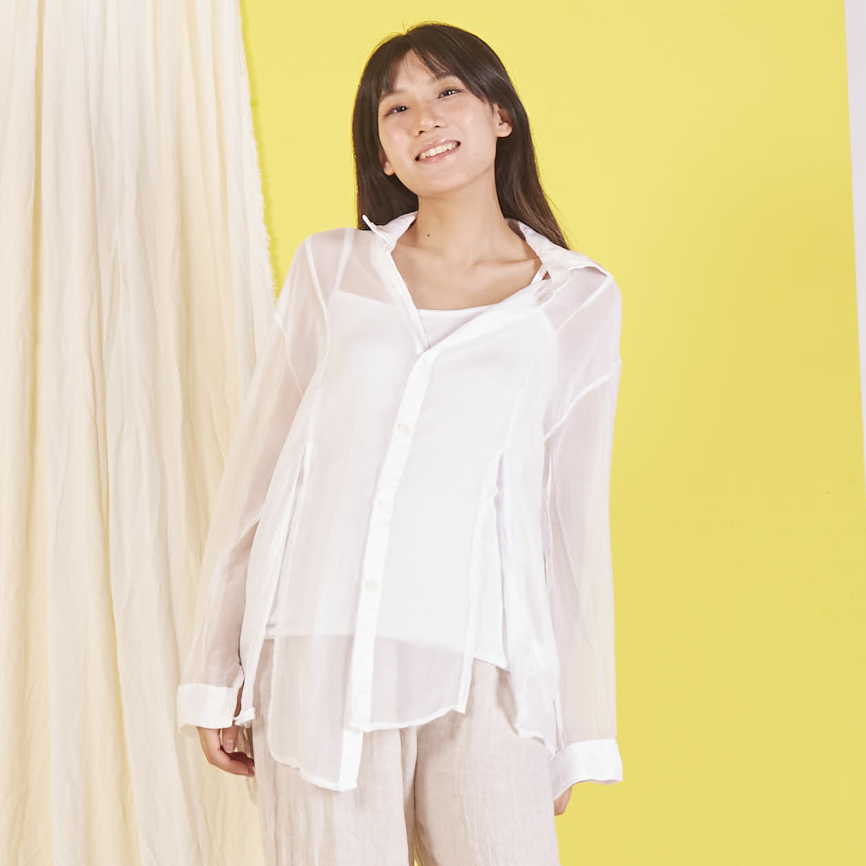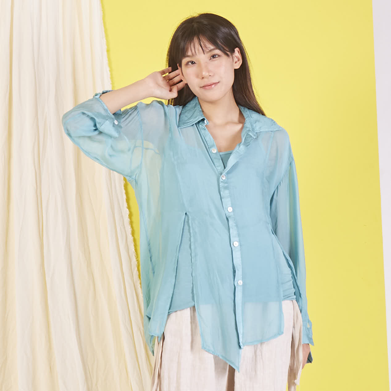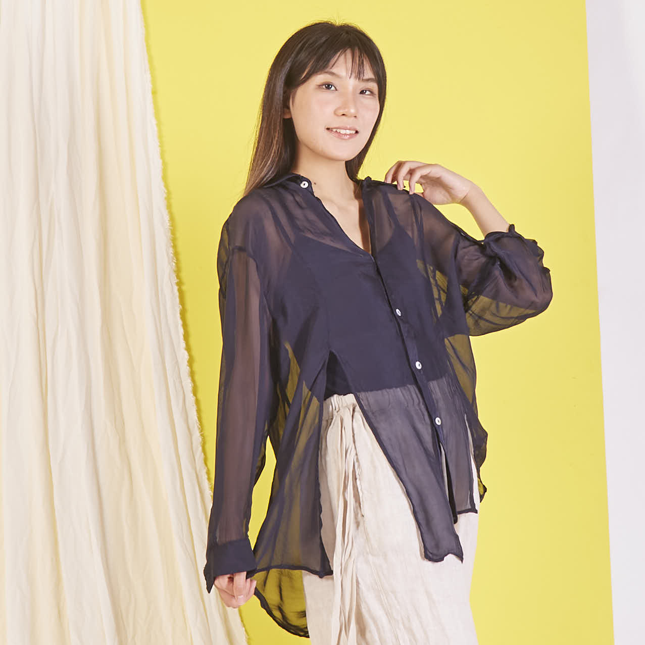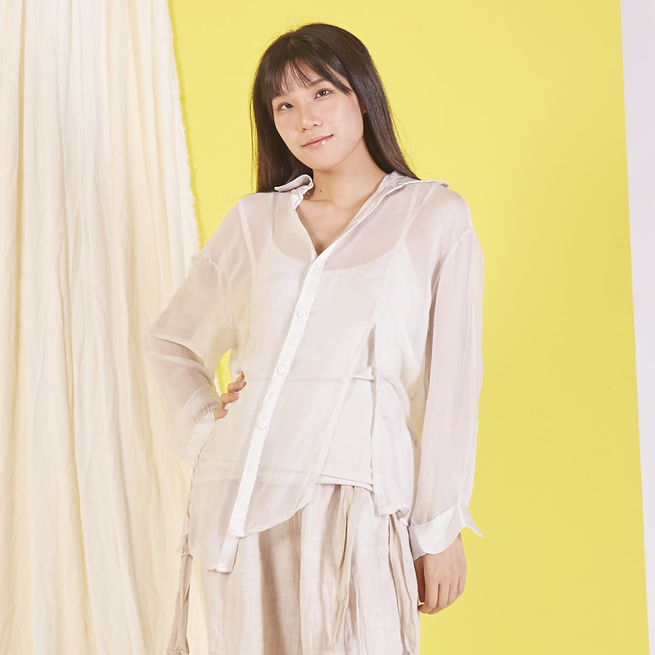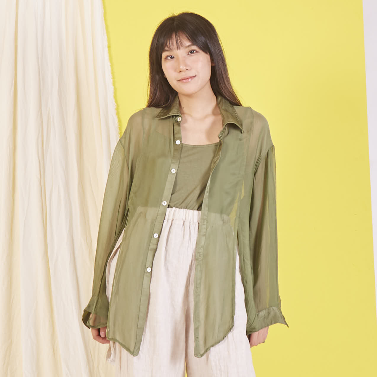Camicia in chiffon di seta all'ingrosso con maniche lunghe
