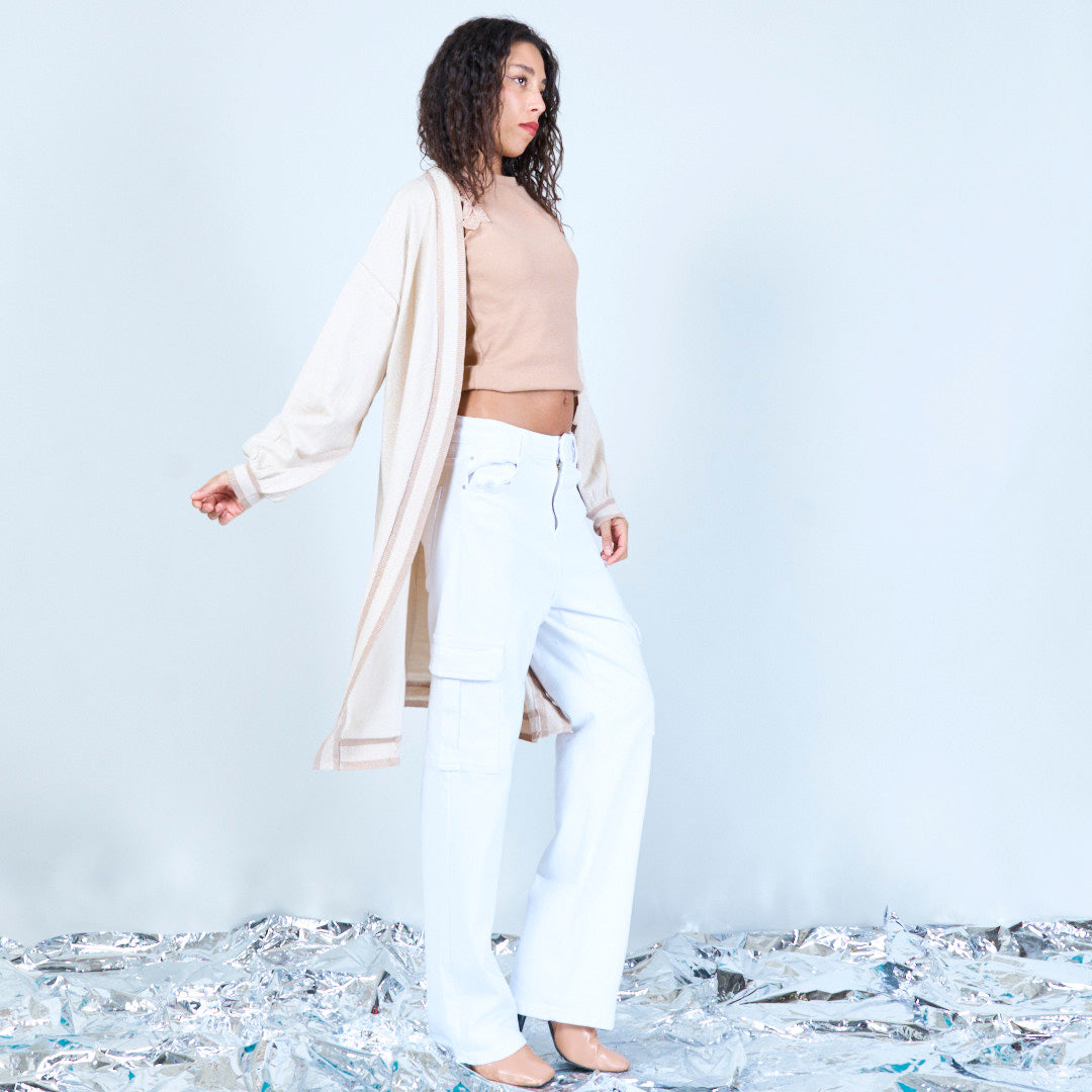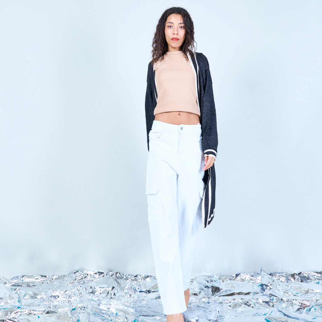Cardigan glitter a longline con rifinitura a contrasto all'ingrosso