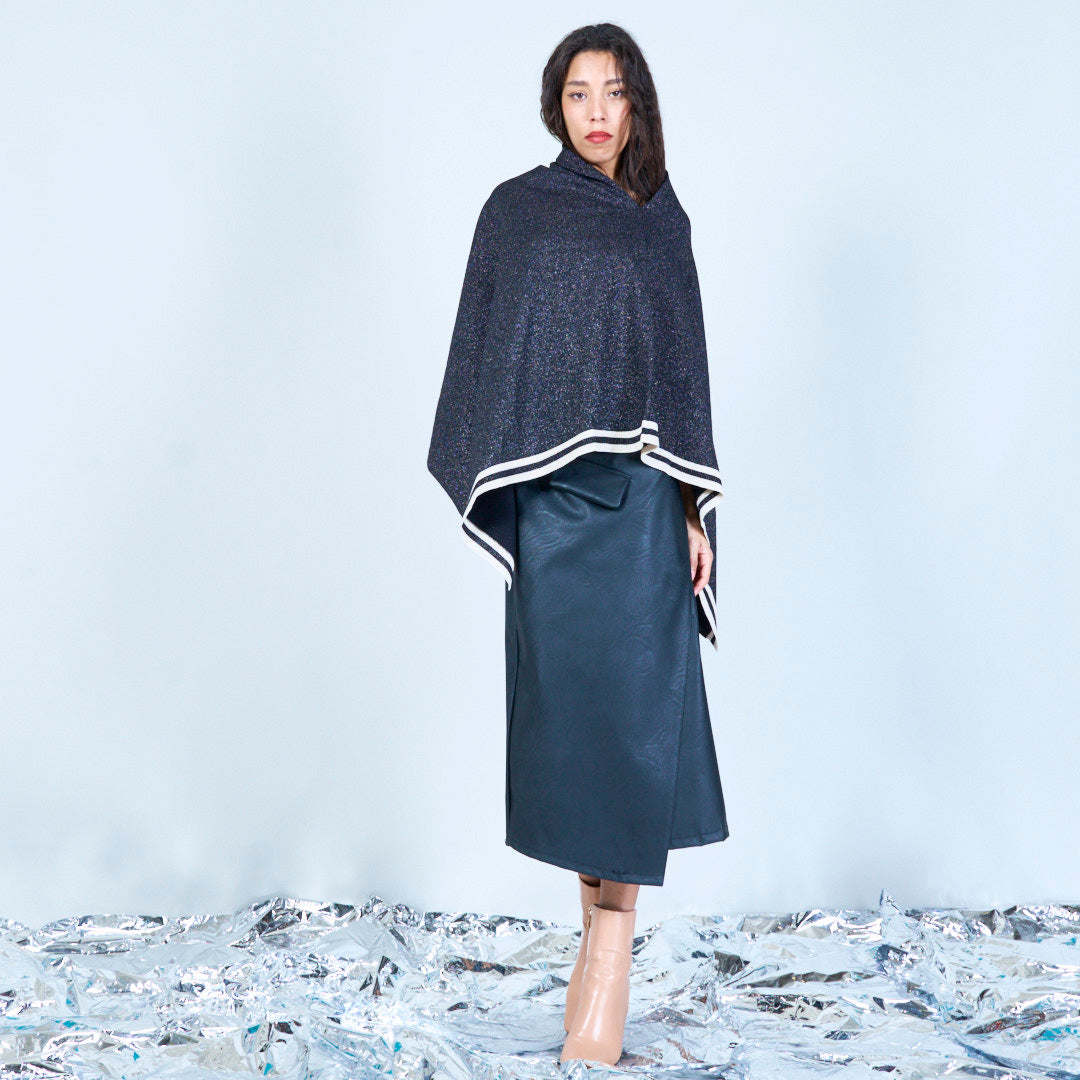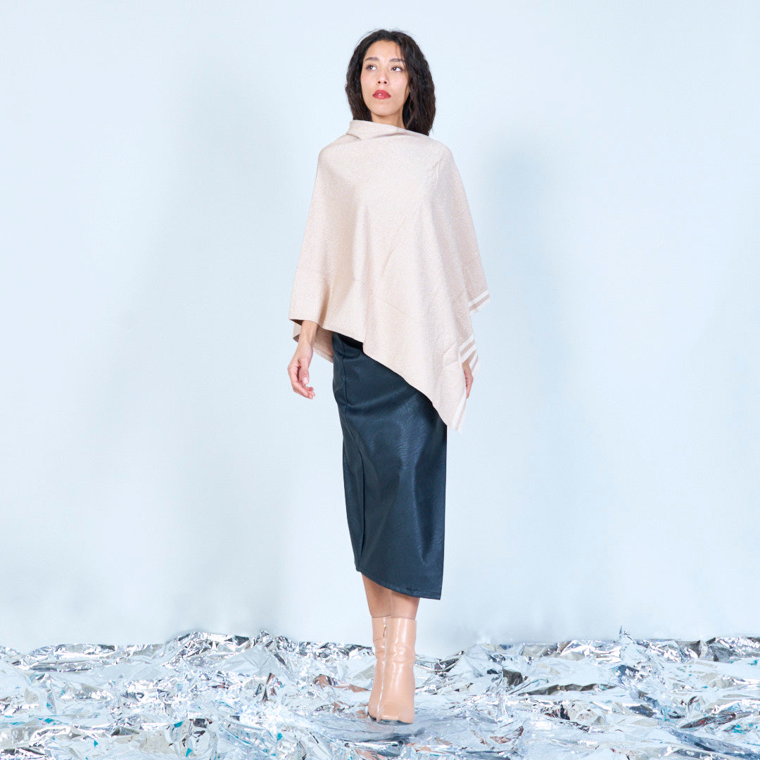 Shimmer Knit Poncho con orlo asimmetrico all'ingrosso