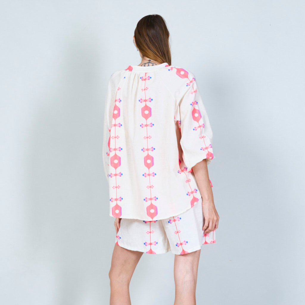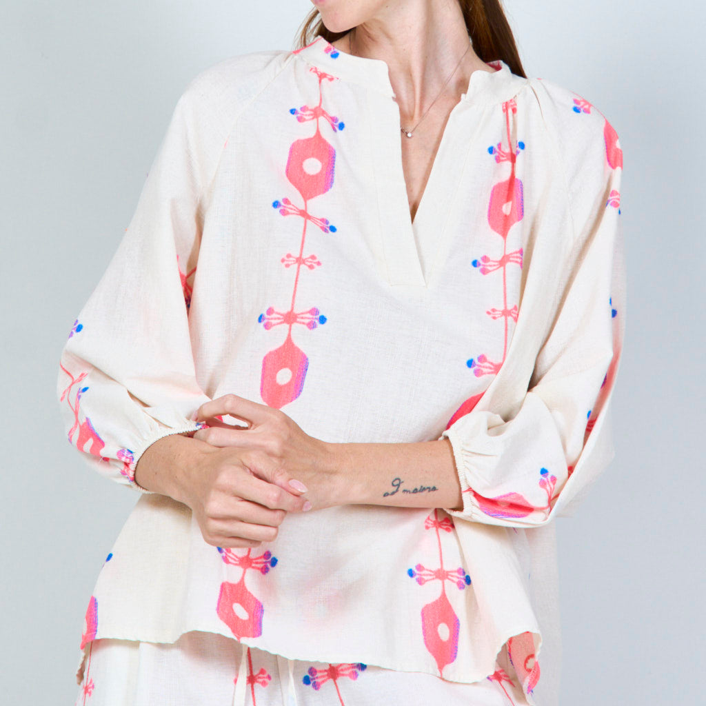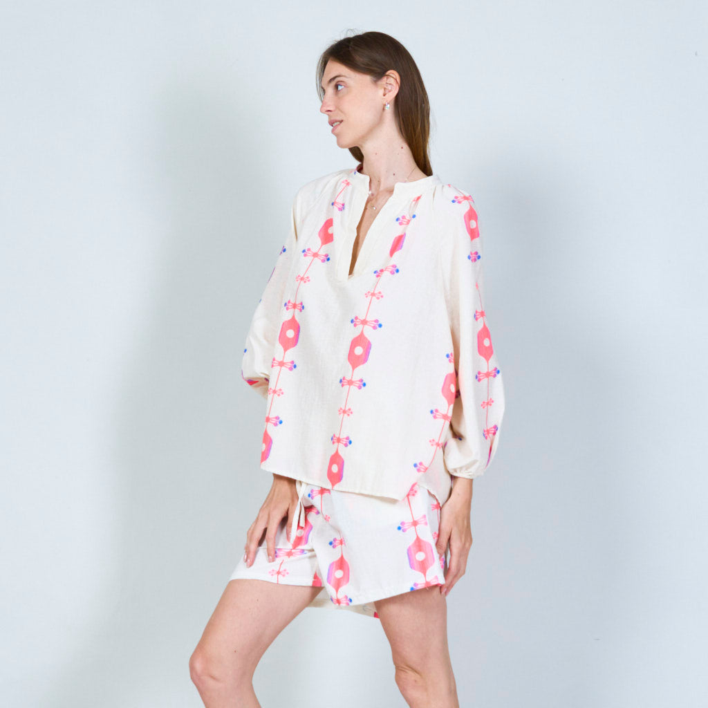 Blusa bohémien a discorso con maniche 3/4 all'ingrosso