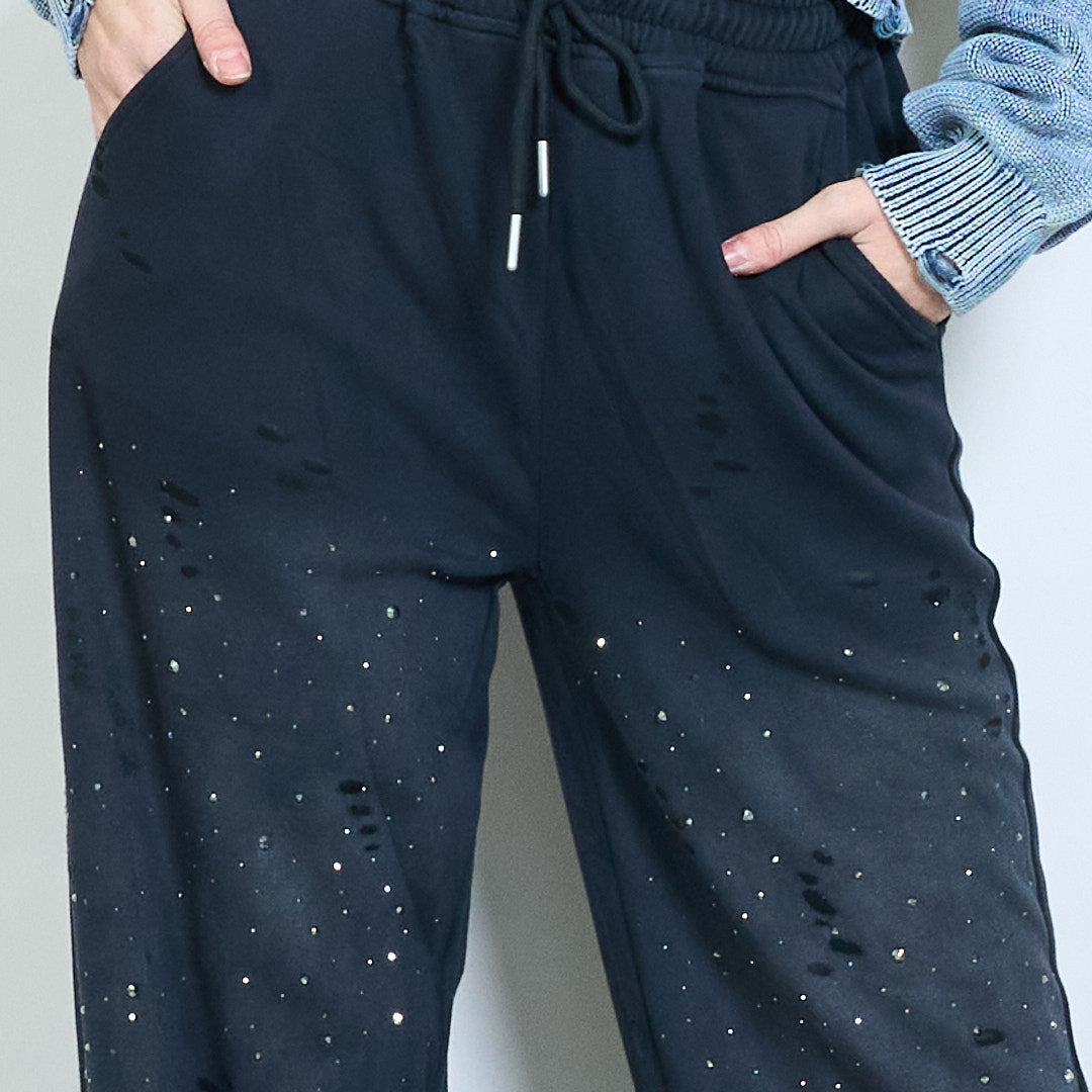 Vendita all'ingrosso di pantaloni lounge a gamba larga punteggiati di strass