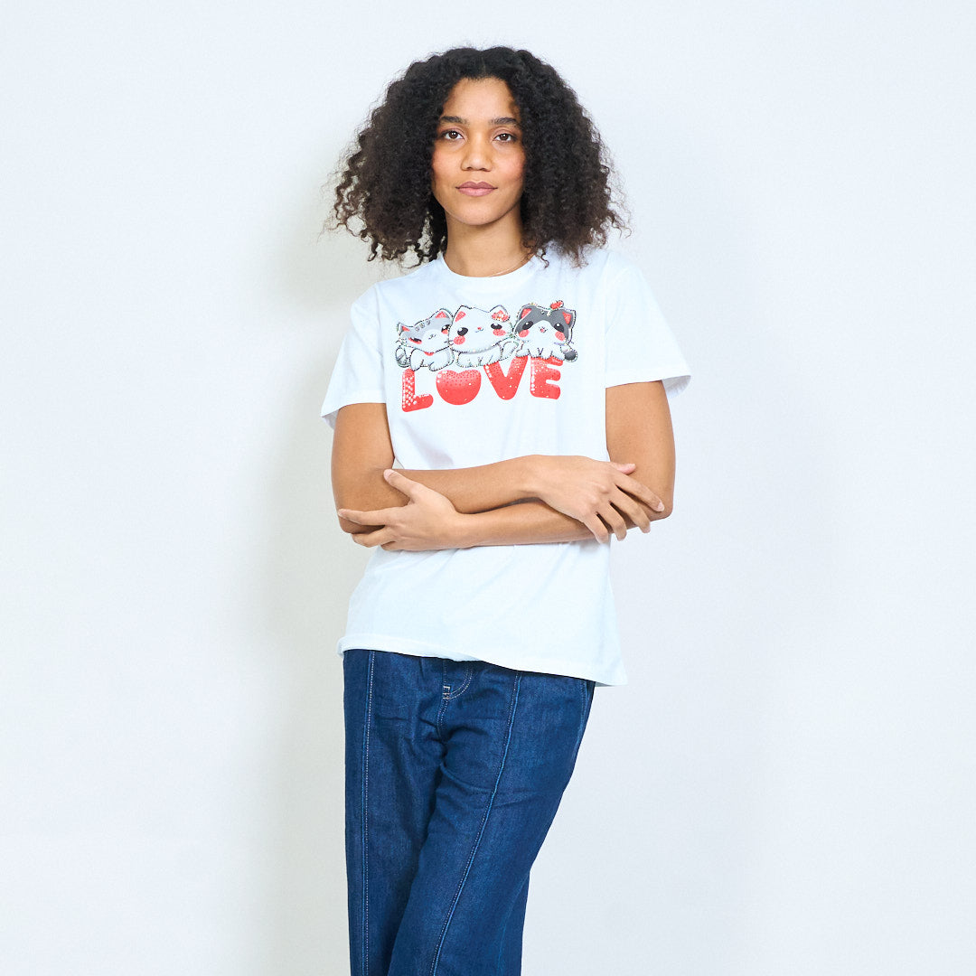 Miela kačių trijulė "Love" grafiniais margintais medvilniniais marškinėliais didmeninė prekyba