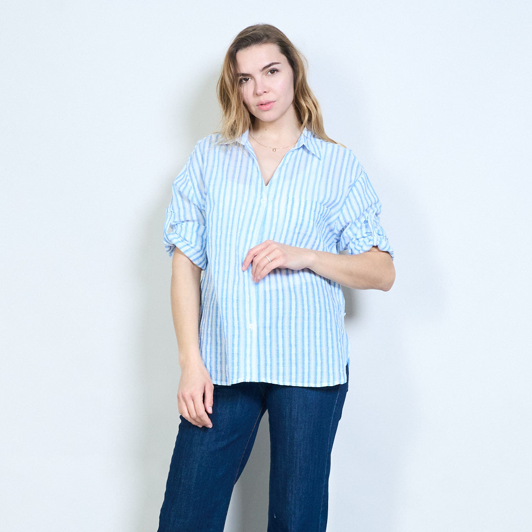 Dryžuota atvira apykakle suvyniota rankovė kasdieninė palaidinė didmeninė prekyba