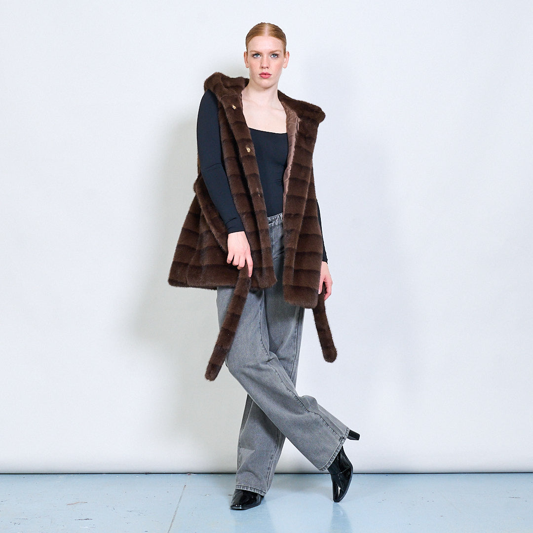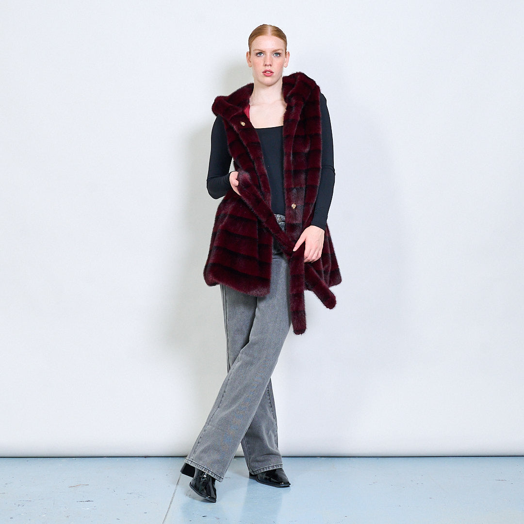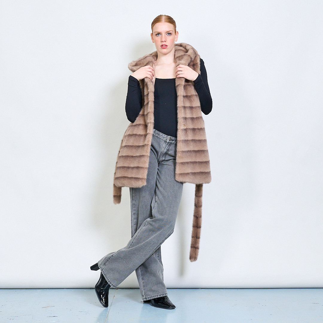 Dryžuota diržų dirbtinės kailio liemenė su didmenine prekyba