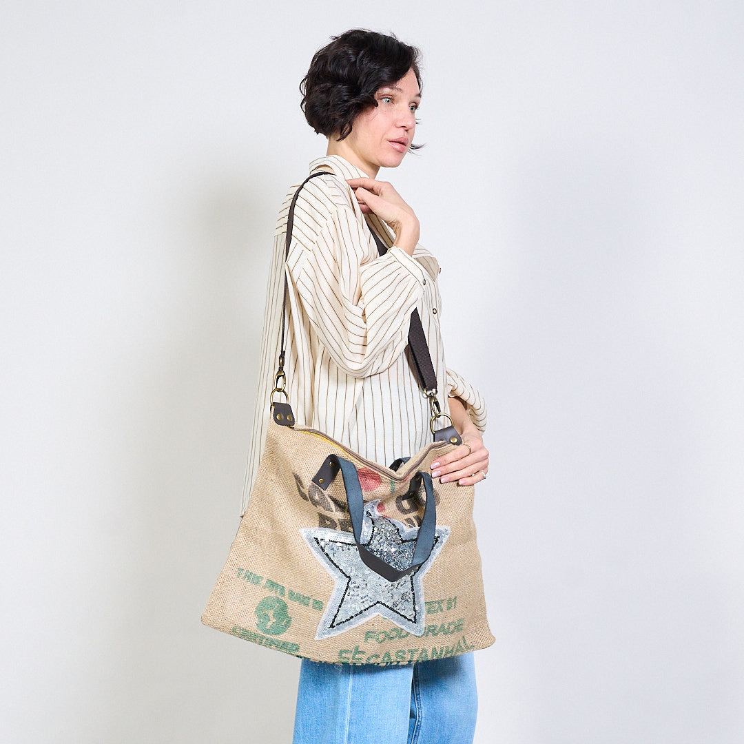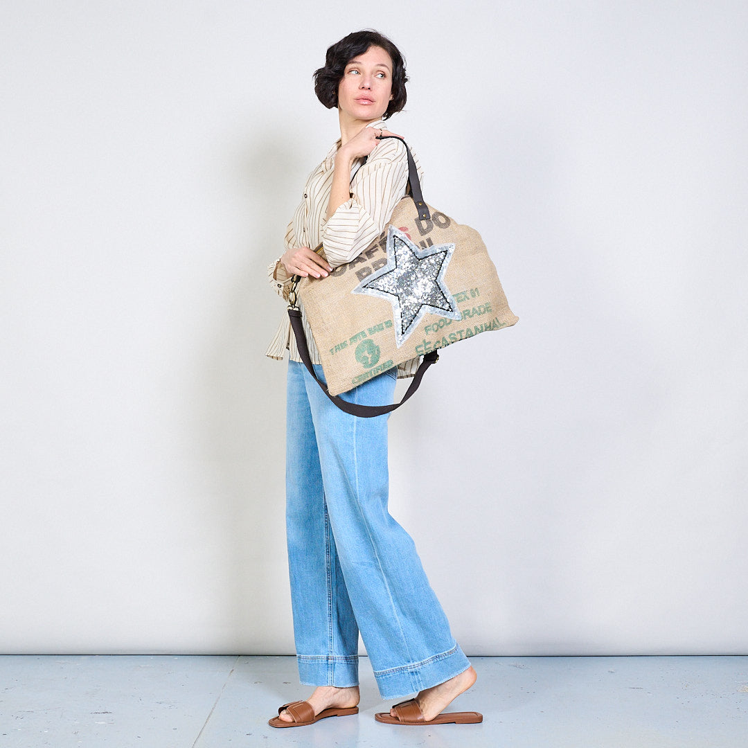 Vintažinis džiuto krepšys su „Sequin Star“ didmenine prekyba