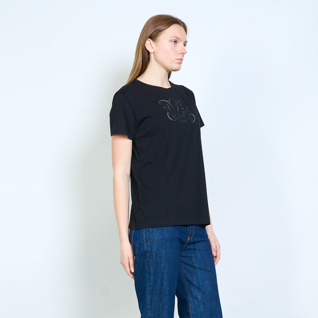 Dekoratyvinių raidžių grafikos siuvinėti marškinėliai trumpomis rankovėmis didmeninė prekyba