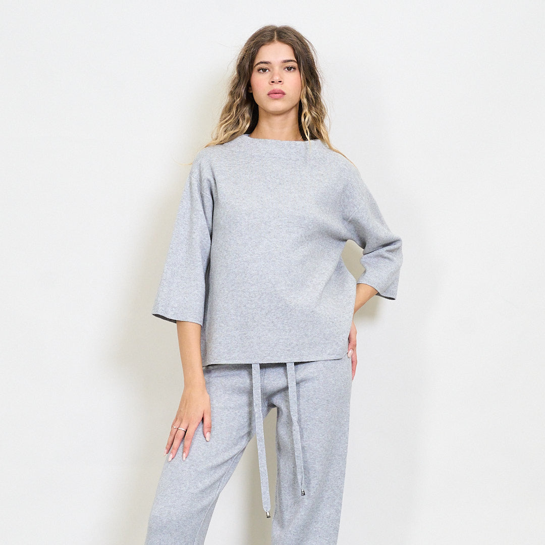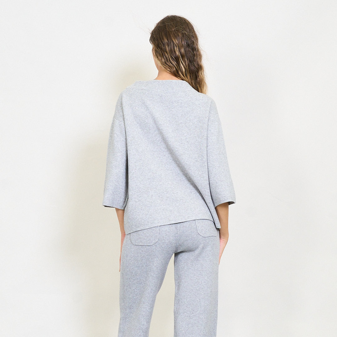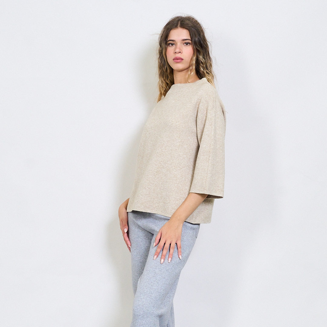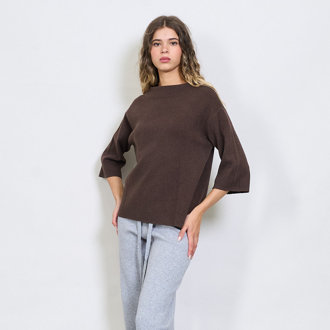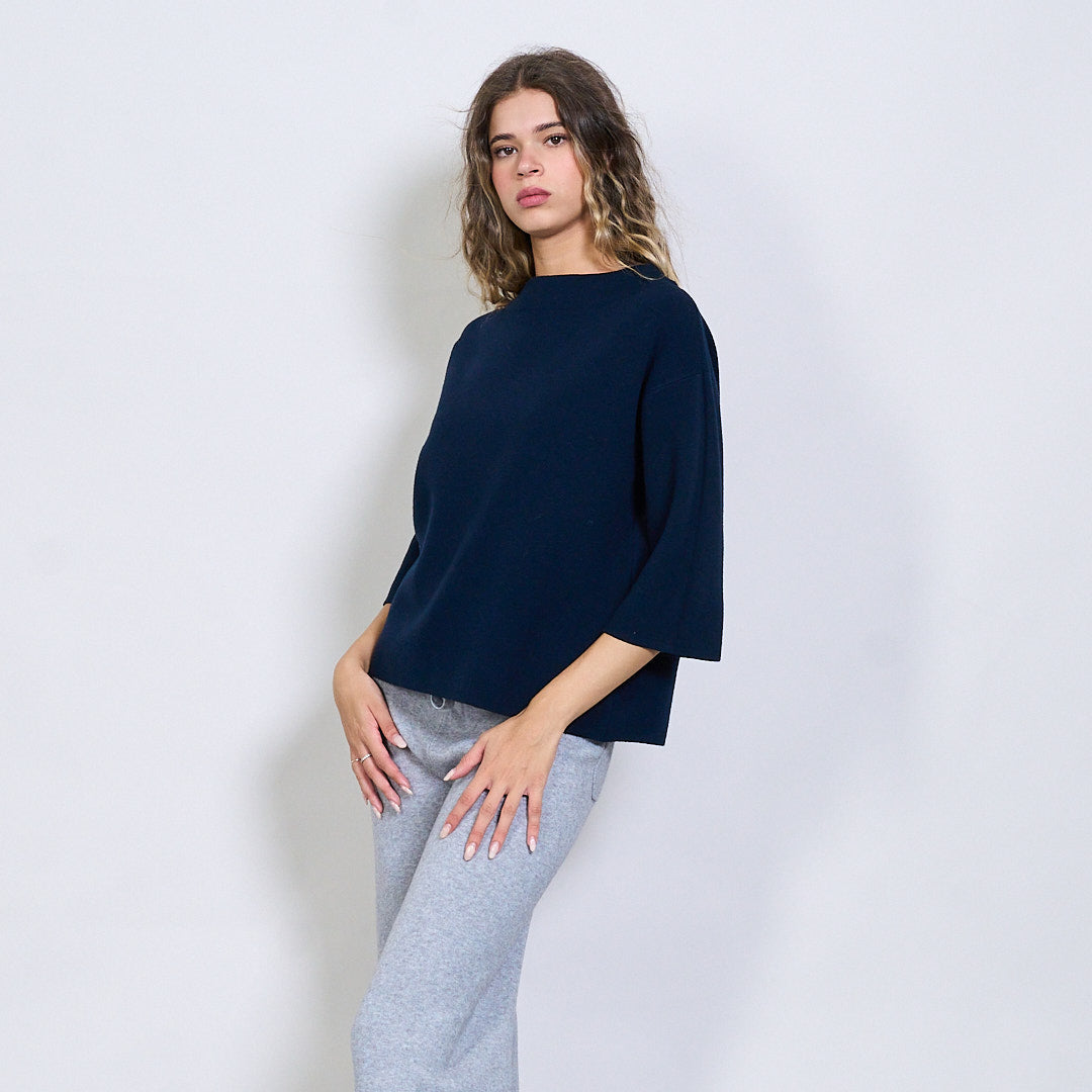 Boxy megztas viršus su valties iškirpte ir trumpomis rankovėmis didmeninė prekyba