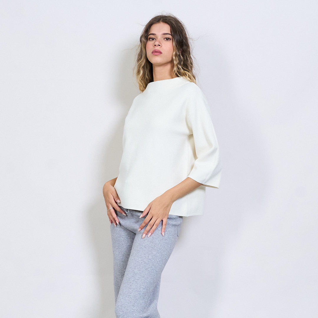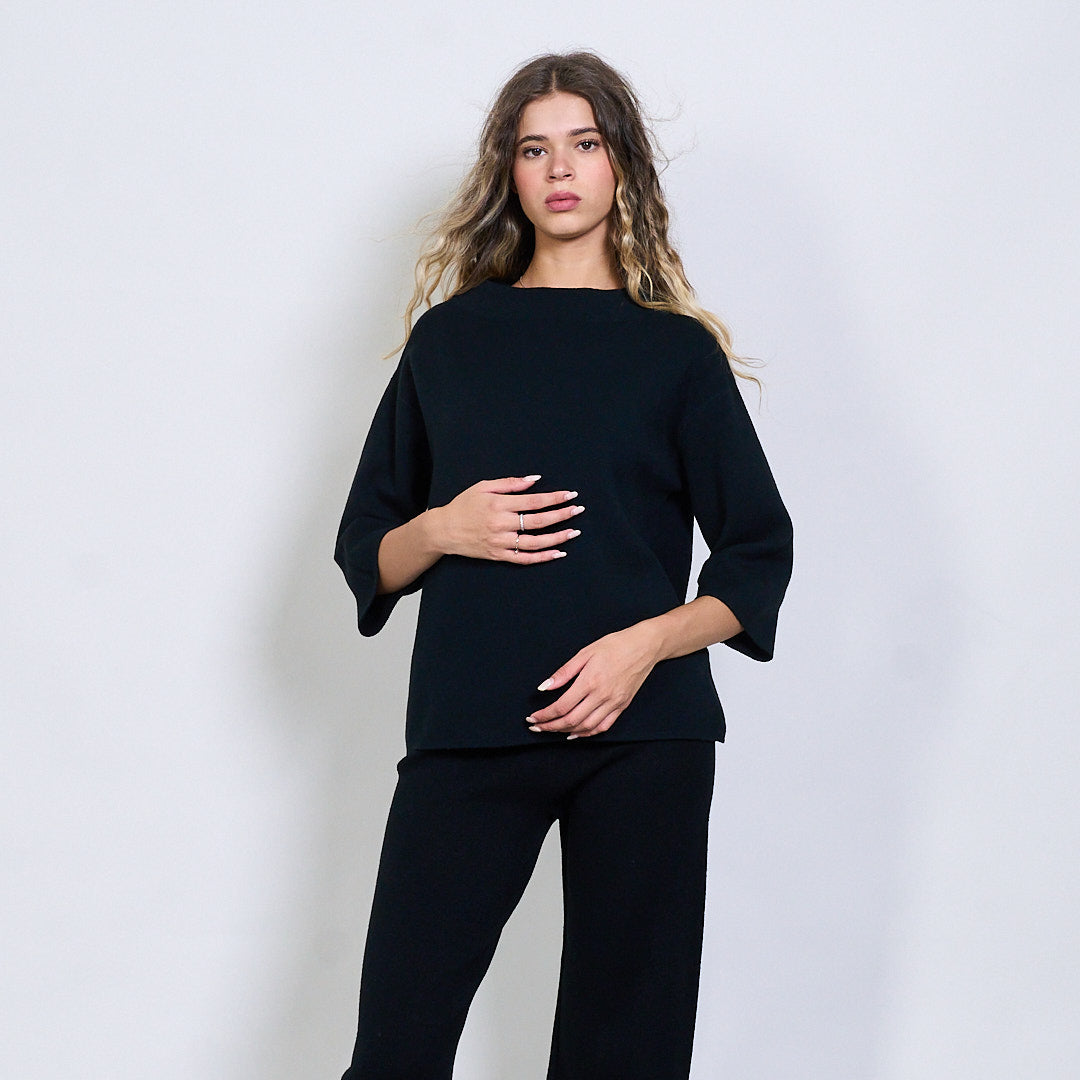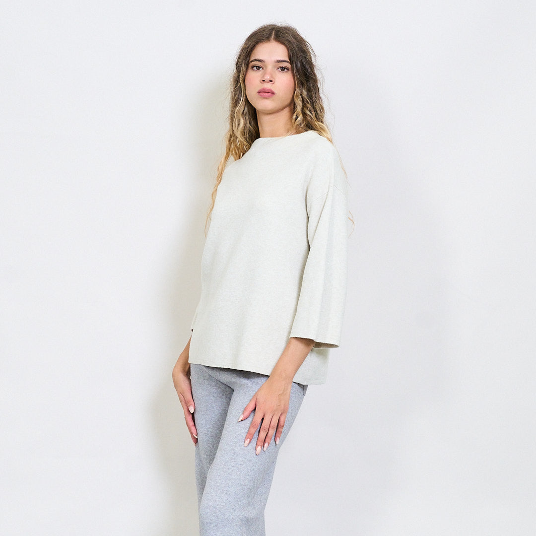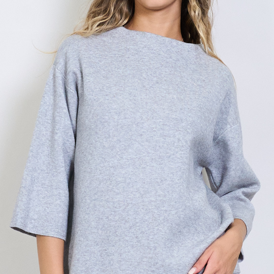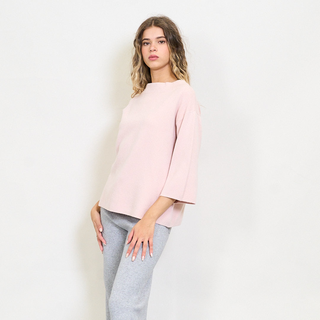 Boxy megztas viršus su valties iškirpte ir trumpomis rankovėmis didmeninė prekyba