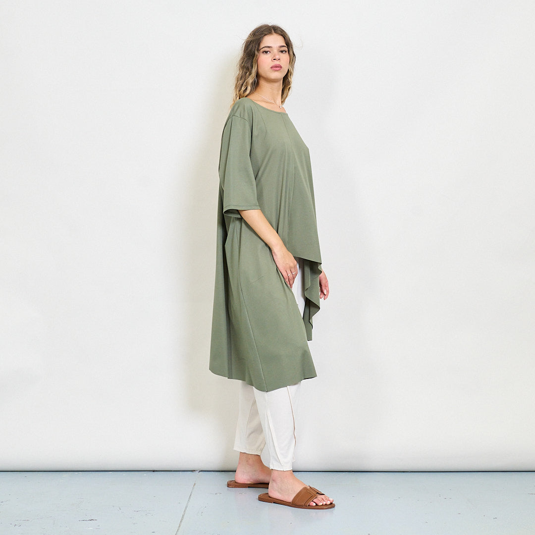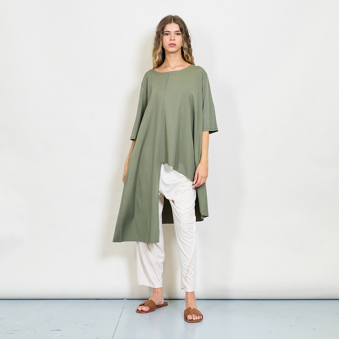 Ilga asimetrinė palaidinė su sluoksniuotu hem didmenine prekyba