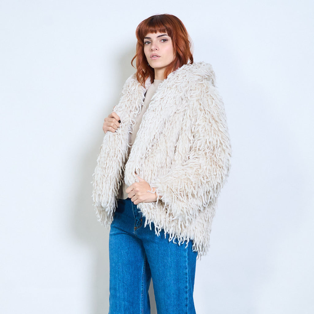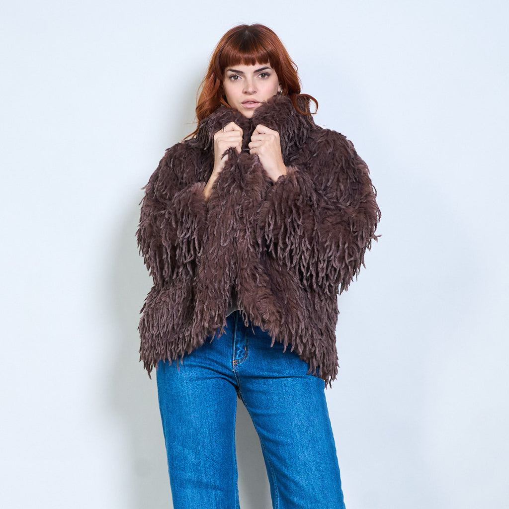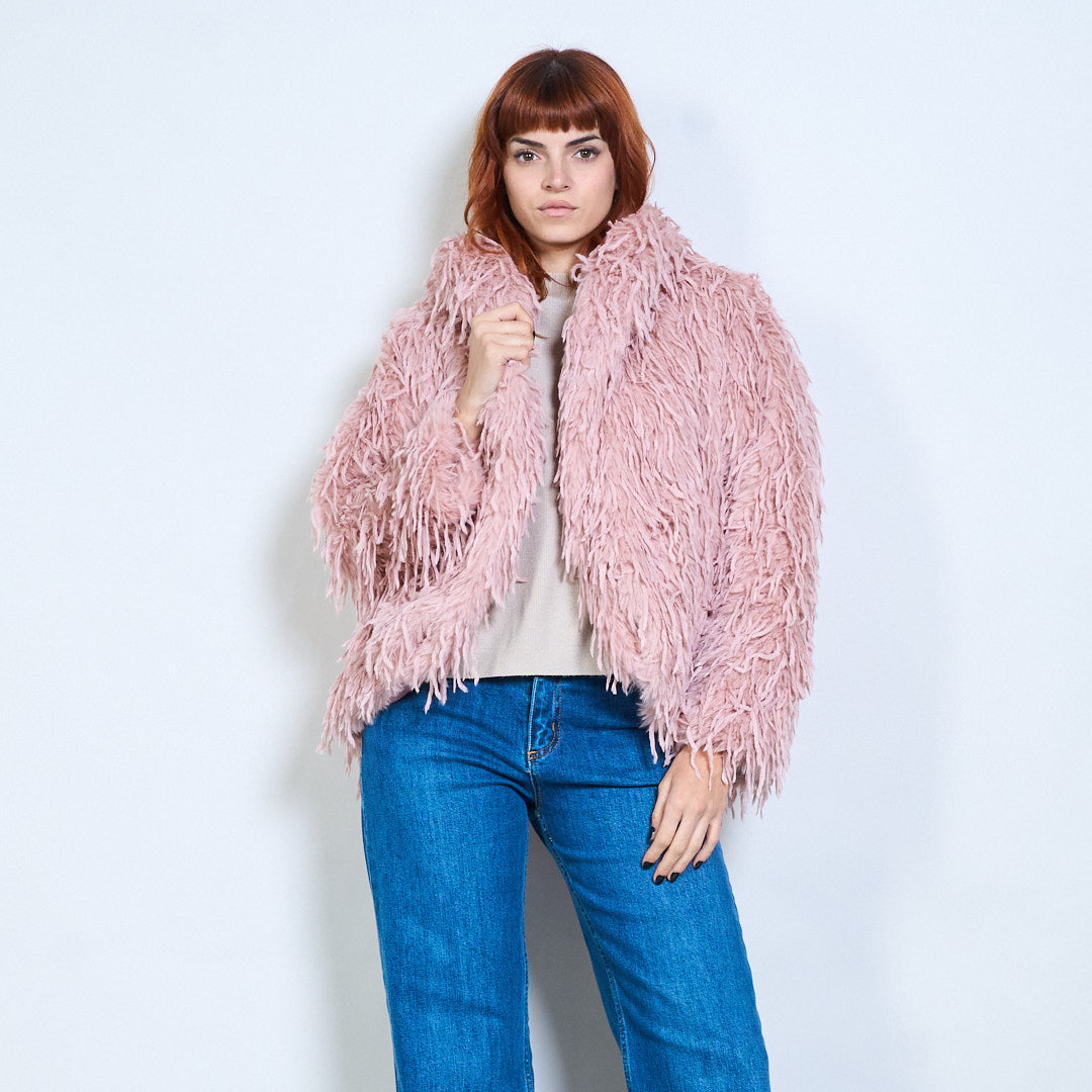 - „Statement“ dirbtinio kailio paltas su ilgais gauruotais kutais, kad būtų drąsus