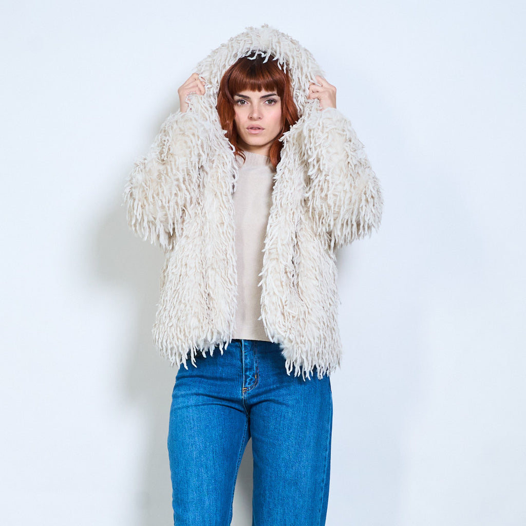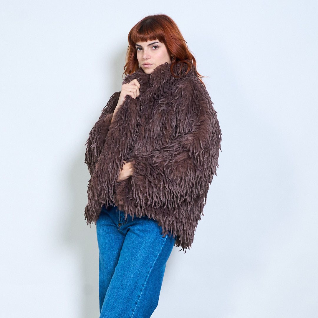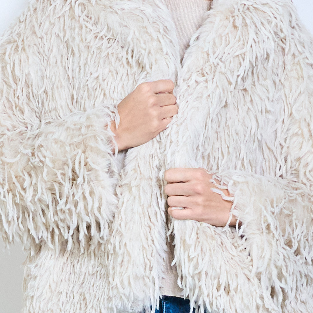 - „Statement“ dirbtinio kailio paltas su ilgais gauruotais kutais, kad būtų drąsus