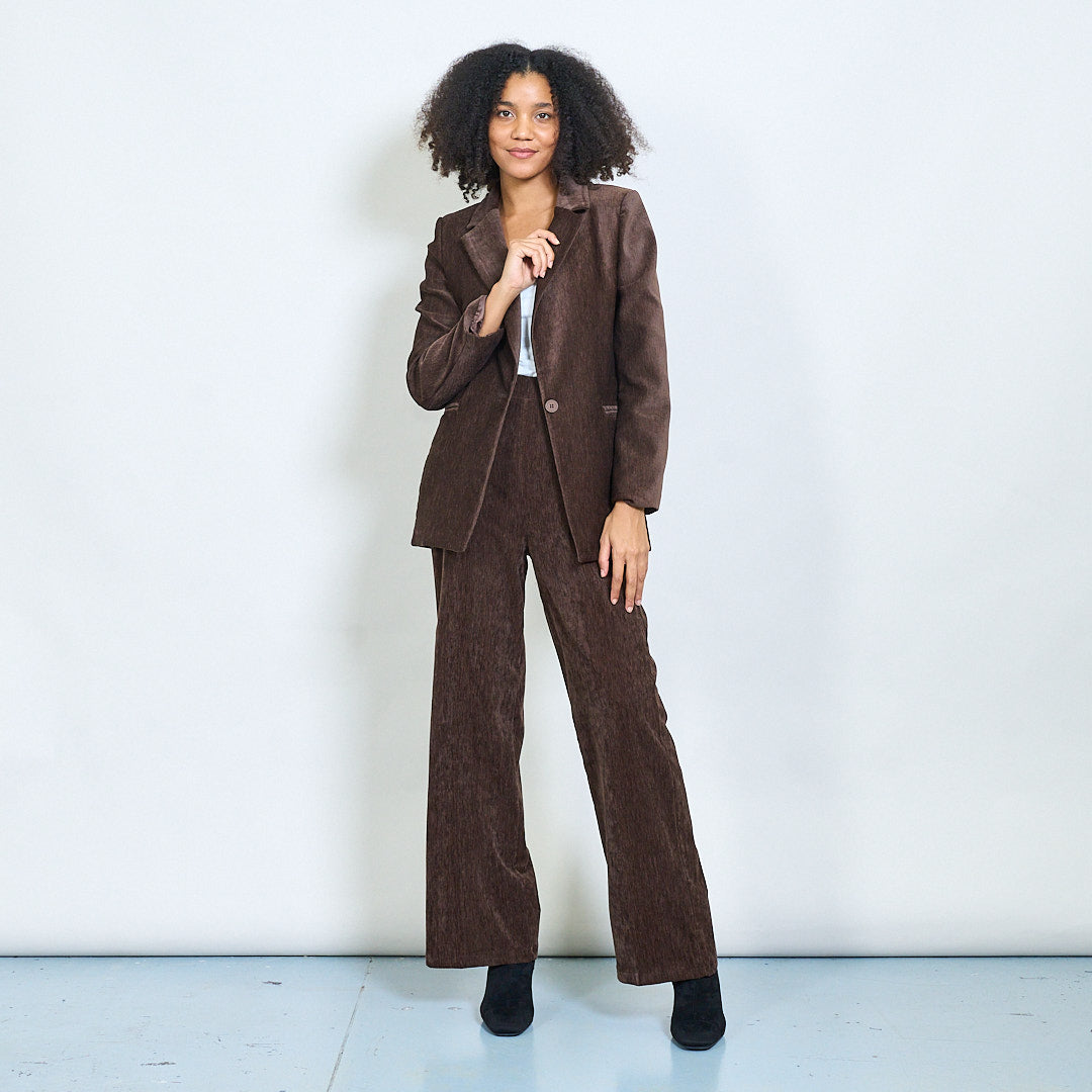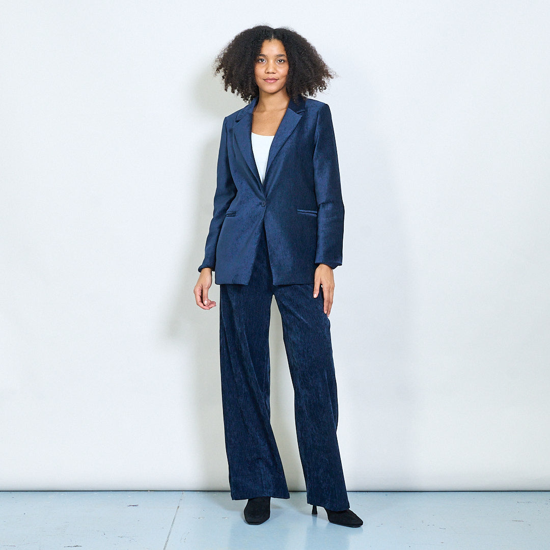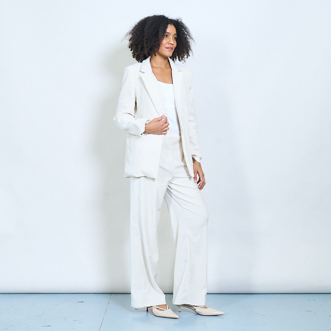 Tekstūruotos satino efekto plačiosios kojos kelnės didmeninė prekyba