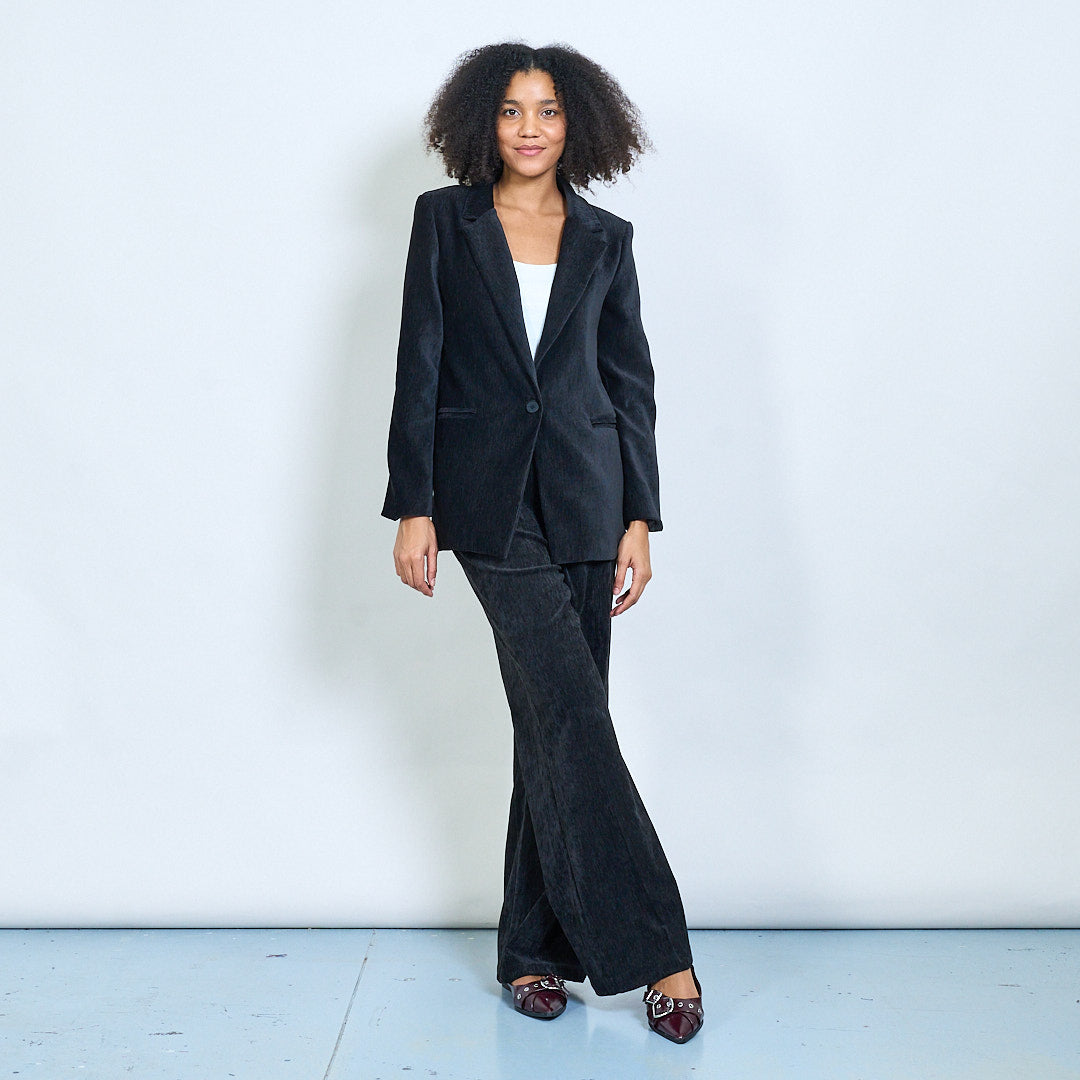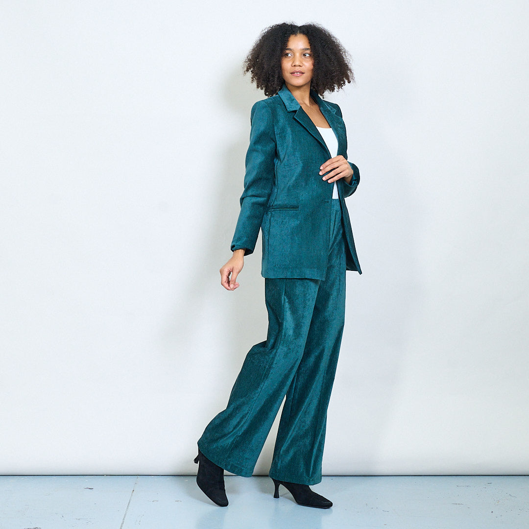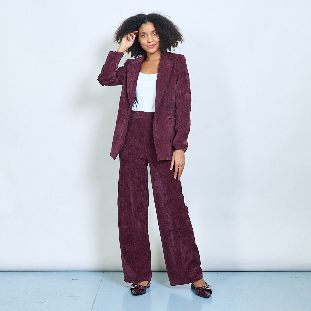 Tekstūruotos satino efekto plačiosios kojos kelnės didmeninė prekyba